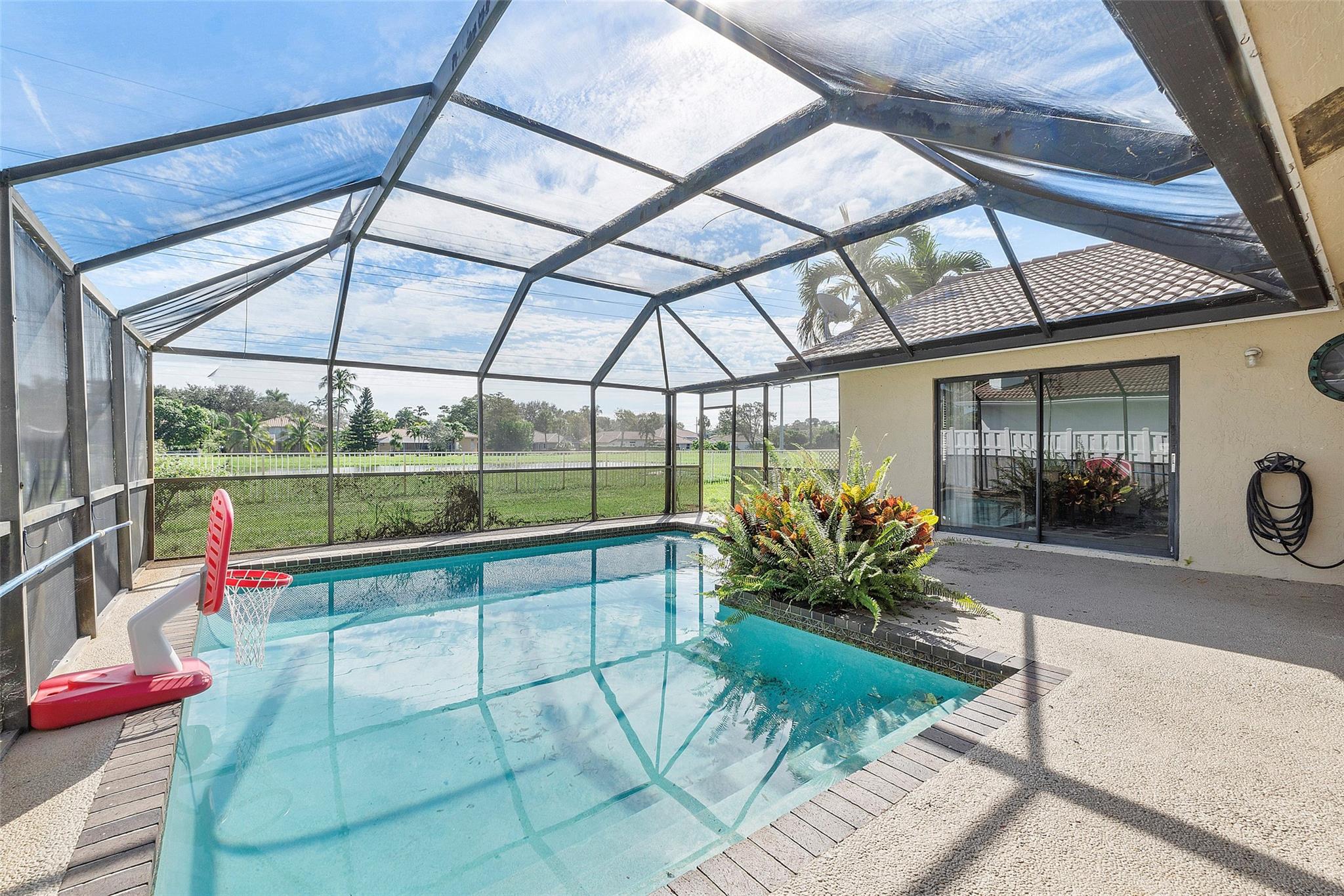 Perfect opportunity in The Crossings of Coral Springs. This home has all the key features for entertaining and family fun! This private oversized fenced lot has no rear neighbors, an extended side yard, pool and screened in patio both in the back and front of the home. This 3/2 split floor plan boosts a modern kitchen, no carpet, and newer AC. Prime location to Coral Springs High School, shops and dining. Will not last long!