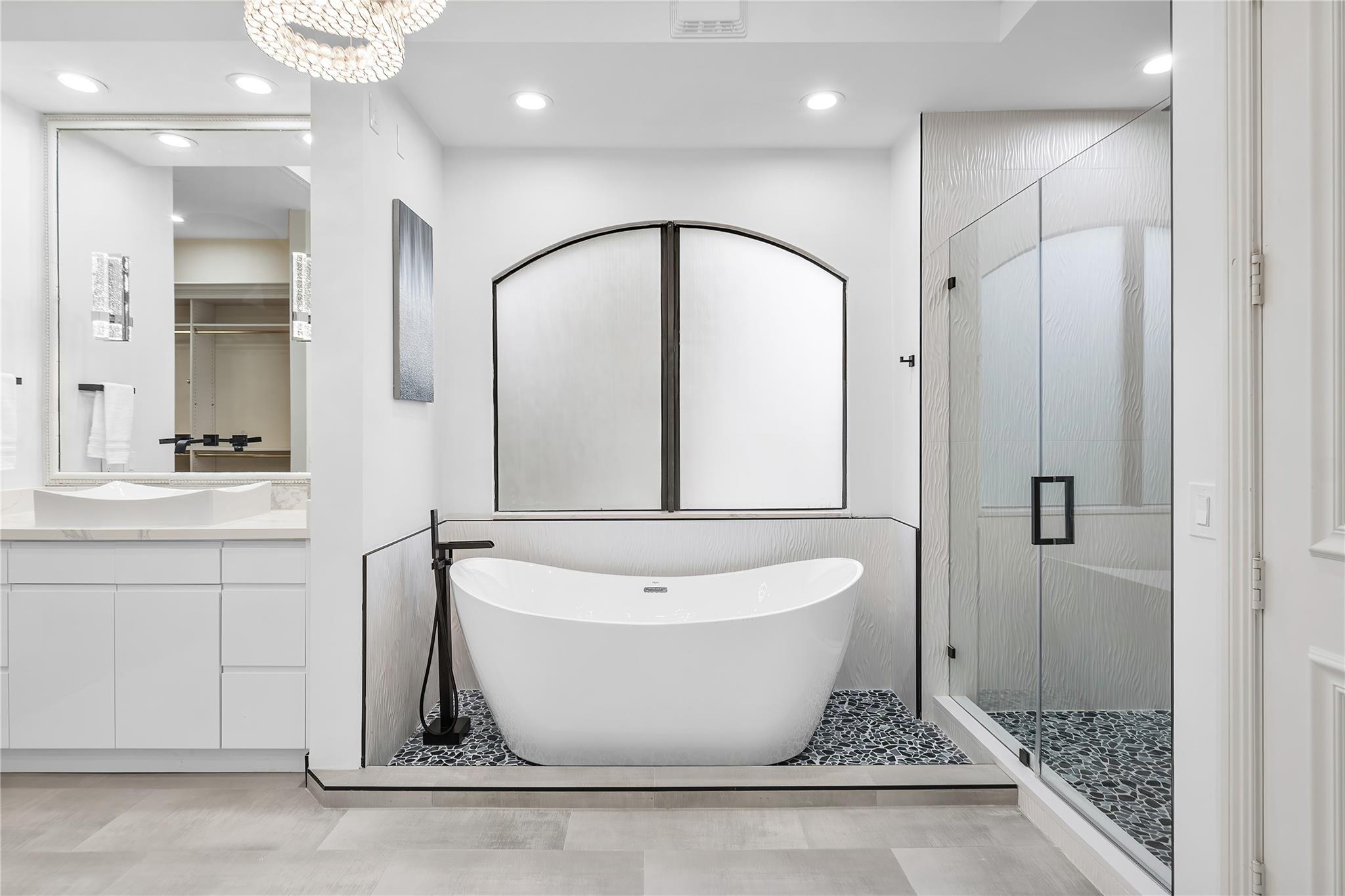 Discover the epitome of lakefront luxury at 17934 Monte Vista Drive, nestled on a large premium 16,117 SqFt cul-de-sac lot in The Oaks in West Boca. This meticulously remodeled 6,401 SqFt estate offers a blend of sophistication and comfort, with 6 bedrooms, 2 offices, and 8 beautifully upgraded bathrooms. The newly redesigned first floor sets the tone for entertaining, boasting a wet bar, wine cooler, and a chef's kitchen outfitted with a Wolf gas range, Sub Zero refrigerator, backlit onyx countertop island and custom cabinetry. The primary suite is a serene retreat, featuring two spacious walk-in closets and luxurious his-and-hers bathrooms... (SEE ADDITIONAL REMARKS)