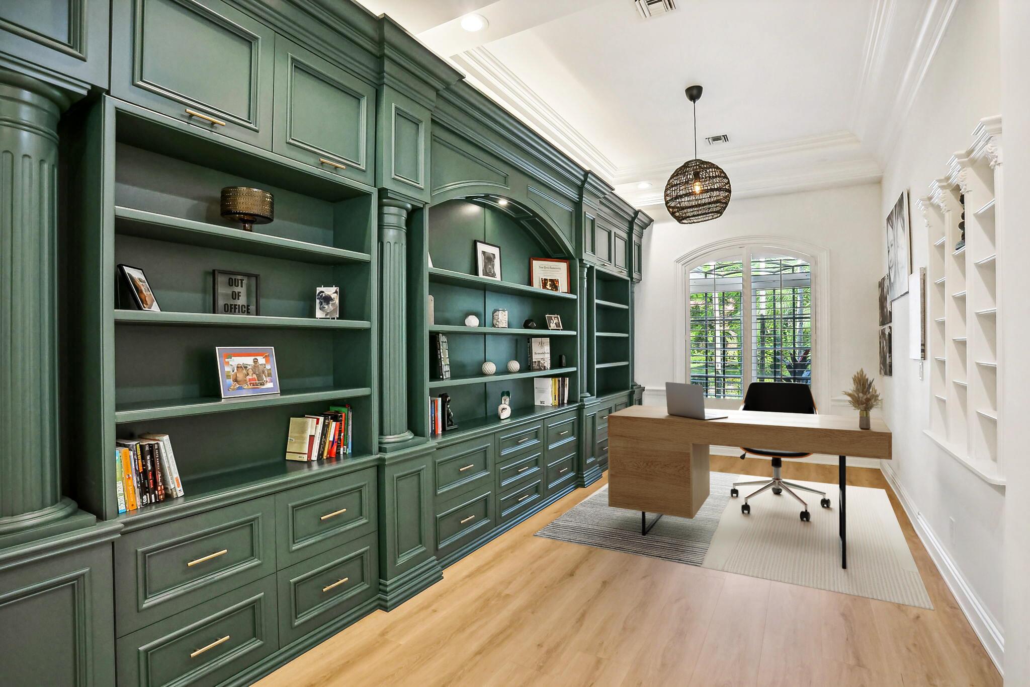 This stunning 5-bed / 5-bath home offers luxury living with no HOA and a split floor plan, with each bedroom featuring its own en-suite bath! Meticulously renovated to include new impact windows, hurricane-rated front door and impact 2 car garage with EV charging. Featuring a custom gourmet kitchen complete with a Miele 8-burner gas stove, Sub-Zero appliances, farm sink and island. High ceilings, crown molding and custom lighting fill the space with elegance and natural light. The backyard oasis boasts a large coral patio with sparkling pool and grill area + a private gate to access Pine Breeze Park! Located in the highly sought-after Palm Beach Farms neighborhood with A-rated schools, this home is minutes from the beach, Mizner Park, shops and restaurants!