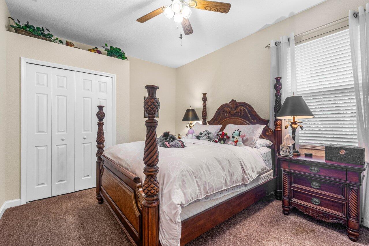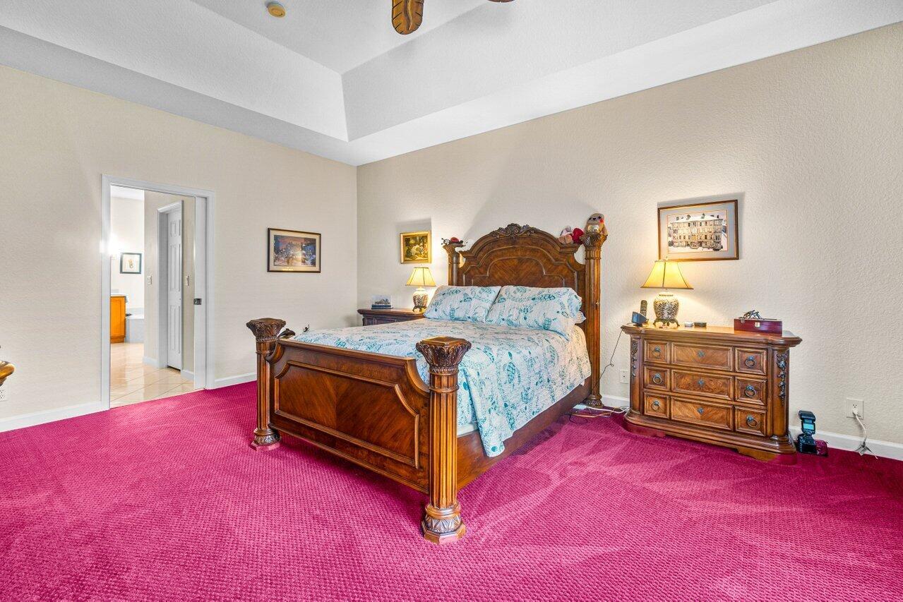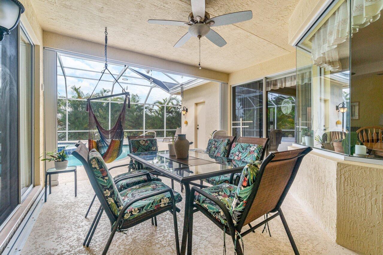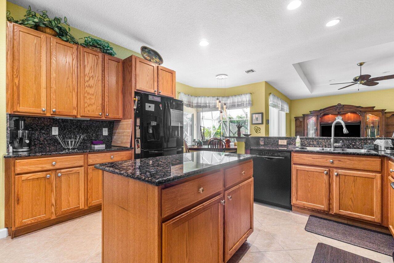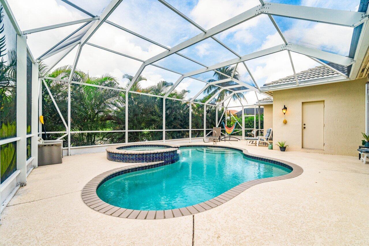 AMAZING! 4 bed, 3 bath POOL HOME on premium LAKE VIEW! The spacious TRIPLE SPLIT floorplan boasts volume tray ceilings w/ tons of natural light, REDONE guest bath w/ frames shower and new vanity. The entryway living & formal dining areas lead to the kitchen featuring granite counters, oversized pantry, prep island, & breakfast area. The kitchen opens to a large family room w/ sliders leading out to your private backyard paradise. The covered patio is perfect for BBQs & outdoor entertaining. Relax by the pool as you enjoy the privacy of the palm tree hedged yard w/ pristine lake views beyond. The private master retreat boasts patio sliders. The 4th bedroom is adjacent to a Cabana Bath for easy access from the pool. This is Florida living at its finest!