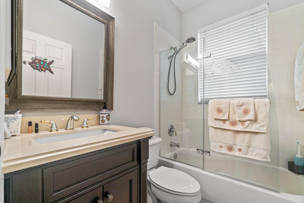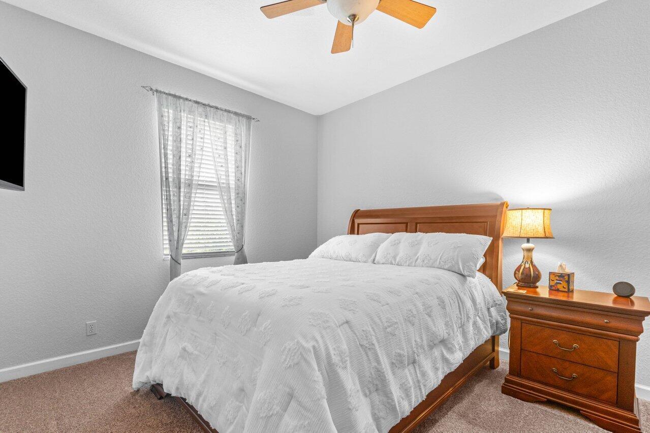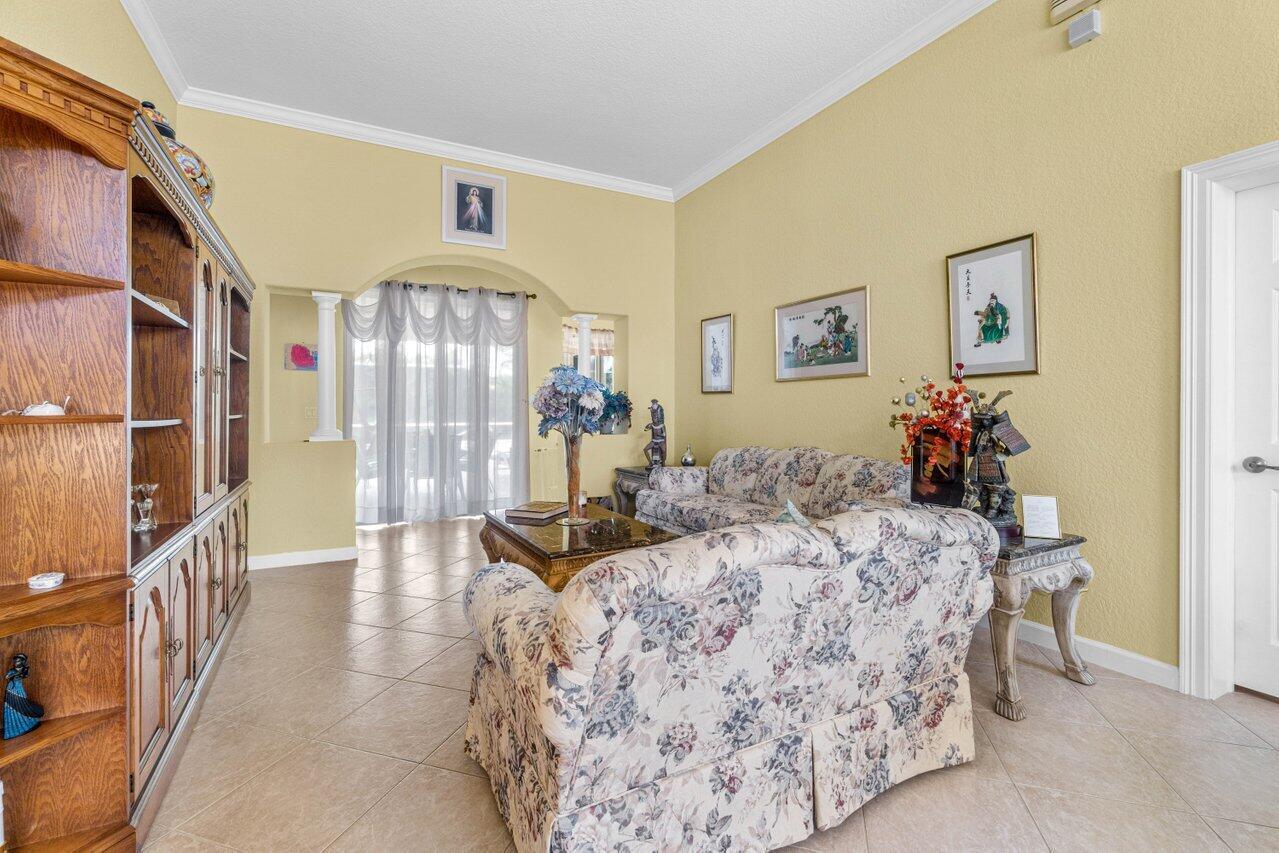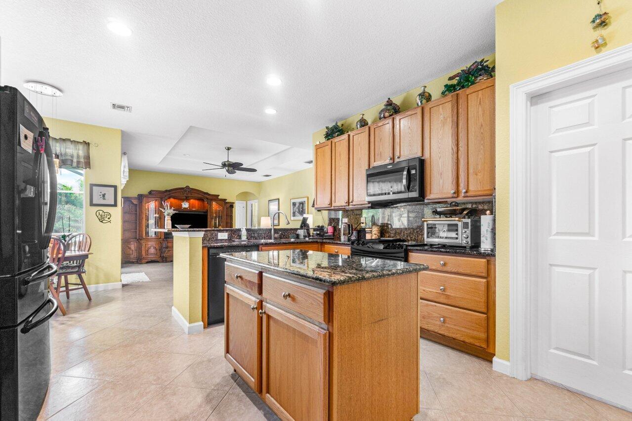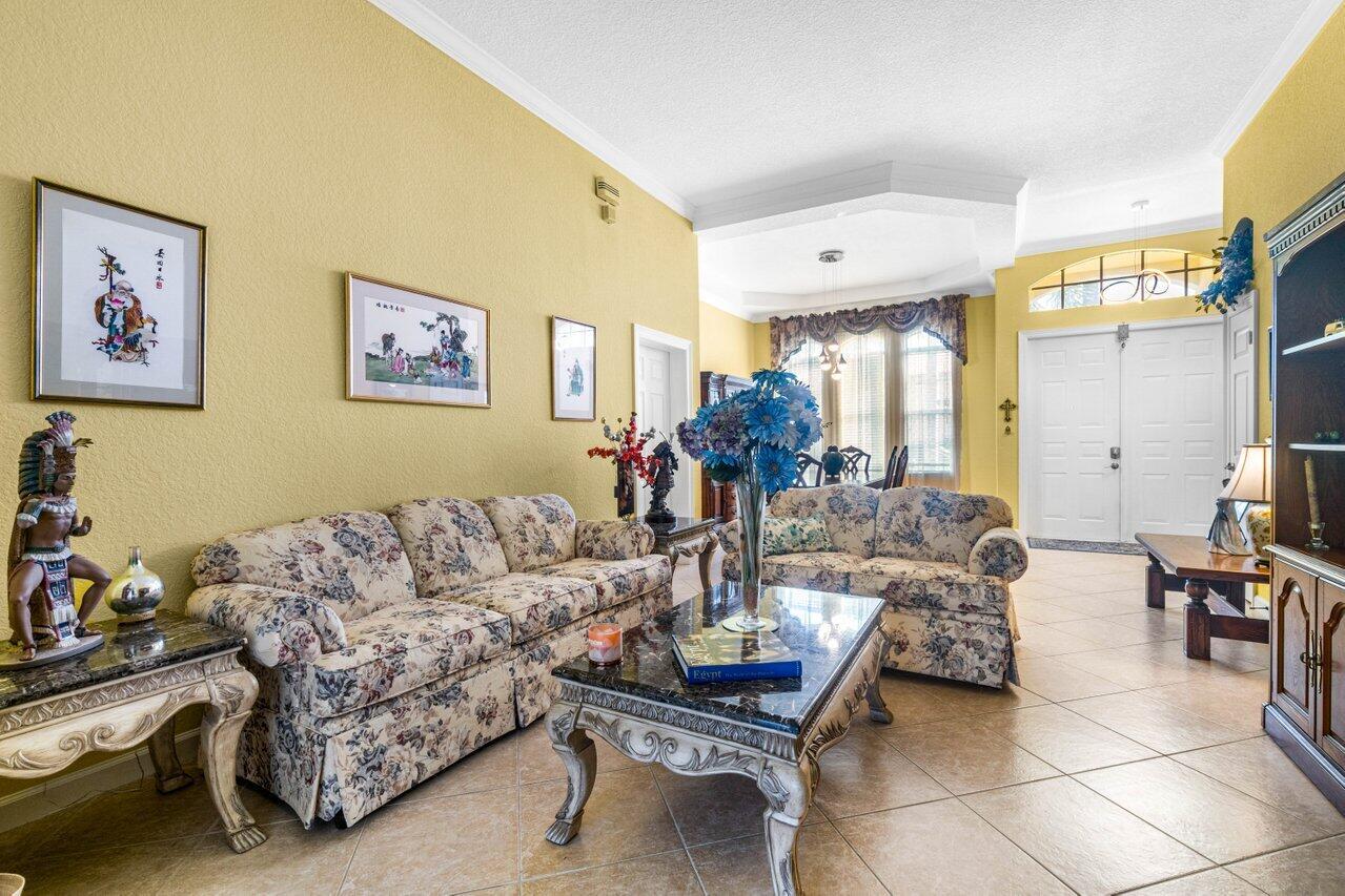 AMAZING! 4 bed, 3 bath POOL HOME on premium LAKE VIEW! The spacious TRIPLE SPLIT floorplan boasts volume tray ceilings w/ tons of natural light, REDONE guest bath w/ frames shower and new vanity. The entryway living & formal dining areas lead to the kitchen featuring granite counters, oversized pantry, prep island, & breakfast area. The kitchen opens to a large family room w/ sliders leading out to your private backyard paradise. The covered patio is perfect for BBQs & outdoor entertaining. Relax by the pool as you enjoy the privacy of the palm tree hedged yard w/ pristine lake views beyond. The private master retreat boasts patio sliders. The 4th bedroom is adjacent to a Cabana Bath for easy access from the pool. This is Florida living at its finest!