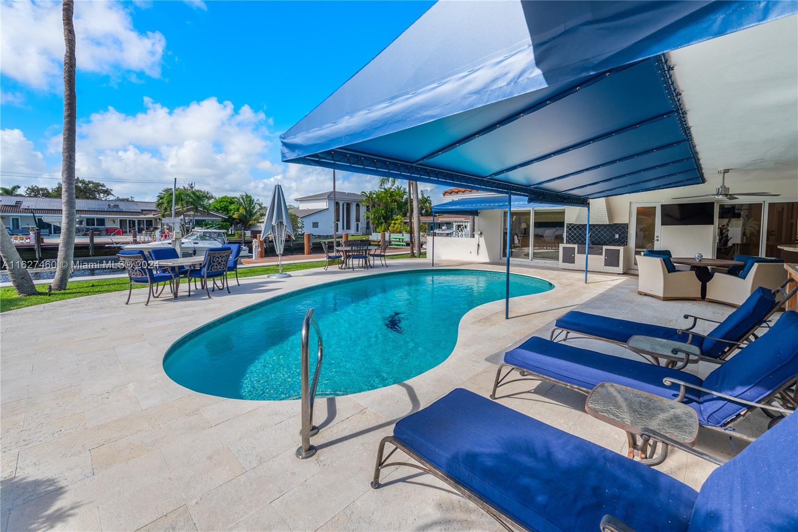 This charming waterfront residence is move-in ready. Located in The Landings, it offers easy access to countless amenities. Boaters have easy access to both Hillsboro & Port Everglades inlets with no fixed bridges. Dock your vessel (up to 70' yacht) in the 82’ deep-water canal. This home’s recent upgrades include: a newly constructed dock, elevated waterfront grade that enhance the size of your outdoor oasis, upgraded underground plumbing, a new patio awning, modern saltwater pool system, impact-resistant windows and exterior doors, Wolf natural gas range and burner, & numerous others. Discerning buyers seeking the quintessential Fort Lauderdale boating & residential lifestyle should prioritize this remarkable home.
