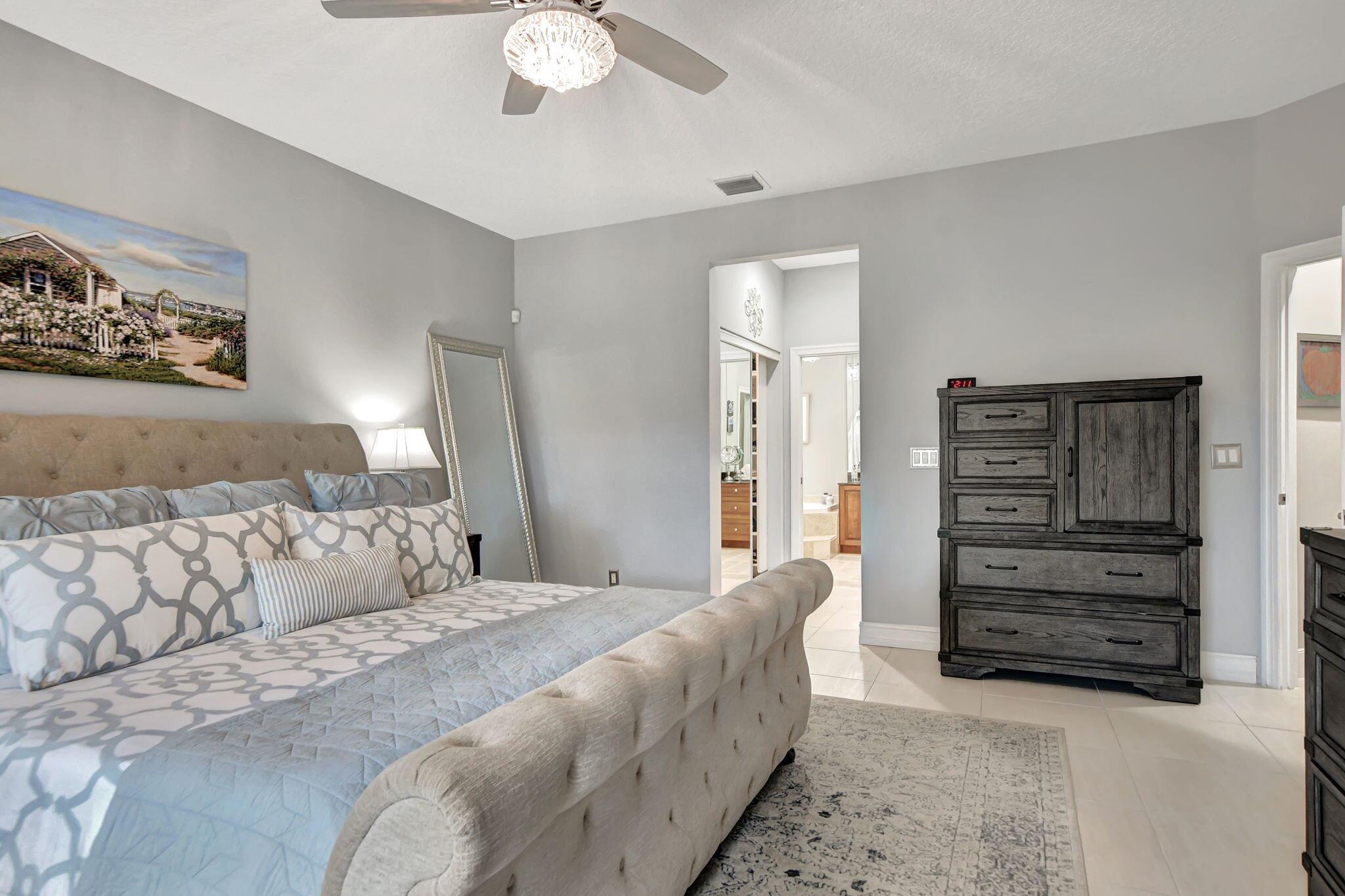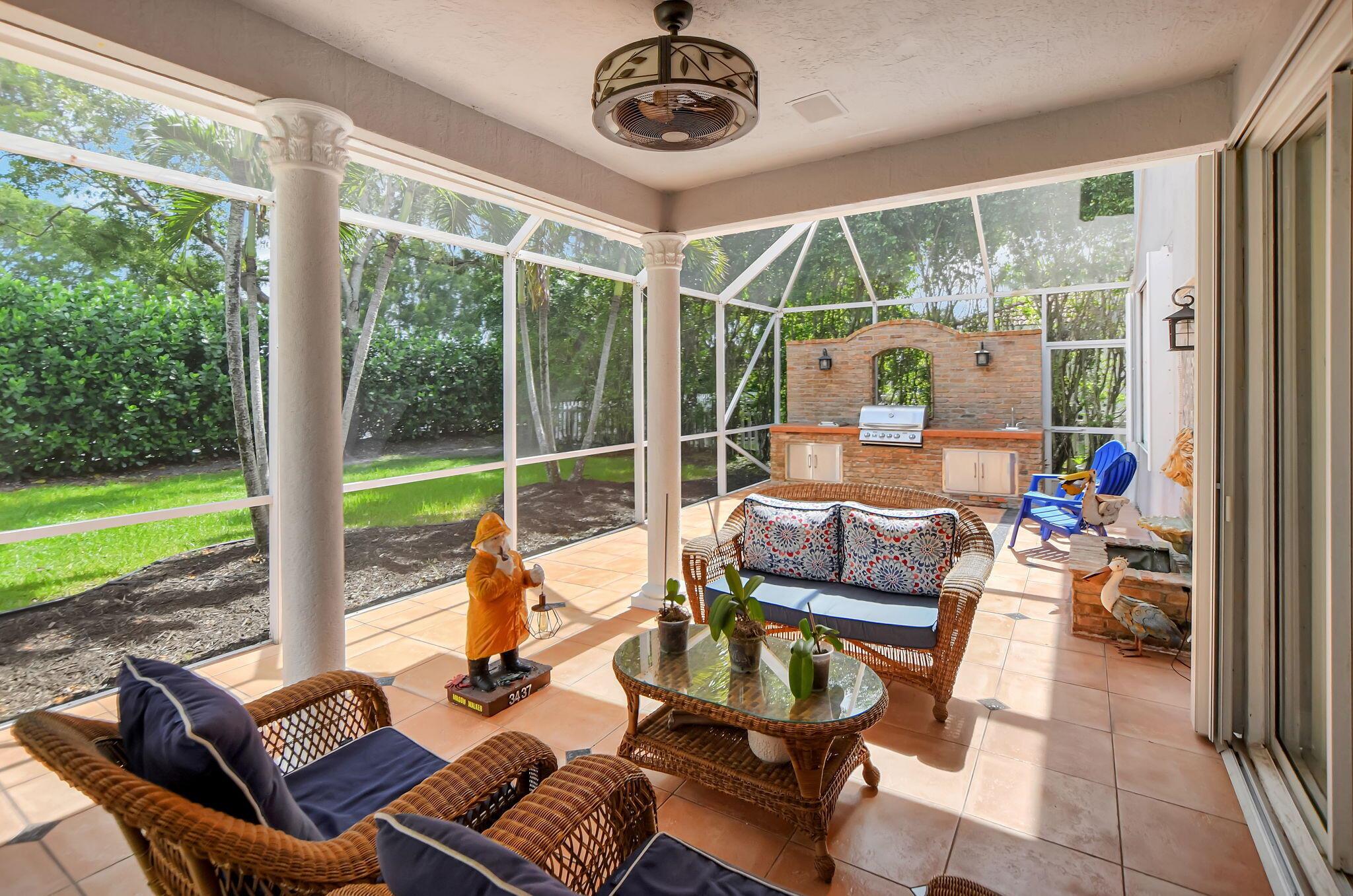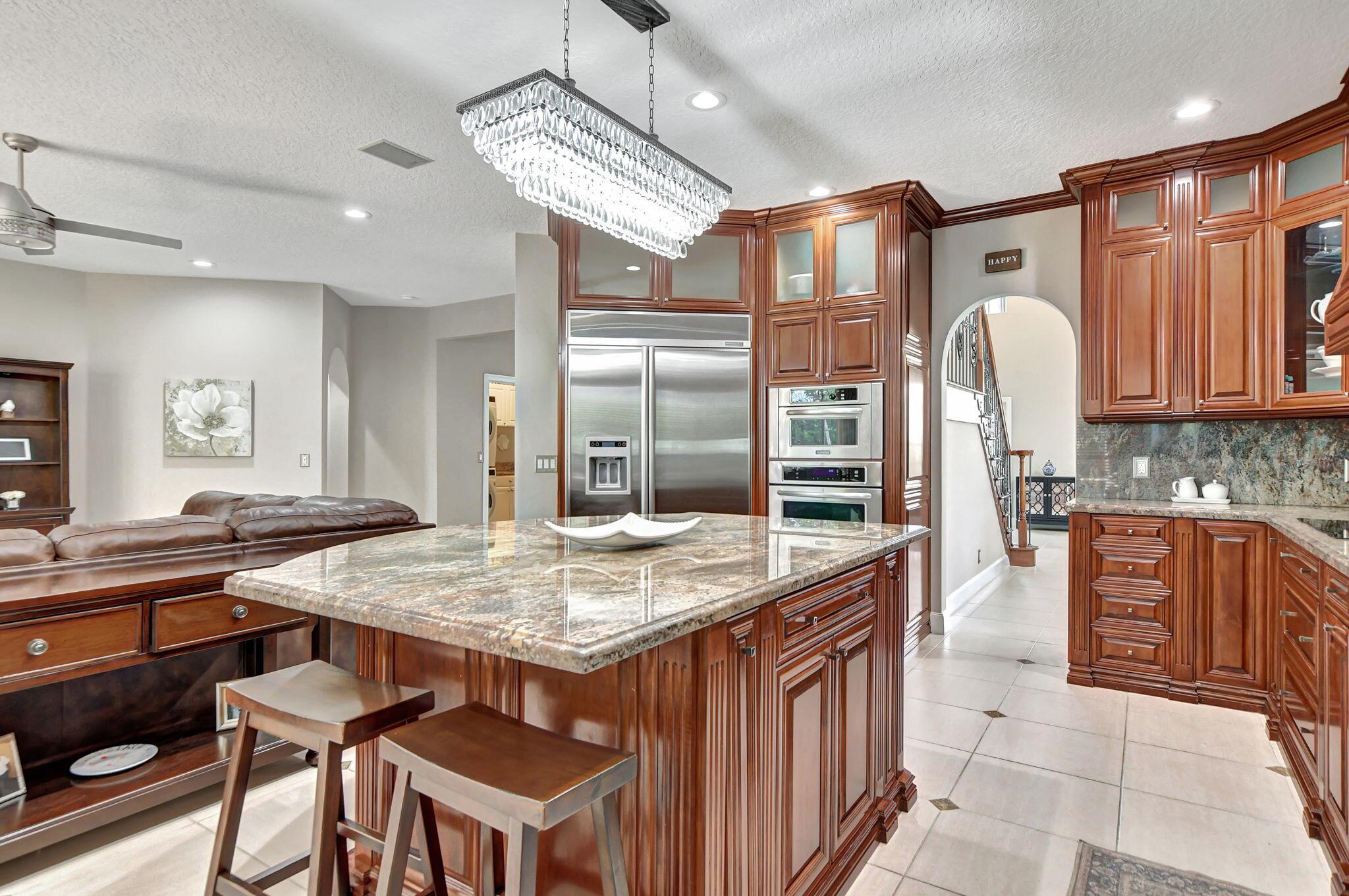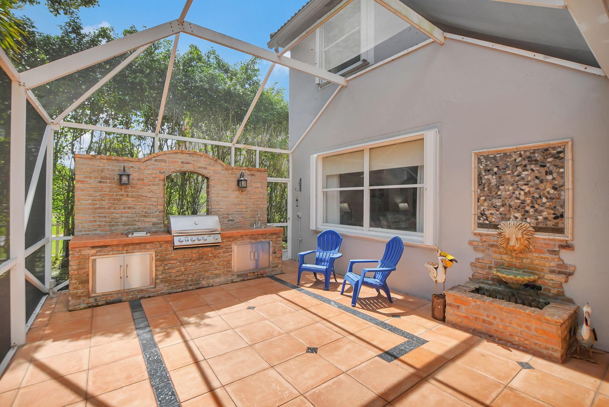 Updated home in the Resort style community of Boca Falls. Kitchen features Wall oven & microwave, large island, under cabinet lighting, large pantry & open concept to family room. Luxurious first floor primary bedroom boasts volume ceilings & two walk in closets. Primary bathroom fully renovated with designer cabinets, granite counter tops, free standing jetted tub & separate large shower with body sprays. Family room features volume ceiling & direct access to screened patio with built-in summer kitchen & water feature. Upstairs features a loft, 4 bedrooms & 2 luxury bathrooms with one bedroom having its own ensuite bathroom. Low HOA fees that include cable and internet.