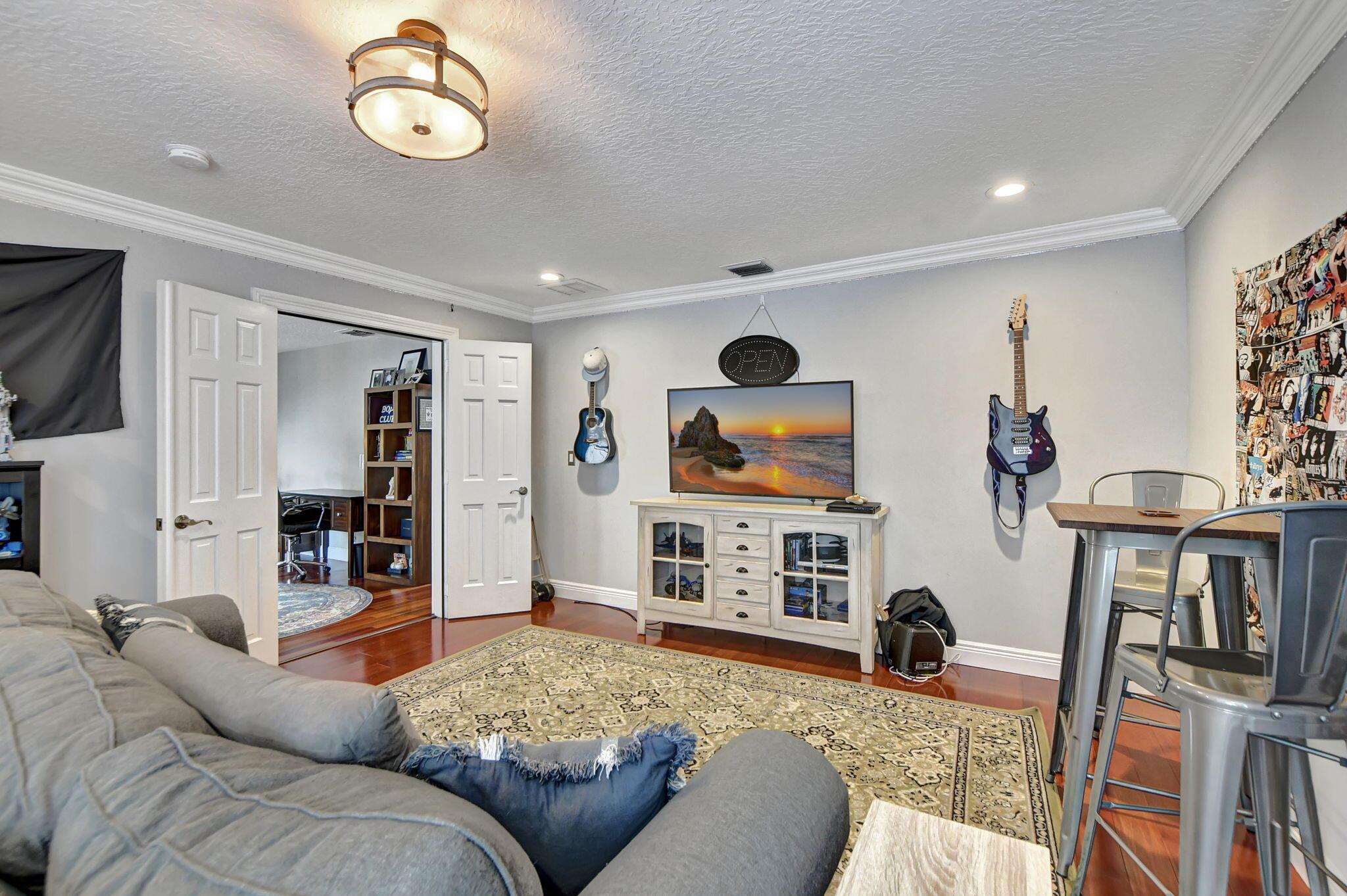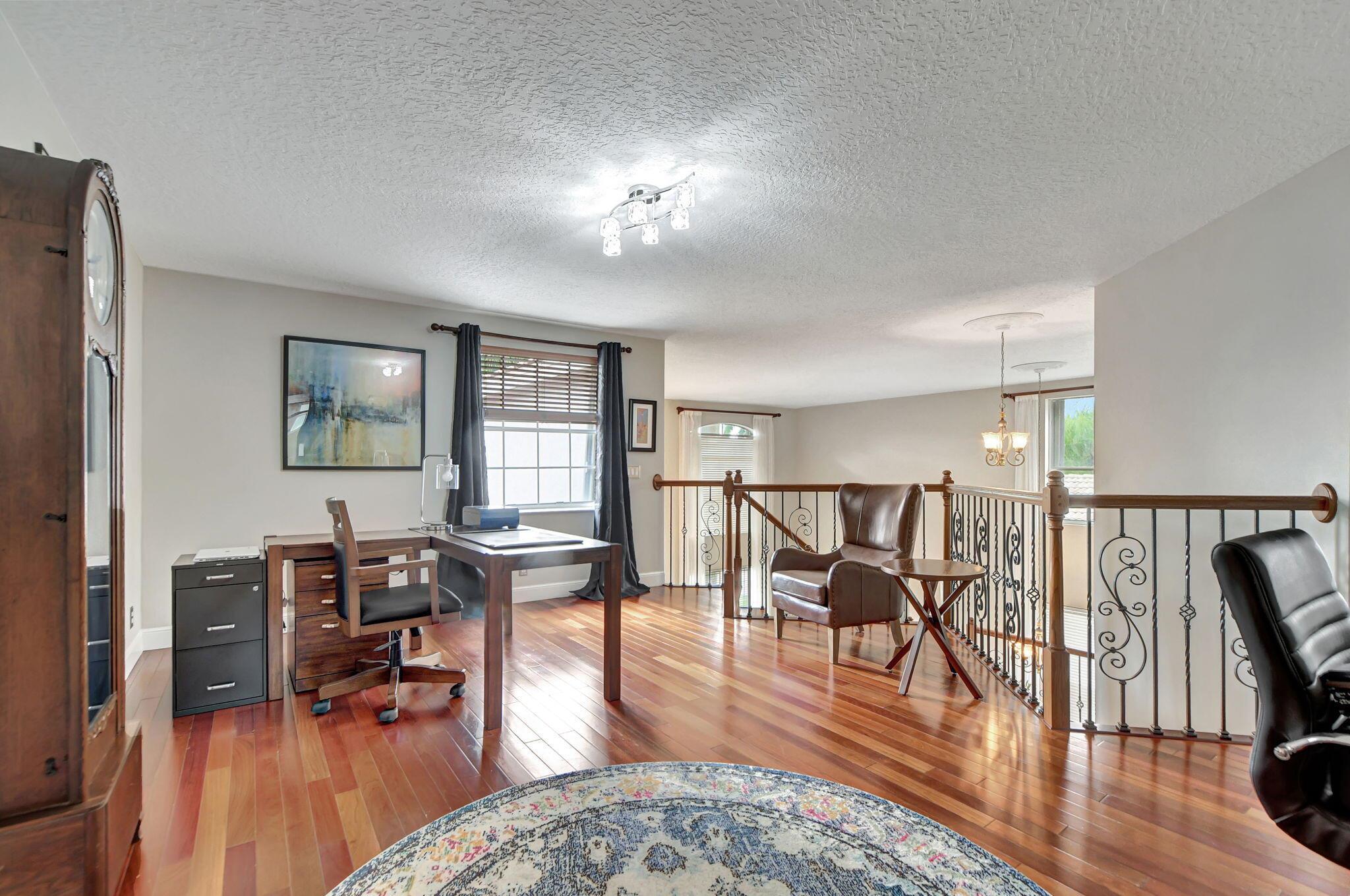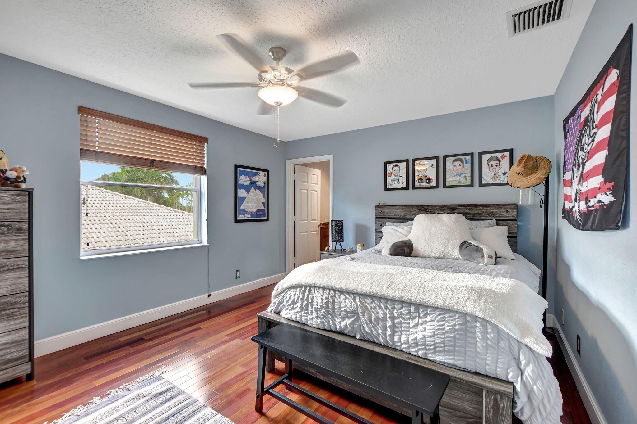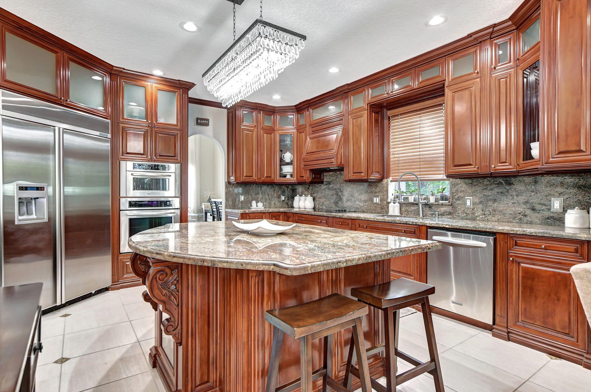 Updated home in the Resort style community of Boca Falls. Kitchen features Wall oven & microwave, large island, under cabinet lighting, large pantry & open concept to family room. Luxurious first floor primary bedroom boasts volume ceilings & two walk in closets. Primary bathroom fully renovated with designer cabinets, granite counter tops, free standing jetted tub & separate large shower with body sprays. Family room features volume ceiling & direct access to screened patio with built-in summer kitchen & water feature. Upstairs features a loft, 4 bedrooms & 2 luxury bathrooms with one bedroom having its own ensuite bathroom. Low HOA fees that include cable and internet.