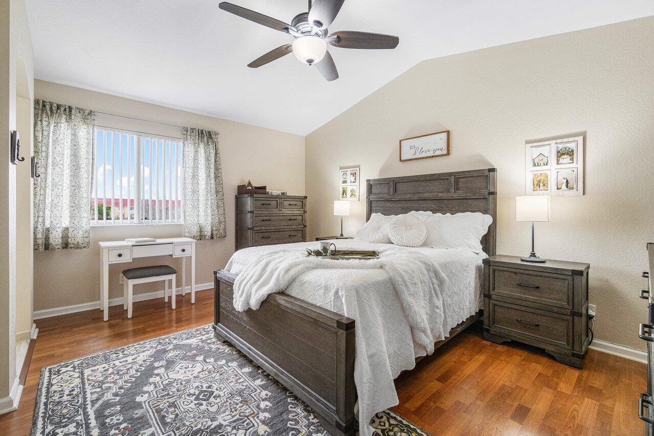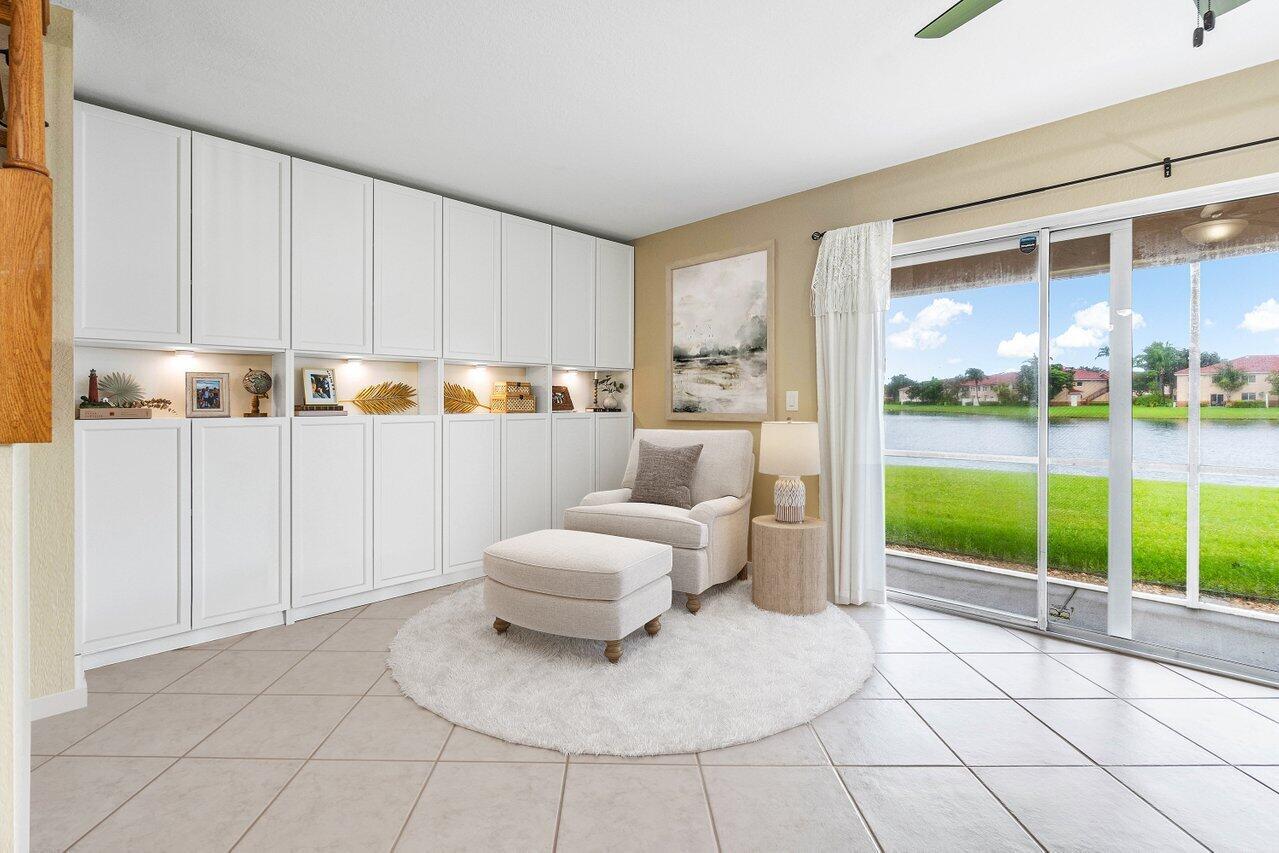 WELCOME HOME! This gem features; (3) bedrooms, plus loft, (2 1/2 ) baths, (1) car garage, screened in patio and defines well maintained! And this upgraded beauty is resting on a premium lot with a deep 300' sparkling lake view and is tucked away just a short walk to the countless community amenities. ENTERING the 24-hour manned security gate brings you into a mature palm lined street, plush landscaping and features wonderful amenities such as; resort style pool, gym/fitness center with high quality equipment, clubhouse, splash park, playgrounds, tennis courts, park, walking trails, pickle ball courts, picnic area and fishing ponds. Upon arrival you will be greeted by a convenient two car driveway, covered entry that brings you inside to a magnificent water view, grand family room (CLICK)