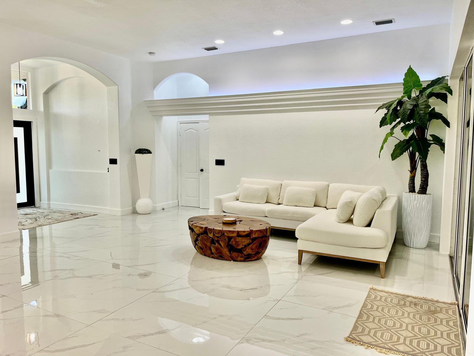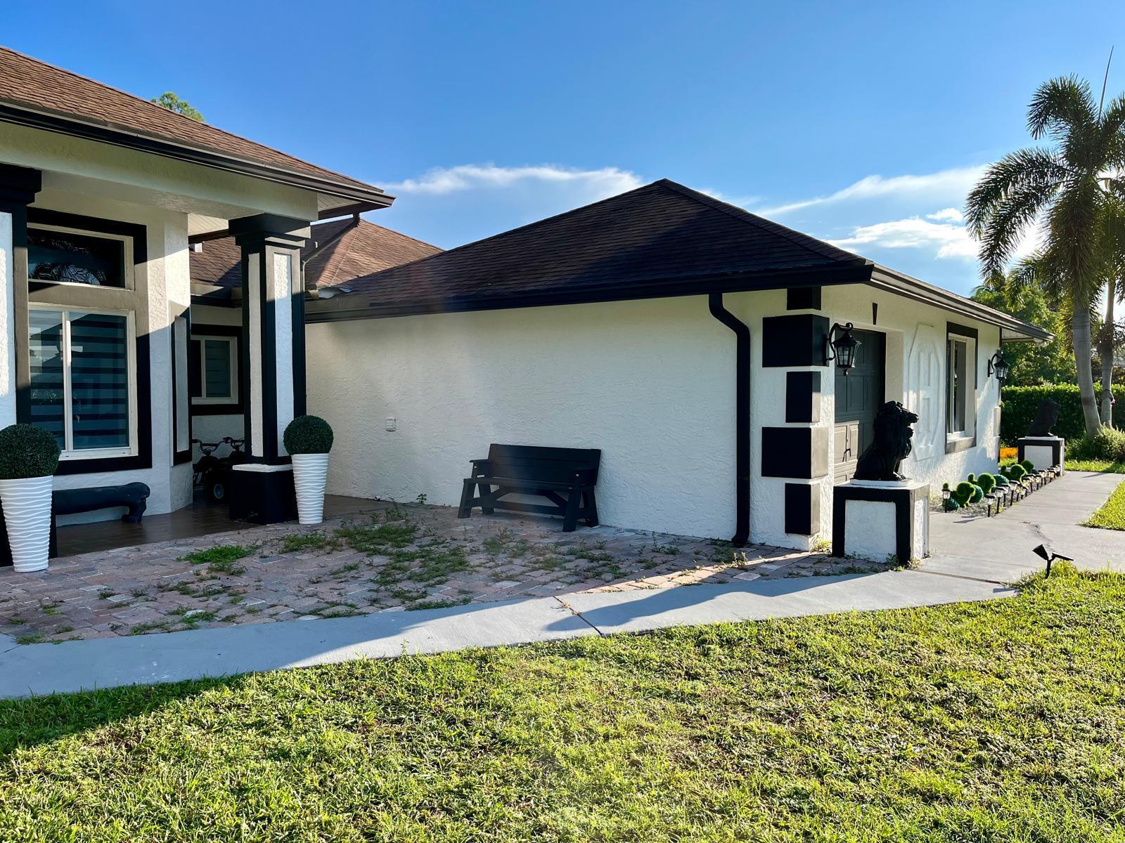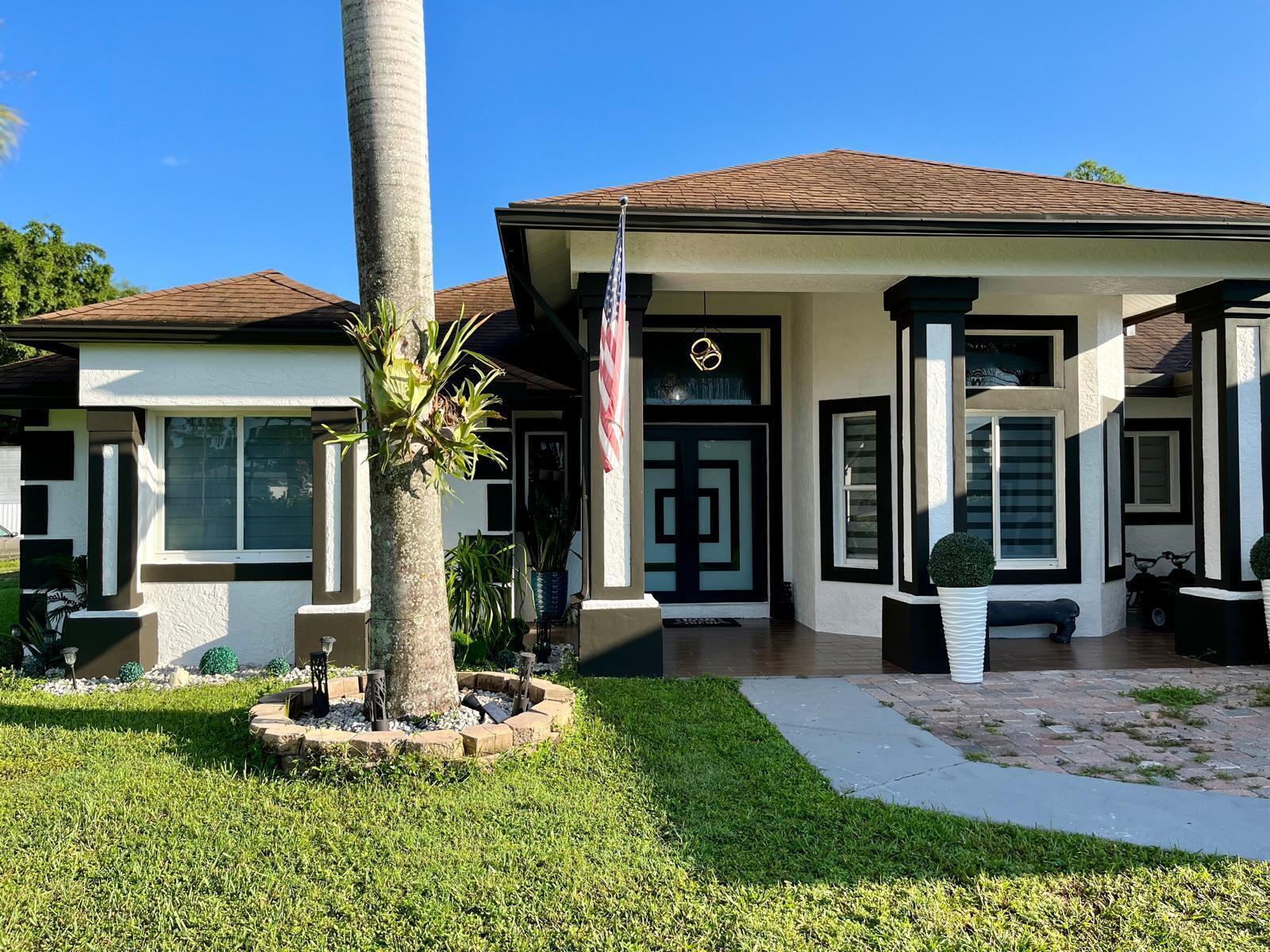 Beautiful house located on 1.15 acres has 4 spacious rooms all with their walking closet +1 office and 5 bathroom plus additional room all open design.New floor ,high ceiling,kitchen cabinets and modern appliances with central island .It also has an indoor laundry room and garage for 3 cars,irrigation system and different types of fruit trees and palm trees .In the large backyard you can enjoy the tranquility of nature.Bring your boat ,pets now and don't miss the opportunity to make an offer now on the house of your dreams.