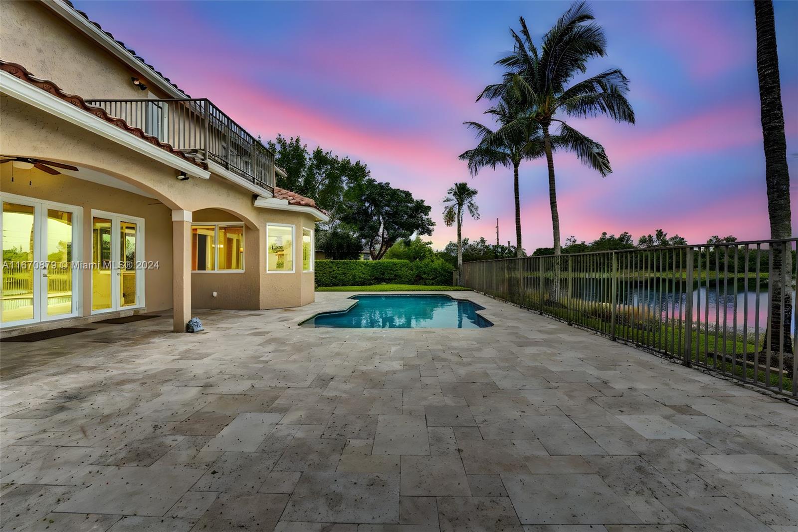 Discover a hidden gem in the prestigious Weston Hills CC—a remarkable two-story home situated on an expansive Cul-de -sac lot with FULL IMPACT window protection, IMPACT Doors plus a NEW 2018 ROOF! This property offers 5 bedrooms, 3.5 bathrooms, and a spacious layout with beautiful marble and wood flooring throughout. The oversized master suite on the second floor showcases breathtaking sunset and pool views from the open balcony, providing the perfect retreat. The gourmet kitchen boasts granite countertops, stainless steel appliances and a center island, ideal for hosting and entertaining. Outside, enjoy a sparkling pool with a travertine pool deck, perfect for relaxation and entertaining. With a large driveway and a 2-car garage, this home offers ample space for parking and convenience.