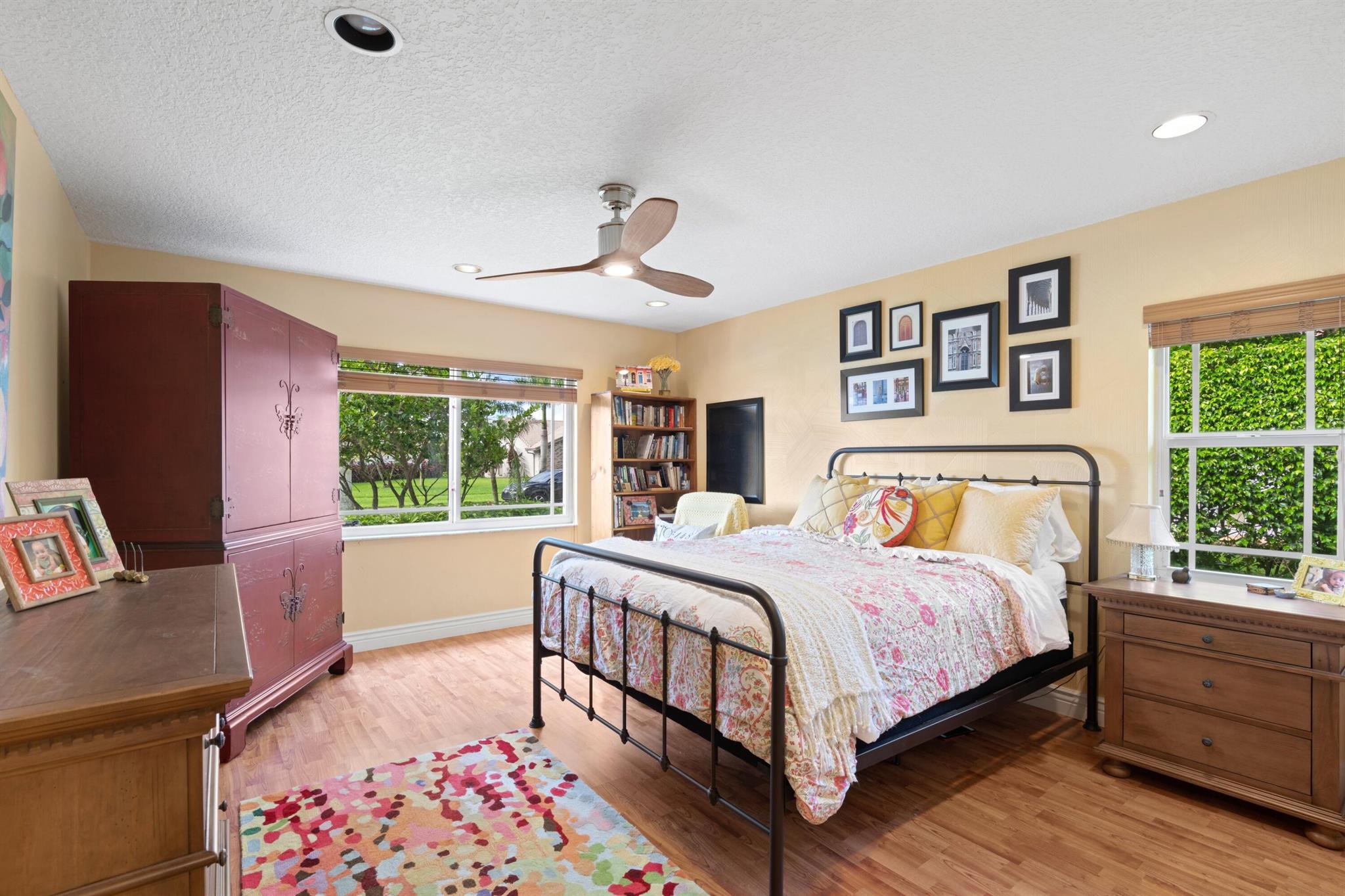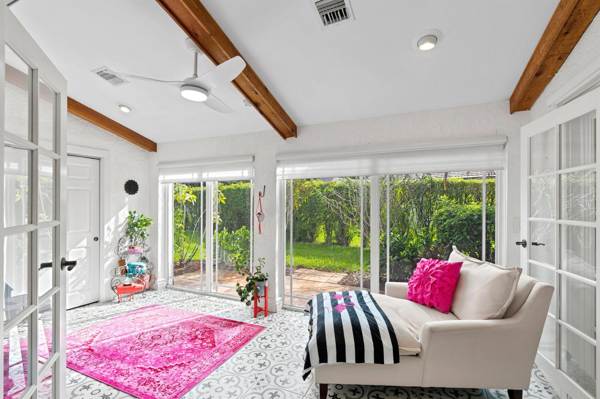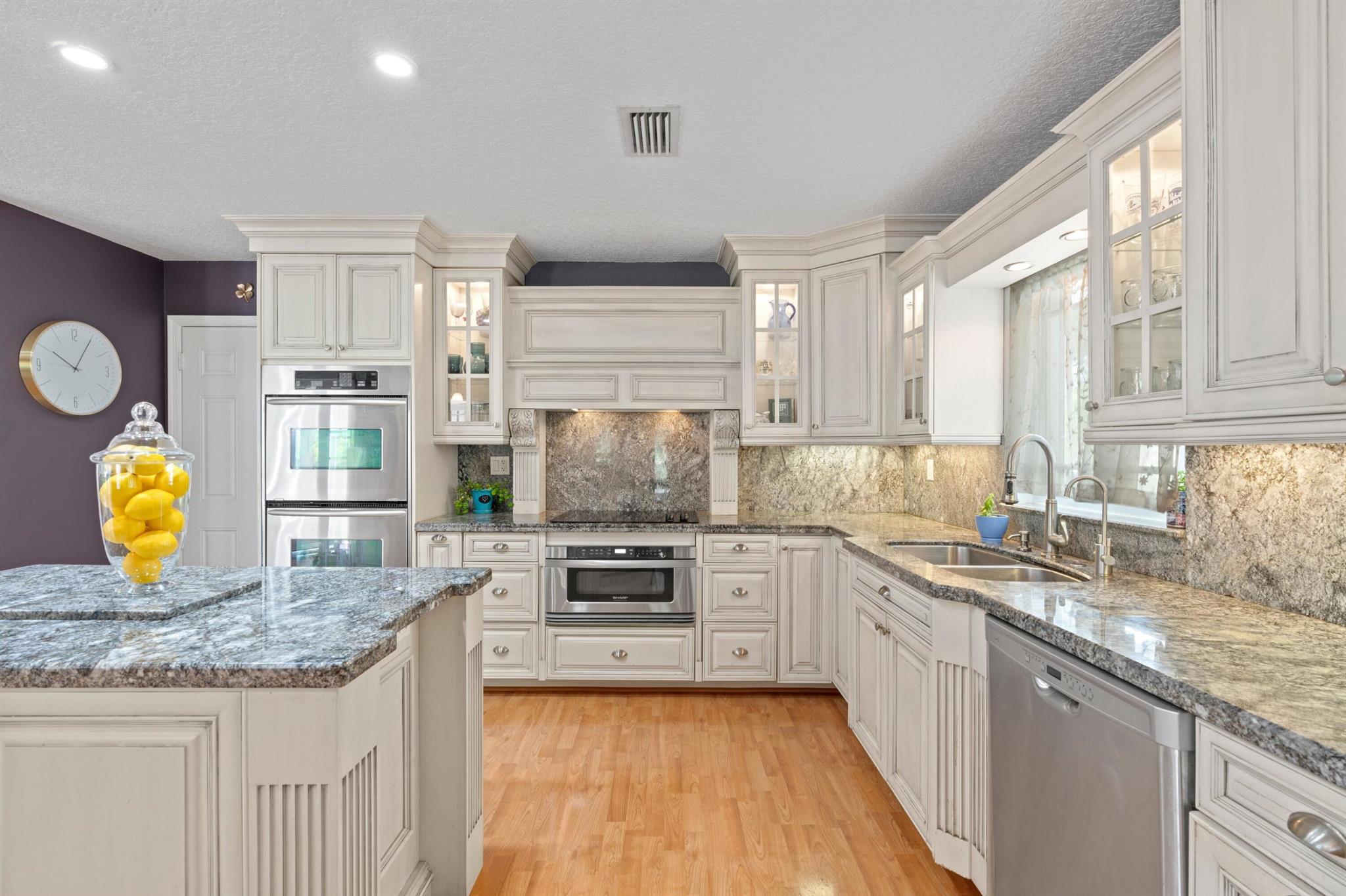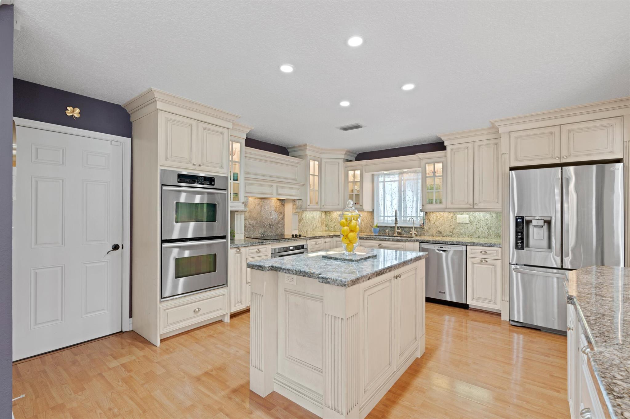 Experience life in a beautiful golf and tennis community without the steep membership fees. This gorgeous 3-bedroom, 2.5-bathroom home delivers breathtaking lakefront views and elegant interiors, ideal for relaxation and entertainment. Located on a quarter-acre lot, there's ample space for a pool. The kitchen is a chef's paradise, featuring top-notch stainless appliances, including double ovens, a huge pantry, and a large island that serves as a central gathering point. The open-concept living area is accented with high wood beam ceilings, offering a spacious ambiance while framing picturesque lake views through a screened patio. For safety and uninterrupted enjoyment, the home boasts impact glass windows and doors. The primary suite is a luxurious retreat, complete with ample closet