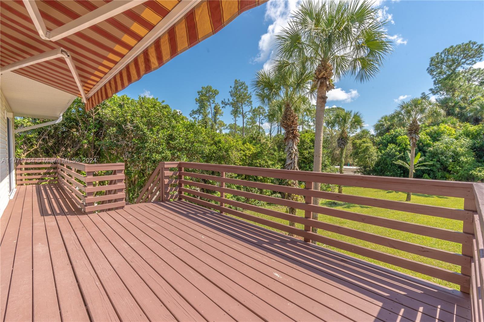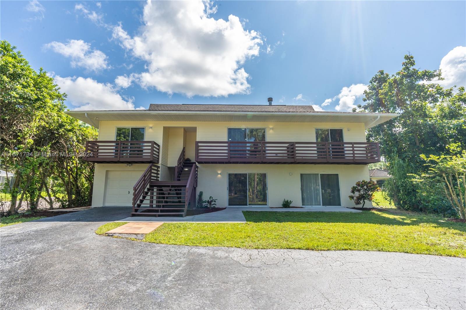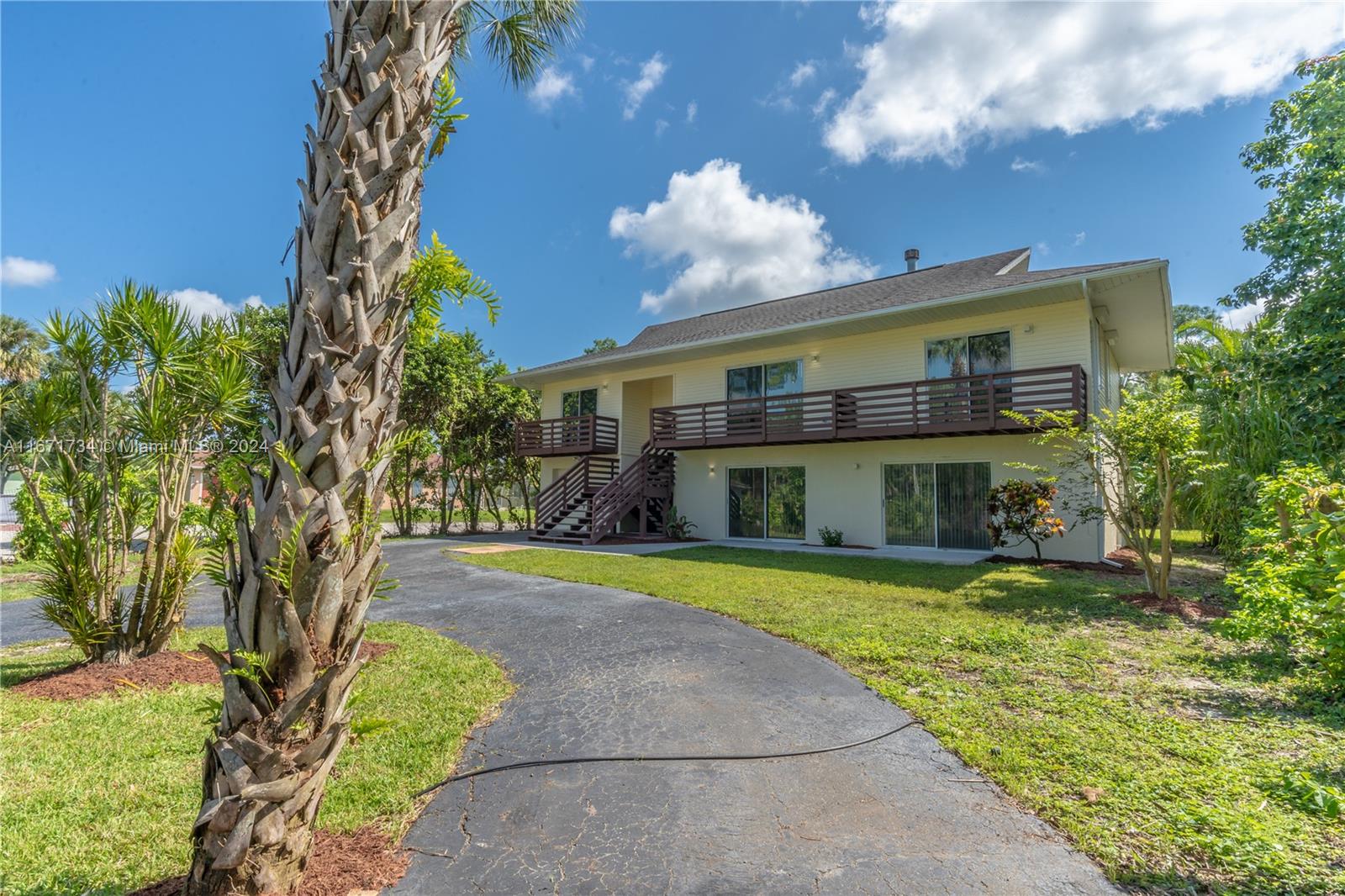 2 HOMES IN 1 set up with separate entrances. This is a perfect 2 family home or income producing property. Each floor has a separate kitchen, bathrooms, and washer/dryer. The upstairs boasts a 3/2 layout with a large flex room and ground floor is a 2 bed 2 bath with a screened porch., cathedral ceilings, skylight, and sliders that flood the home with natural light. Updated kitchen with modern appliances, new cabinets, breakfast bar, and service window to the back deck with an electric awning. All bedrooms have deck access. The downstairs adds 895 sq. ft. of living space with a separate kitchen, bath, and laundry—ideal for rental or guests. Just 10 minutes from Collier Blvd! Don't miss this opportunity!