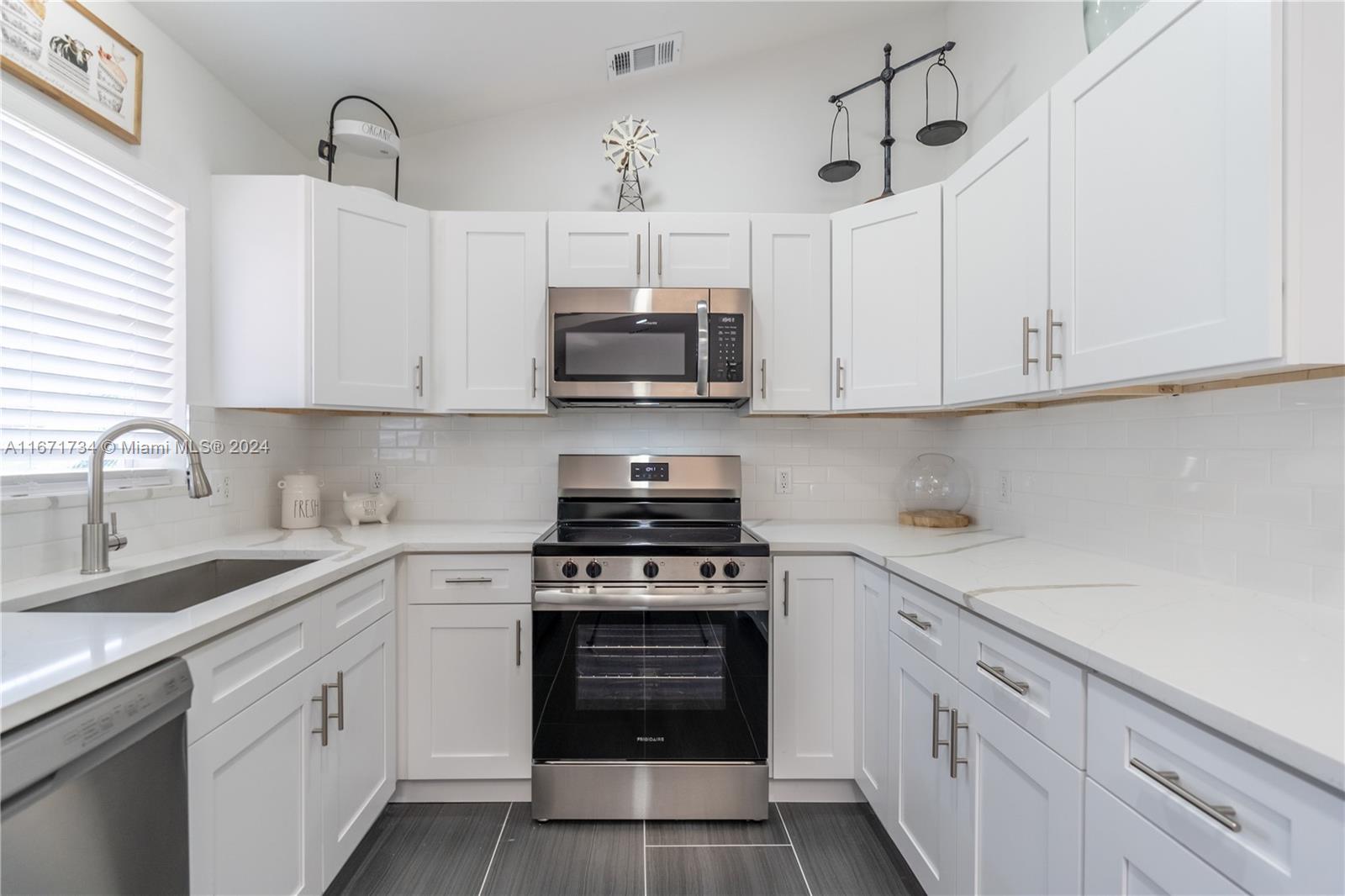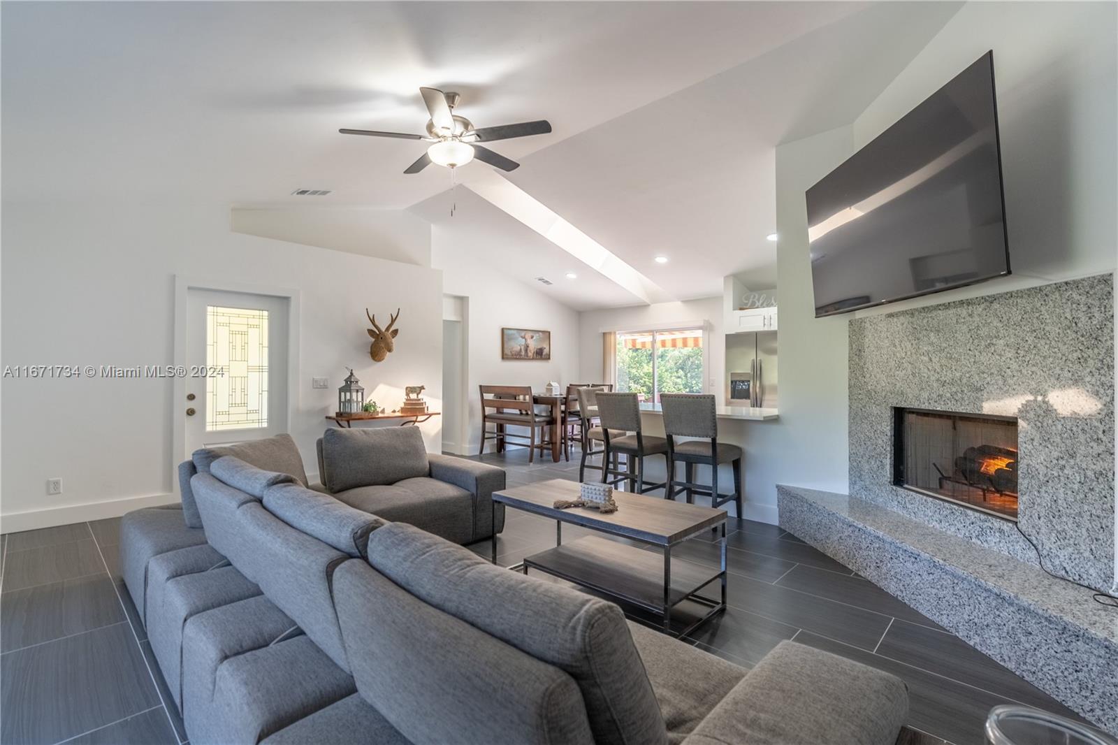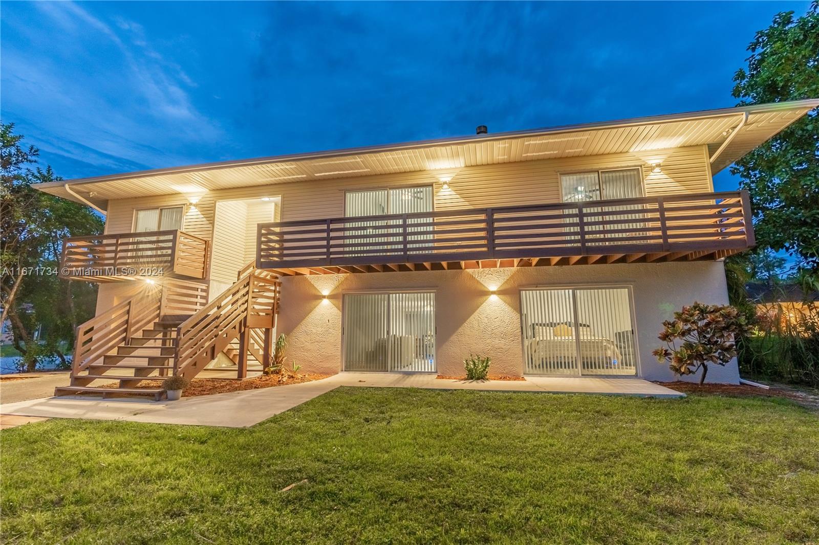 2 HOMES IN 1 set up with separate entrances. This is a perfect 2 family home or income producing property. Each floor has a separate kitchen, bathrooms, and washer/dryer. The upstairs boasts a 3/2 layout with a large flex room and ground floor is a 2 bed 2 bath with a screened porch., cathedral ceilings, skylight, and sliders that flood the home with natural light. Updated kitchen with modern appliances, new cabinets, breakfast bar, and service window to the back deck with an electric awning. All bedrooms have deck access. The downstairs adds 895 sq. ft. of living space with a separate kitchen, bath, and laundry—ideal for rental or guests. Just 10 minutes from Collier Blvd! Don't miss this opportunity!