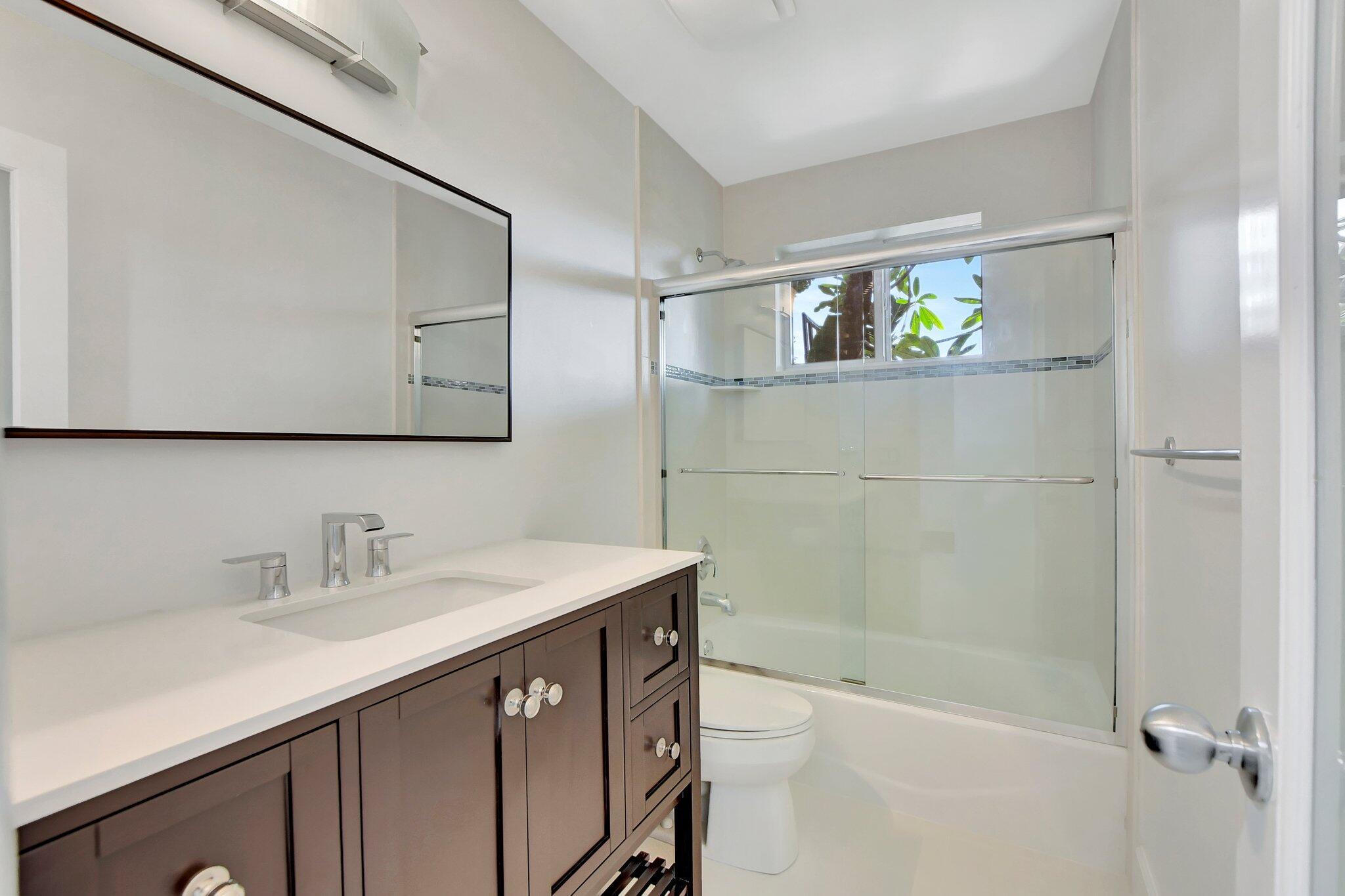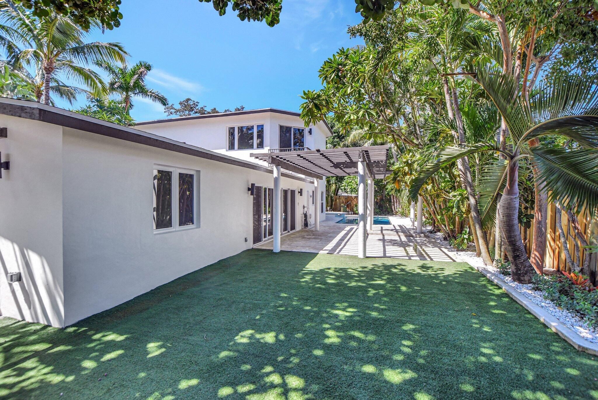 East Boca Paradise! This stunning updated 3BR, 3BA, two-story pool home with a 1-car garage sits on a generous corner lot in a desirable school zone. The beautifully landscaped, fully fenced backyard offers complete privacy and is perfect for entertaining with a resort-style pool, jacuzzi, astroturf, and space for an outdoor kitchen/BBQ area. A deck surrounds an old-growth Sea Grape tree, while a basketball/tetherball slab and space for boat/RV storage add versatility. Inside, the first floor features a cozy family room with a gas fireplace, a spacious living room, and an en-suite bedroom plus an additional guest bedroom with a separate bath. The chef's kitchen boasts Kvanum cabinets, quartz countertops, a brand-new fridge and dishwasher, and a large gas stove.