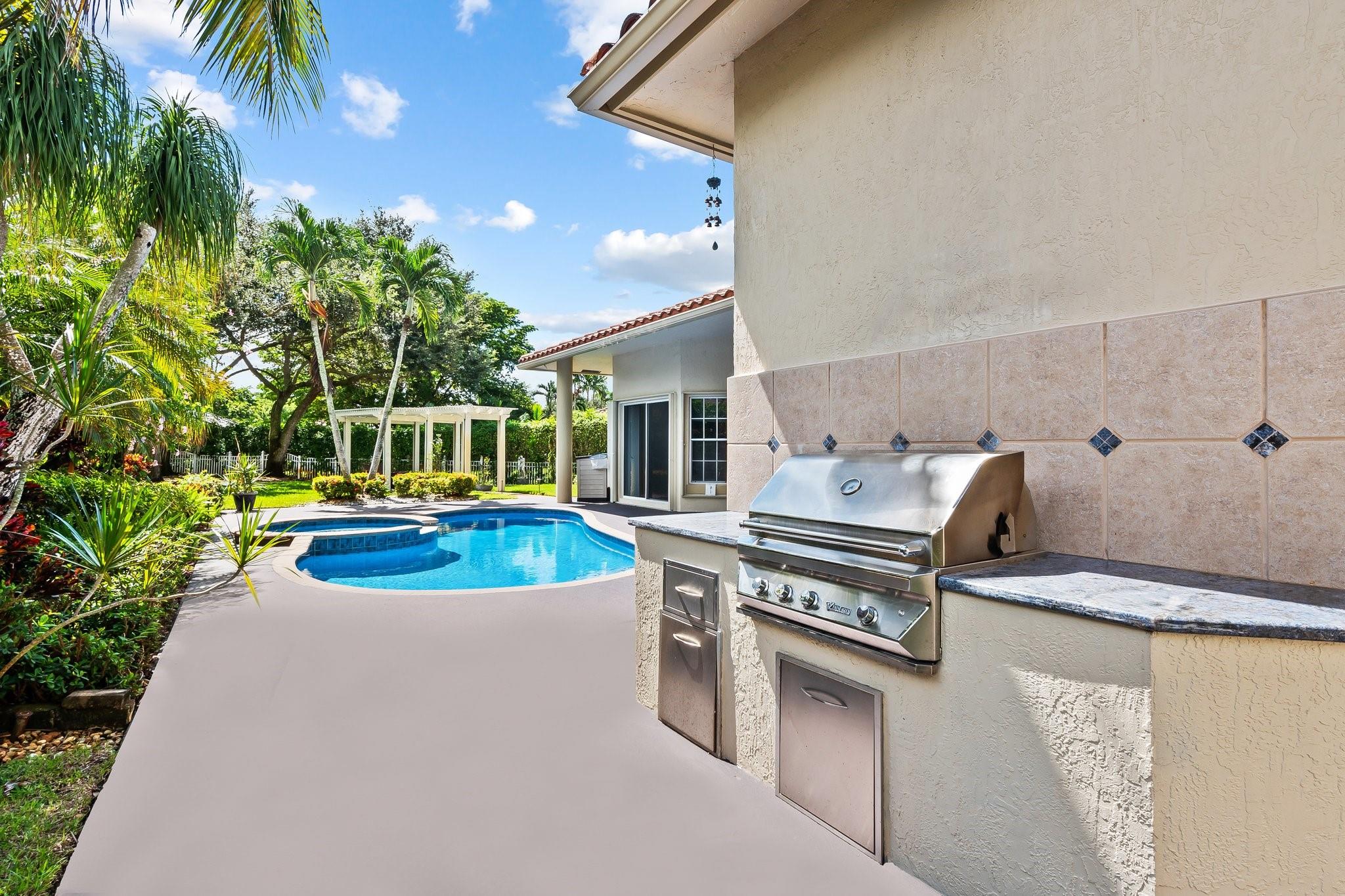 Welcome Home! A true gem, meticulously maintained, light & bright open floor plan, spacious and perfect for entertaining. Owners spared absolutely no expense in the renovations of this spectacular masterpiece. Situated on a 19K+ square foot lot, nestled within a cut-de-sac. 5th Bedroom used as a Den/Office. 12' Soaring Ceilings. Chefs kitchen equipped with Sub Zero Fridge, Thermidor Double Ovens, Bosch Dishwasher, and Separate Bar. All bathrooms were renovated 1 year ago. Salt water pool is heated and was redone 1 year ago with new pool pump. Enjoy your own private oasis relaxing under this beautiful Pergola, Twin Eagles Gas Grill, and a side yard that boasts Banana, Avocado, Lime & Grapefruit trees. Roof was replaced in 2017, Accordion Shutters. A must see to truly appreciate.