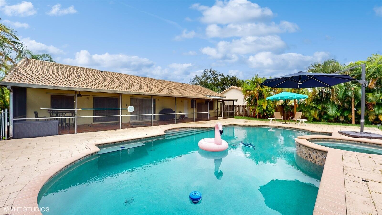 Located in the highly sought after community of Ivanhoe, this spacious home on .3 acres offers a prime location that features a Low HOA ($395 a year) and A rated schools. This 4 bedroom 2 bathroom home with a 2 car garage has a fully renovated primary bath, porcelain floors, and wood floors in the bedrooms. The backyard has the unique feature of a one of a kind 40X20ft 44,000 gallon pool with a heater/chiller, water features, built in jacuzzi and is 7 ft deep, for year round enjoyment and resort style living.