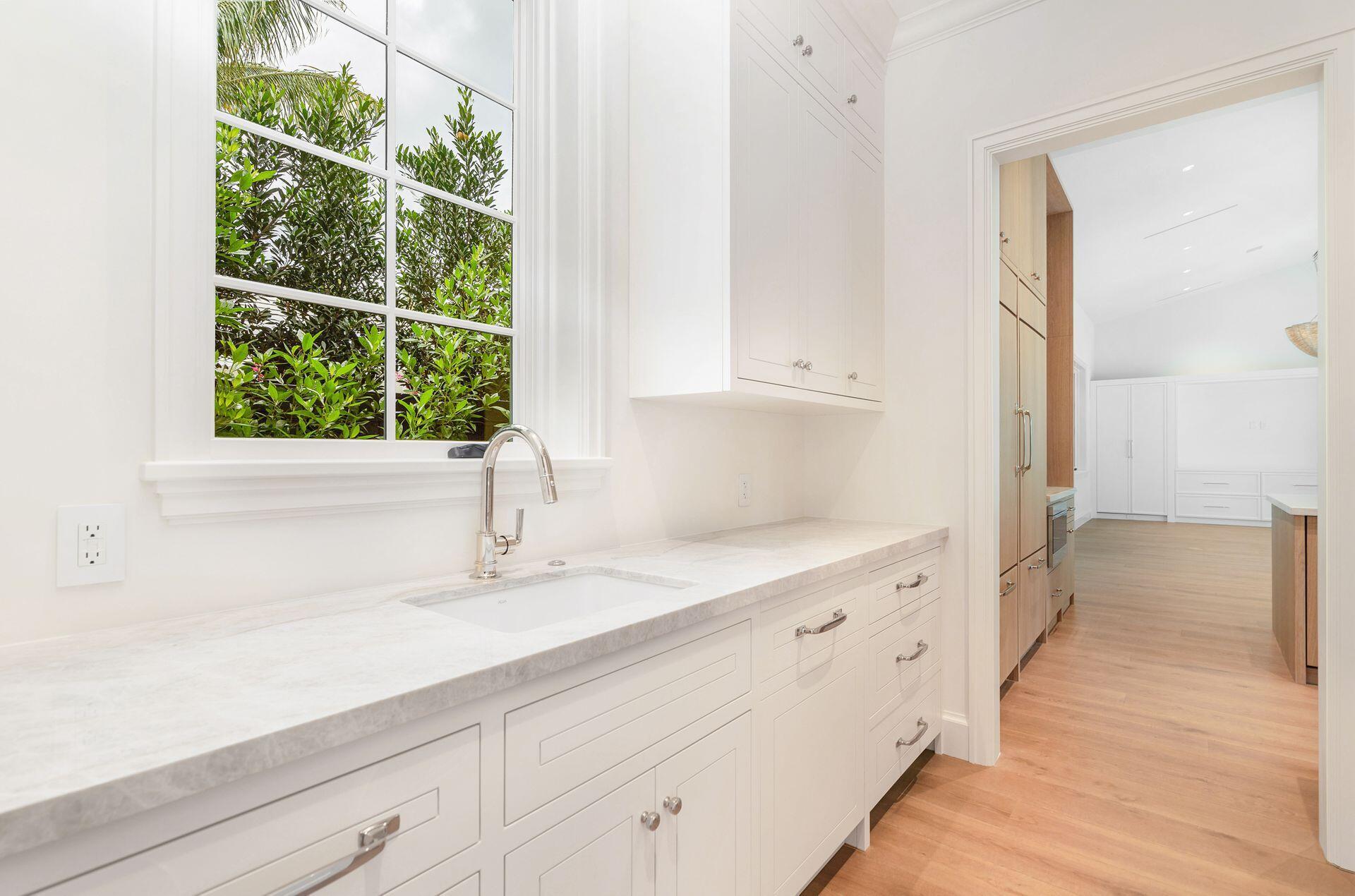 Situated on an oversized 13,500 sq. foot lot with a private back alley entrance to the properties three car garage, rests the stunning new construction home featuring 7 bedrooms, 8 full bathrooms and two 1/2 bathrooms. Architecture by Dailey Janssen, designed by Hive Palm Beach and built by the Curry Group, this luxurious designer made home is turnkey. Hosting the best of the best, the kitchen incorporates a 48'' Wolf 8-burner gas range, a Bosch dishwasher, a Subzero fridge/freezer, and fixtures by Waterworks. Adjacent to the magnificent kitchen and great room is a thoughtful butler's pantry with quartzite countertops, Moroccan tile backsplash, an additional Bosch dishwasher and Subzero fridge & freezer drawers. This home incorporates two staircases each leading you to 2 guest bedrooms