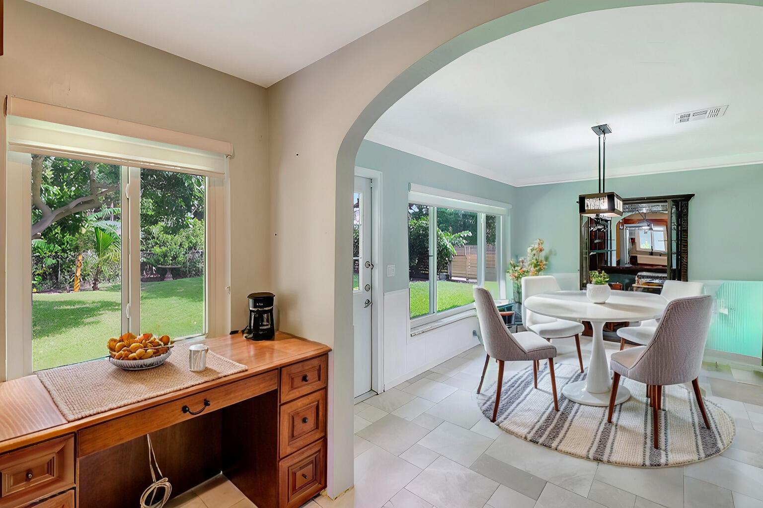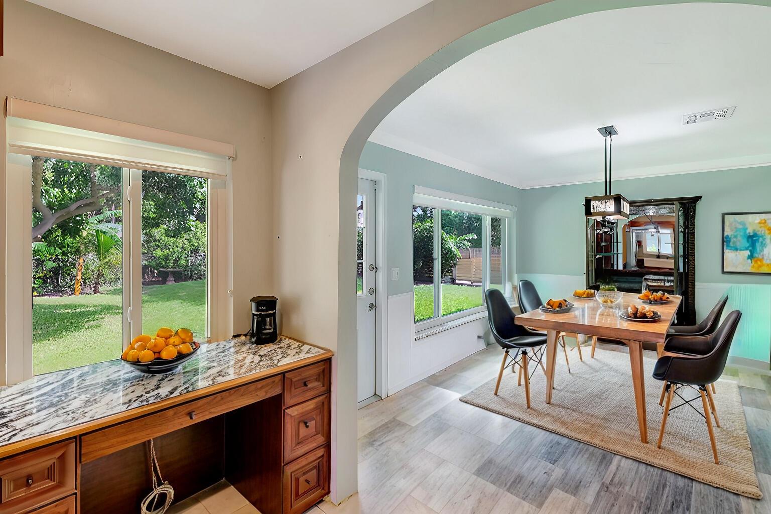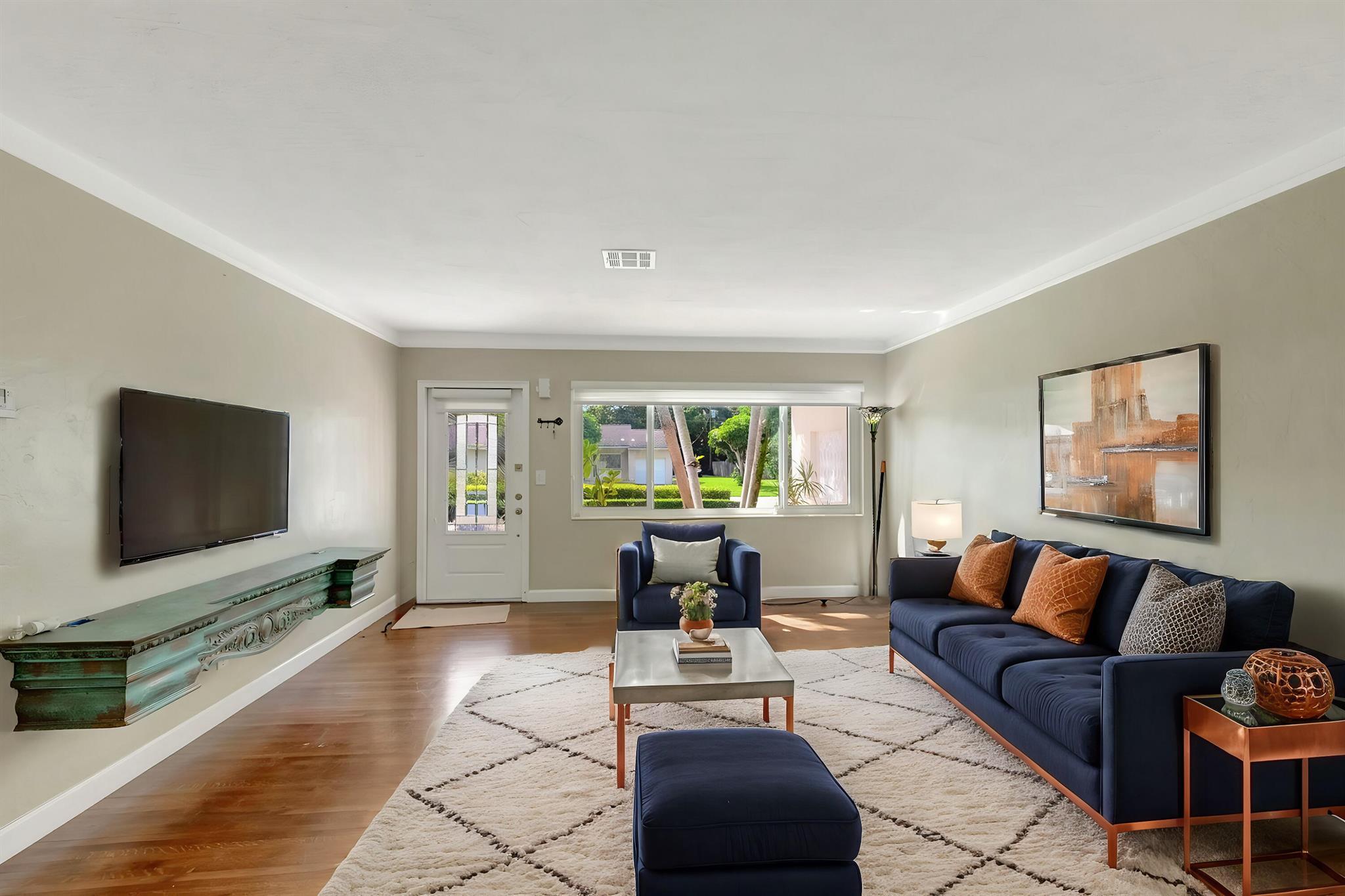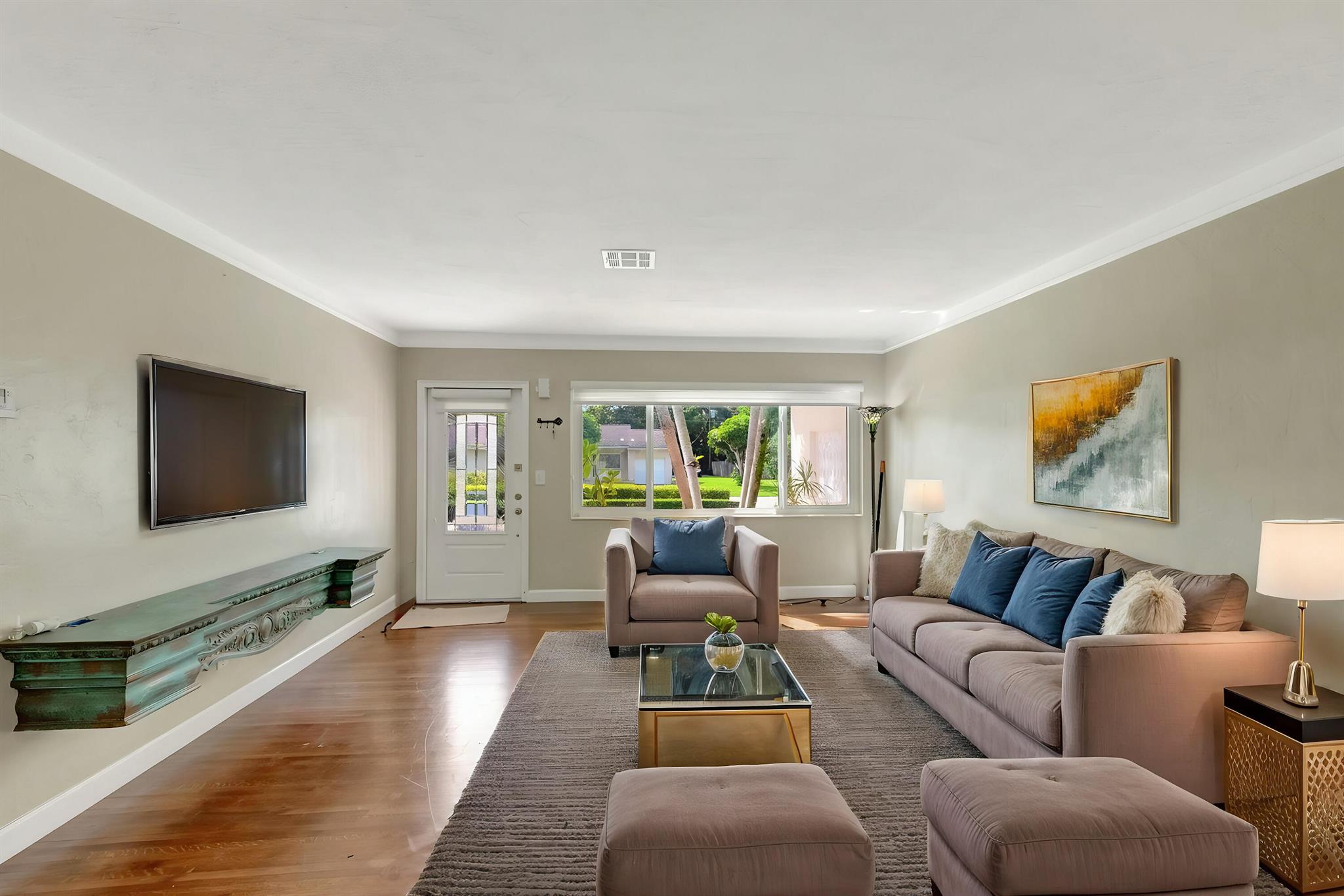 JUST REDUCED! MID CENT. MOD CORNER HOME, 3 BEDROOMS & 2 FULL BATHROOMS. FRESHLY PAINTED INTERIORGARAGE(SEPARATE EXTERIOR ENTRANCE CONVERTED TO THIRD BEDROOM WITH SINK & MINI FRIDGE & OWN WASHER & DRYER & FULL BATH)4 A TOTAL OF 1426 SQ. FT. UNDER AIR(REPLACED 2 YEARS AGO). ORIGINAL WOOD FLOORS THROUGHOUT EXCEPT FOR TILE & MARBLE IN BATHROOMS & KITCHEN FLOORS.ROOF IS BARREL TILE. HIGH GRADE SOUND DEADENING IMPACT WINDOWS THROUGHOUT HOME (2 YEARS). COMPLETELY FENCED IN SPACIOUS BACKYARD WITH CONCRETE PAD TO PARK YOUR BOAT or CAR. REMODELLED KITCHEN WITH CUSTOM CABINETRY, IMPORTED FARM SINK & BUILT IN DESK, QUARTZ COUNTERTOPS & 3 YEAR YOUNG STAINLESS STEEL APPLIANCES. DINING ROOM FEATURES CUSTOM 6 FOOT BUILTIN BAR WITH WINE FRIDGE. SECOND WASHER & DRYER AT OPPOSITE END OF HOME.