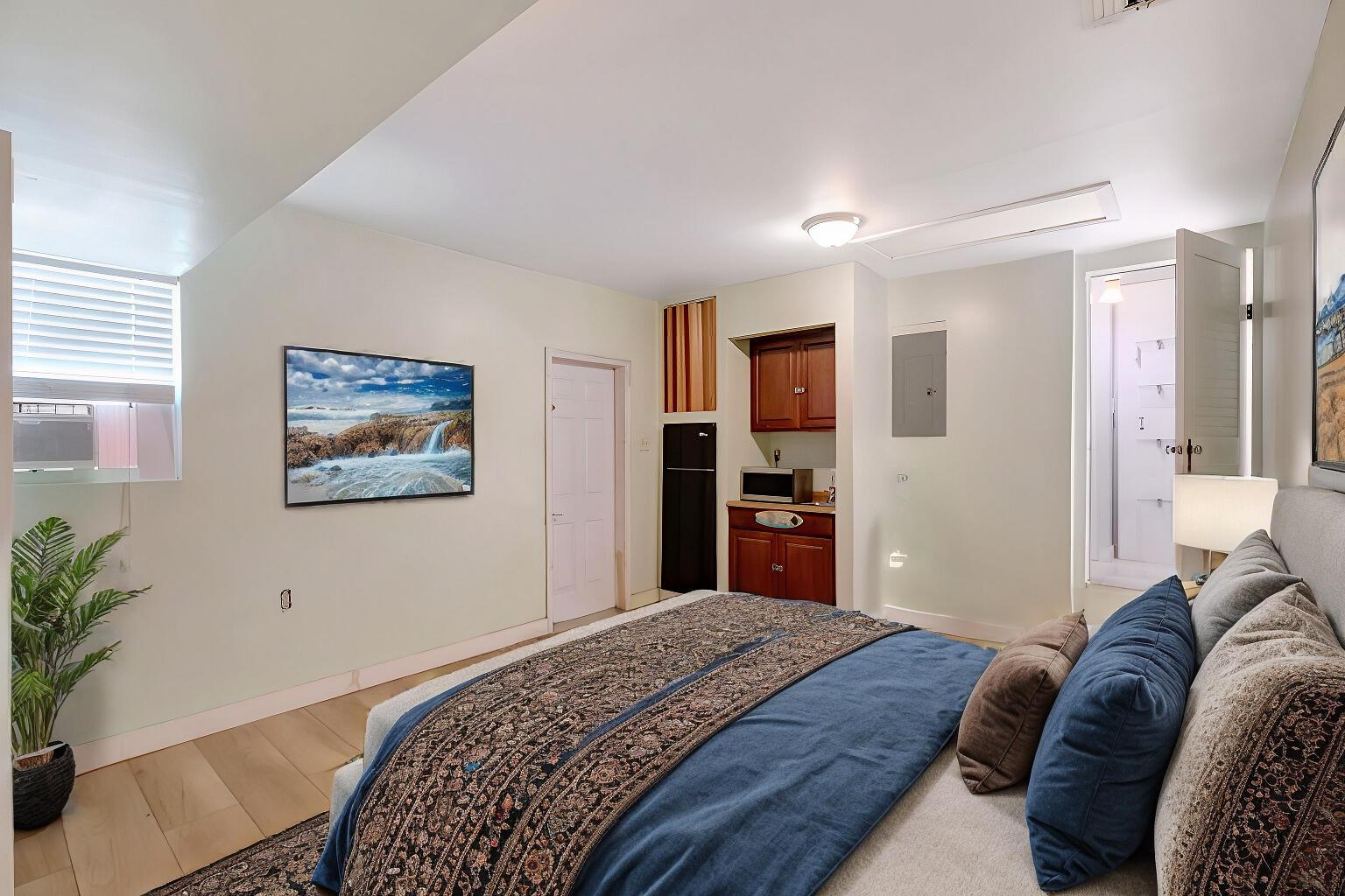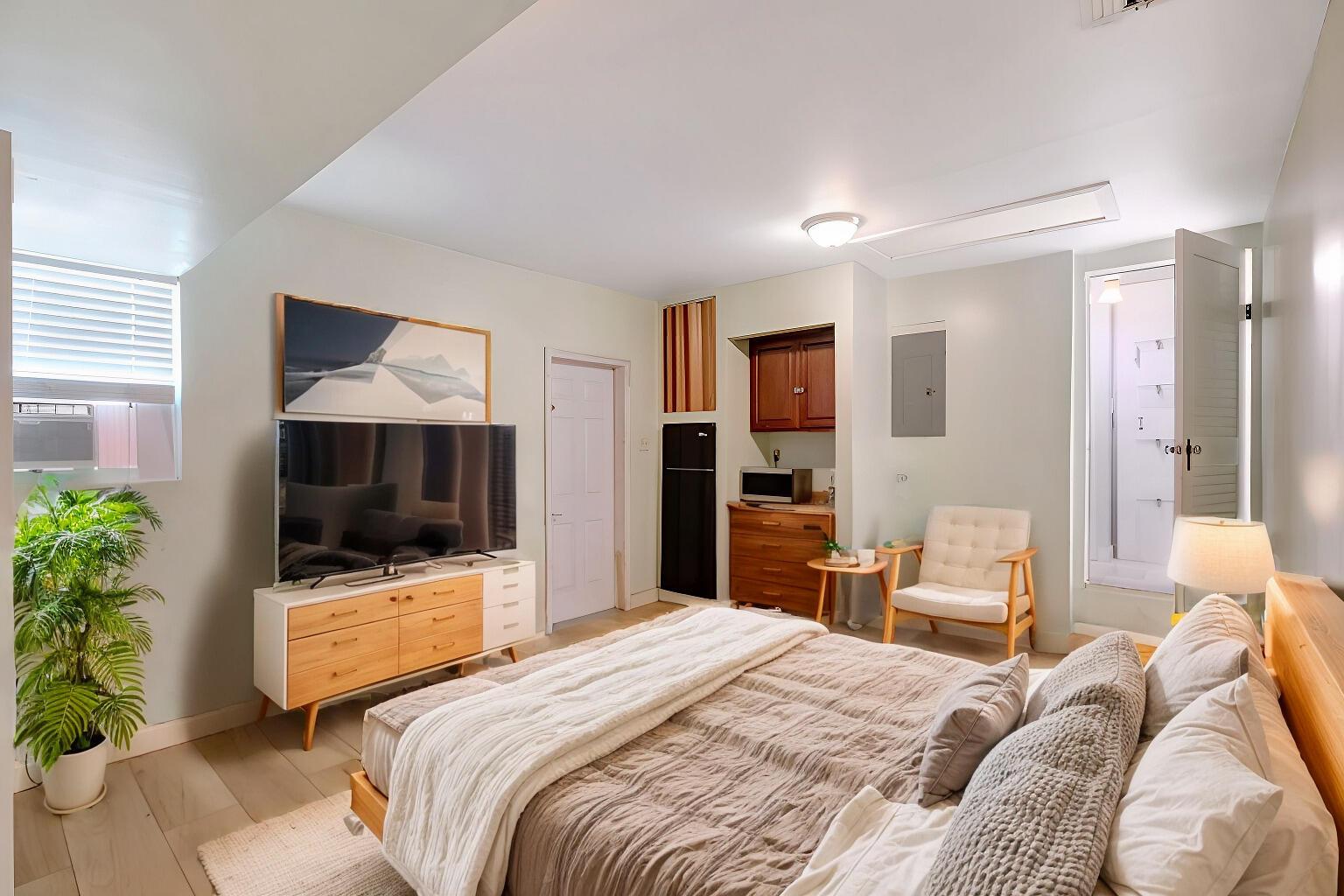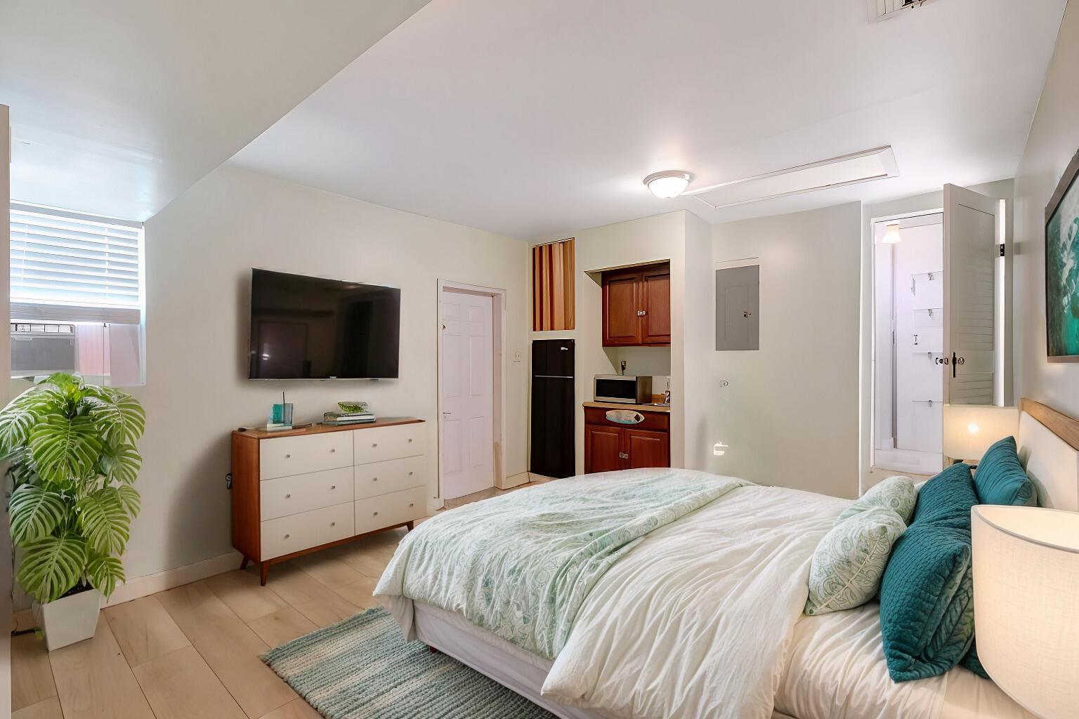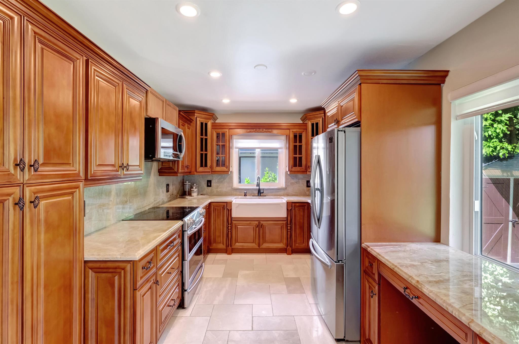 JUST REDUCED! MID CENT. MOD CORNER HOME, 3 BEDROOMS & 2 FULL BATHROOMS. FRESHLY PAINTED INTERIORGARAGE(SEPARATE EXTERIOR ENTRANCE CONVERTED TO THIRD BEDROOM WITH SINK & MINI FRIDGE & OWN WASHER & DRYER & FULL BATH)4 A TOTAL OF 1426 SQ. FT. UNDER AIR(REPLACED 2 YEARS AGO). ORIGINAL WOOD FLOORS THROUGHOUT EXCEPT FOR TILE & MARBLE IN BATHROOMS & KITCHEN FLOORS.ROOF IS BARREL TILE. HIGH GRADE SOUND DEADENING IMPACT WINDOWS THROUGHOUT HOME (2 YEARS). COMPLETELY FENCED IN SPACIOUS BACKYARD WITH CONCRETE PAD TO PARK YOUR BOAT or CAR. REMODELLED KITCHEN WITH CUSTOM CABINETRY, IMPORTED FARM SINK & BUILT IN DESK, QUARTZ COUNTERTOPS & 3 YEAR YOUNG STAINLESS STEEL APPLIANCES. DINING ROOM FEATURES CUSTOM 6 FOOT BUILTIN BAR WITH WINE FRIDGE. SECOND WASHER & DRYER AT OPPOSITE END OF HOME.