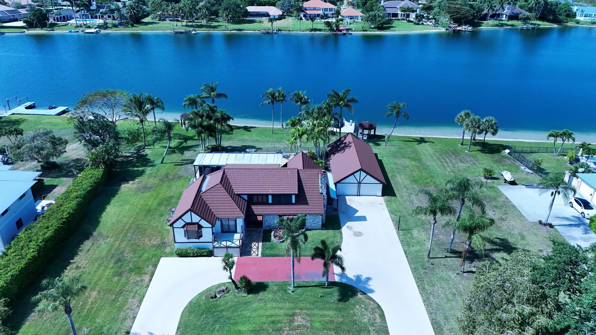 **PRICED TO SELL!!** Home was appraised at over $1.5! Prestigious Banyan Lakes home available! Experience waterfront luxury living in this gated tri-level home on a private ski lake in Palm Beach county. With 260 feet of waterfront, enjoy endless water activities from your 50 foot boat dock complete with an electric lift and twin gazebos. Indulge in water skiing on one of only 3 private ski lakes in the area. Featuring a free-form pool & marble deck, complemented by a hot tub overlooking the serene lake. A detached 4 car garage & expansive driveway provide ample space for vehicles or workshop needs. With a steel barrel tile roof & numerous amenities, this home is a must see for those seeking waterfront elegance!