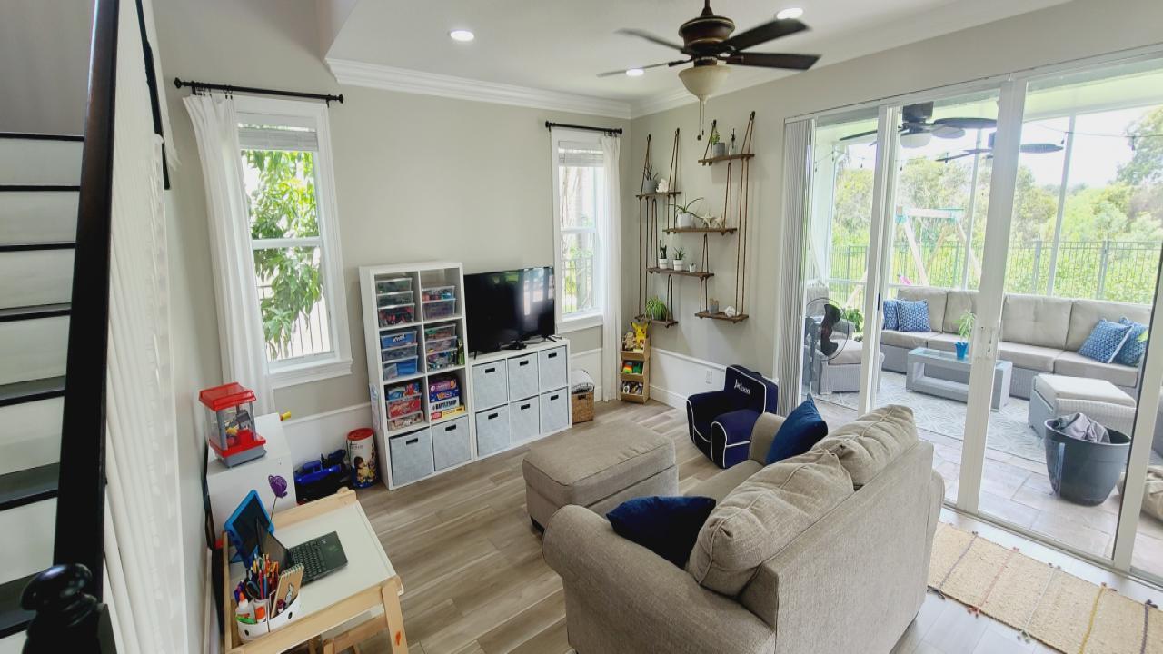 This beautiful 4-bedroom, 2.5-bathroom home with loft, 2 car garage and extended 3 car driveway is located in the highly desirable TownPark community of Tradition. The popular Berkeley 5 model, built by Minto, boasts an open floor plan with new luxury vinyl plank flooring throughout the first floor and a beautiful, newly renovated gourmet kitchen. Kitchen features quartz countertops, double oven, custom all wood cabinetry, SS appliances. The extended covered and screened patio features Italian pavers and TV hookup, for entertaining and enjoying the Florida lifestyle. Wood floors upstairs and newly installed carpet in bedrooms. Spacious master bedroom with large walk-in closet. Relax and unwind while watching your favorite show when soaking in the updated master bathroom.