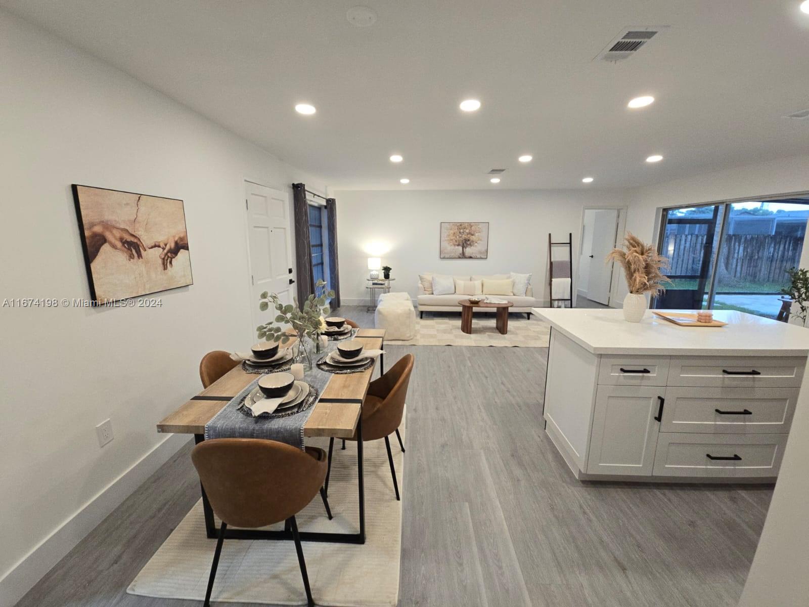 Amazing 2/2 single family home with pool and garage in perfect move-in condition ready for your family! Fully renovated. Modern kitchen with new shaker cabinets, modern island and stainless-steel appliances. Open layout, Luxury Waterproof Vinyl flooring. New Roof (2024). Covered patio, great backyard for entertainment. Desirable family-oriented neighborhood in West Sunrise with NO HOA. Conveniently located near the Sawgrass Expressway, Sawgrass Mills Mall and restaurants.