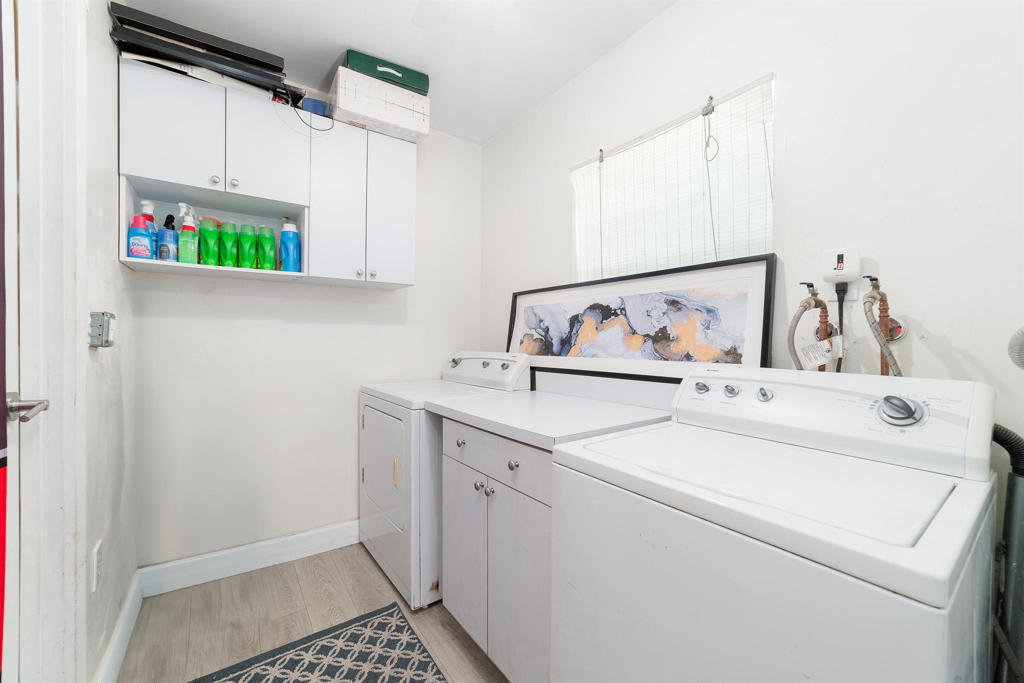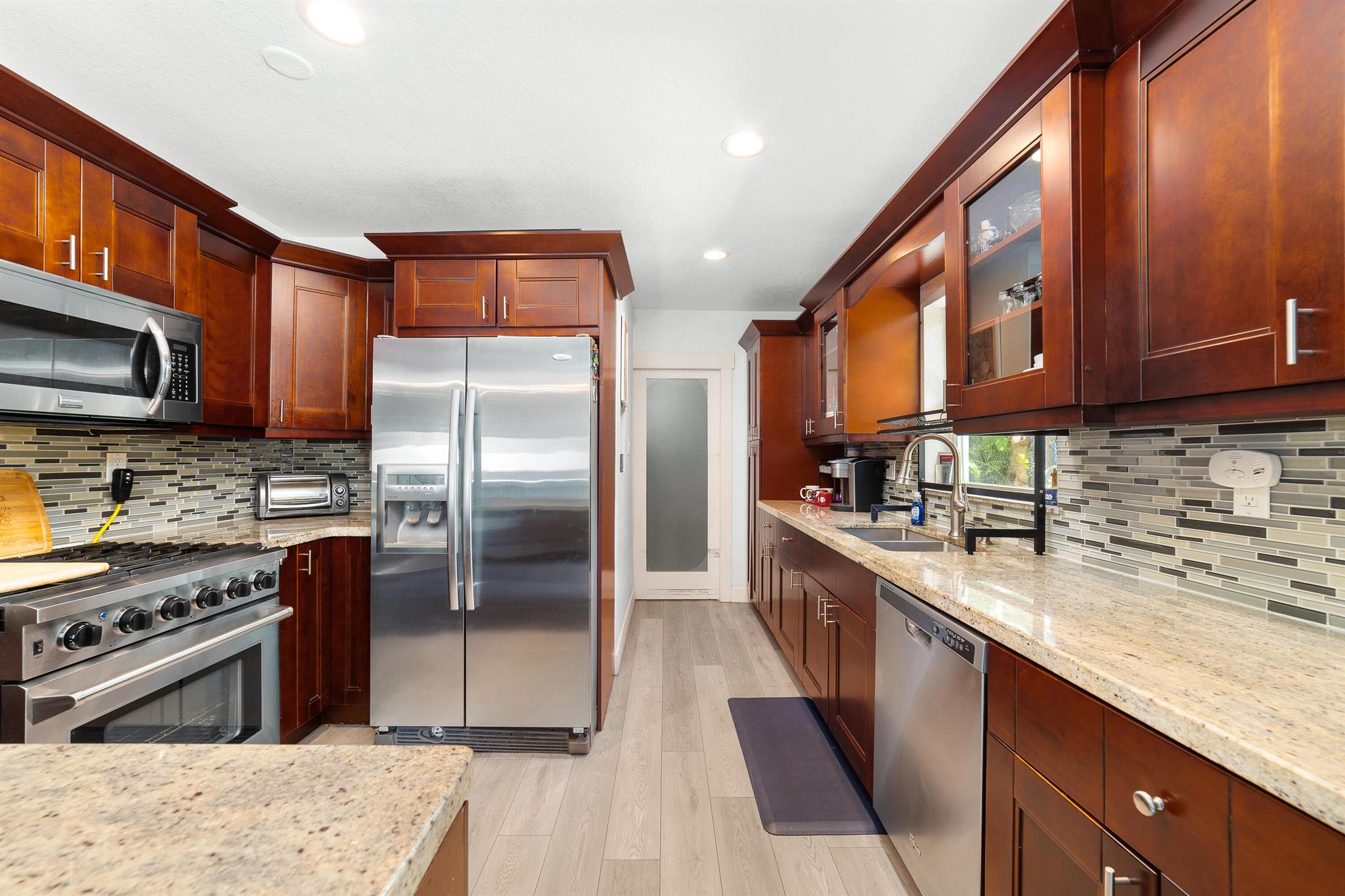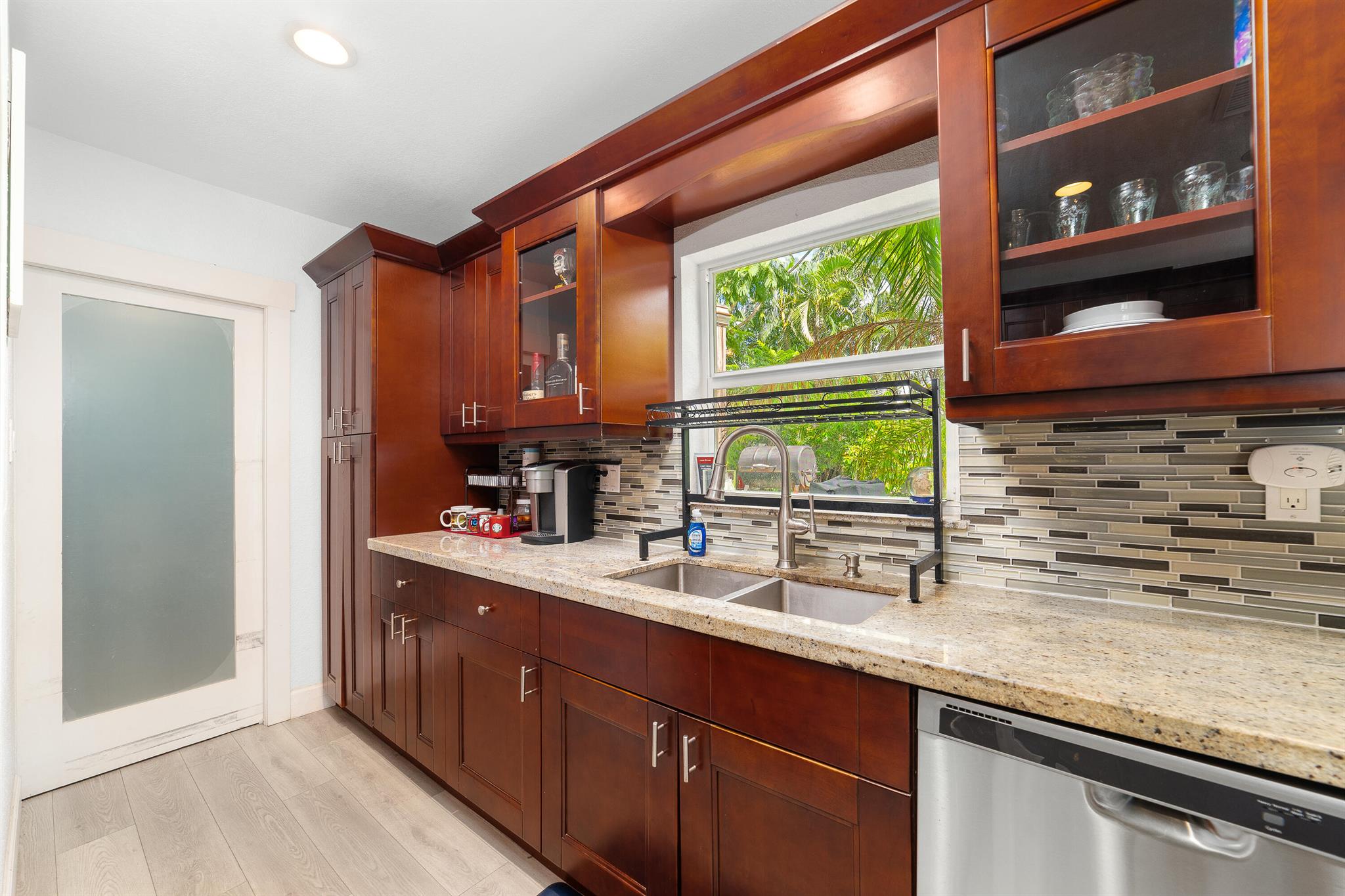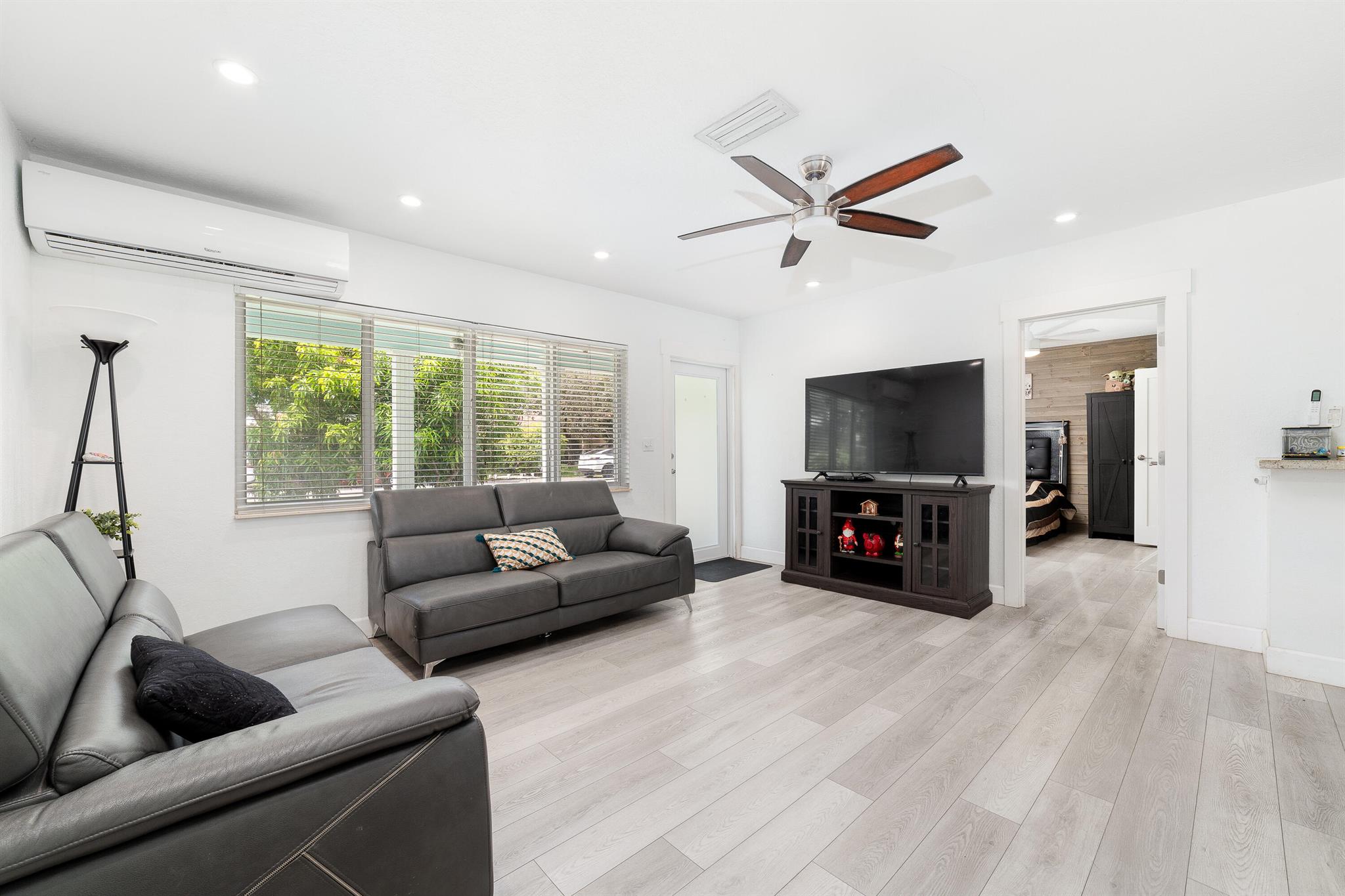 This stunning, fully renovated 3-bedroom, 2-bathroom home is located on a cul-de-sac. The home features an open floor plan, allowing an abundance of natural light. The gourmet kitchen showcases custom cherry cabinetry, granite countertops, a stylish tile backsplash, and all stainless steel appliances, including a double sink. The new custom vinyl flooring throughout the home adds a sleek and contemporary touch, while the separate laundry room adds convenience. Full impact doors and windows not only enhance the home's safety but also contribute to energy efficiency, helping reduce insurance and cooling costs. Home has central a/c and mini splits to further save energy!