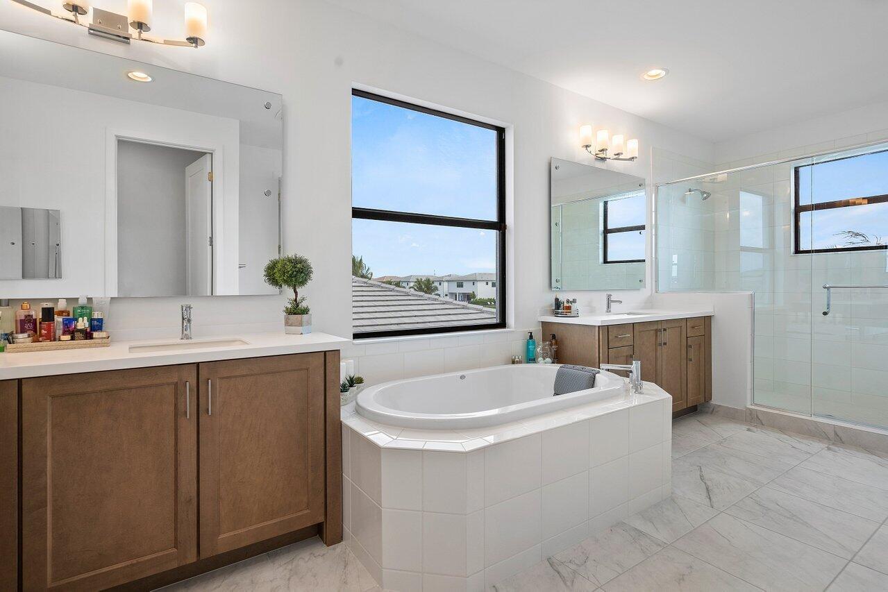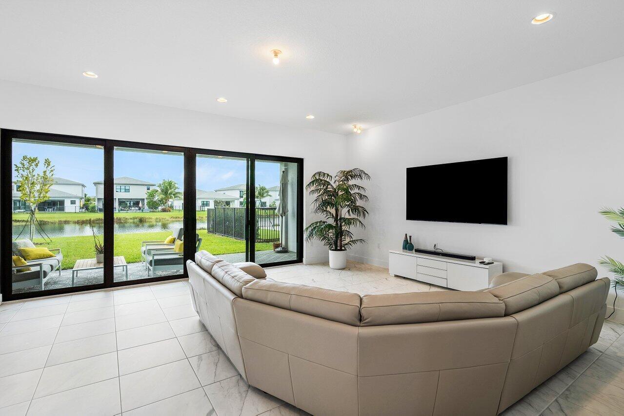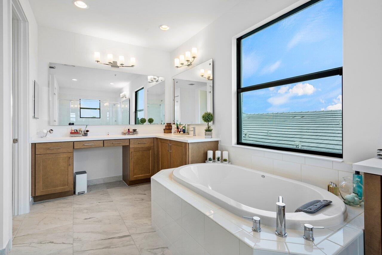 Gorgeous Lakefront 5 Bedroom home with loft in Lotus. This Spectacular Home is in Mint Condition & Ready for New Owners. Pulling Up Notice the Upgraded Elevation with Front Balcony. Entering the Home Notice the Modern Tile Flooring in all Living Areas. The Huge Formal Living Room is Prewired so it can be Used as a home Theater Room. The Massive Kitchen Boasts 42'' Wood Cabinets, Quartz Counters & S.S. Appliances. The Large Backyard Overlooks Sweeping Lake Views. Upstairs a Massive Loft Makes a Great Playroom/Den. The Large Master Suite with Balcony Overlooking the Lake has Two Large Walk In Closets & a Luxurious Master Bath. Two of the Guest Rooms include Private En Suite Baths. Whole House Water Filtration System. All in one of Boca Raton's Most Sought After 5 Star Resort Communities