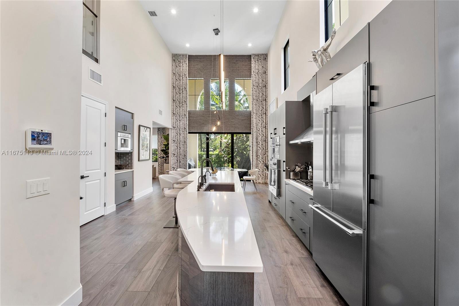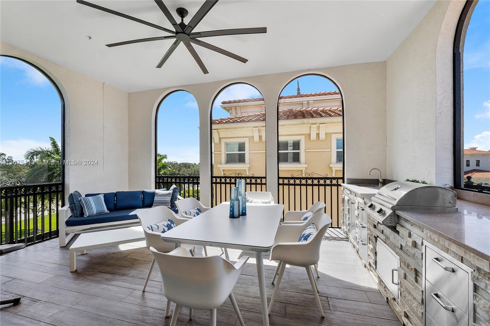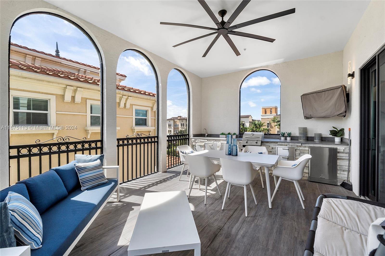 A very unique and rare to find completely remodeled move-in-ready townhouse end unit with high ceilings and very unique two bedroom 2 1/5 bathrooms with a sky patio loft screen patio and built in barbecue & 2 garage. Modern look with all brand new appliances, washer and dryer, lighting, plumbing, main flooring , master bath tiling, 4th floor patio flooring, backsplashes, powder room, wine room walls, high end window treatments, shades, bedding, shudders, garage reconstruct with epoxy flooring, texture walls and ceilings, cabinetry, cabinet knobs, glass railing, closets, framing drywall, finishing work and texture, closets & built in drawers in master bedroom. Gated community with state of the art amenities, club house & located within minutes of Sawgrass mall, shopping centers and schools.
