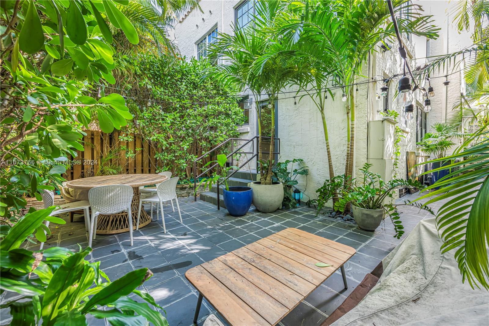 Welcome to your dream Oasis! This stunning Mediterranean townhome is a true gem, featuring a private entrance and a serene butterfly garden. With 1,380 square feet of thoughtfully renovated living space, this home boasts 10-foot high ceilings that create an airy, inviting atmosphere. The ground floor features a cozy living room with a fireplace, a separate dining room, a well-appointed kitchen, and a convenient half bath, all adorned with beautiful hardwood floors. Upstairs, you’ll find two spacious bedrooms, two marble baths and a generous walk-in closet. The outdoor area is perfect for entertaining with ample space for BBQs and room for a Jacuzzi. Located a short walk from the beach, south of Flamingo Park, and within easy reach of shopping and dining.