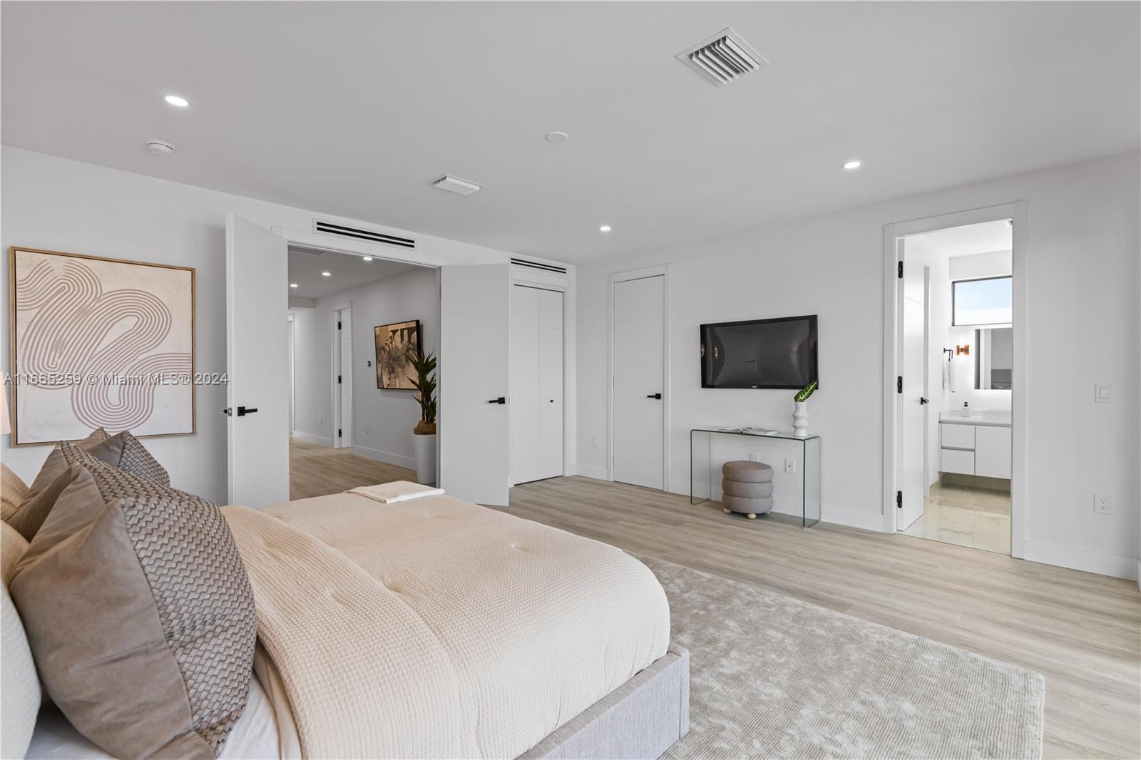 Discover modern elegance in Coral Ridge. This home features 4 bedrooms, 4 bathrooms, high ceilings, and an open concept living area that flows seamlessly into the terrace, thanks to multitrack sliding doors that create an extended indoor-outdoor space. Enjoy porcelain flooring, quartz countertops, custom solid wood doors, and a kitchen with state-of-the-art appliances. Designed with entertaining in mind, the home has an oversized rooftop terrace equipped with a summer kitchen and provisions for a jacuzzi installation. Additional amenities include a private pool, a security system, and ample parking with a double garage and four-car driveway. Panoramic views, along with relaxing balcony and deck areas for unwinding and enjoying the serene surroundings.