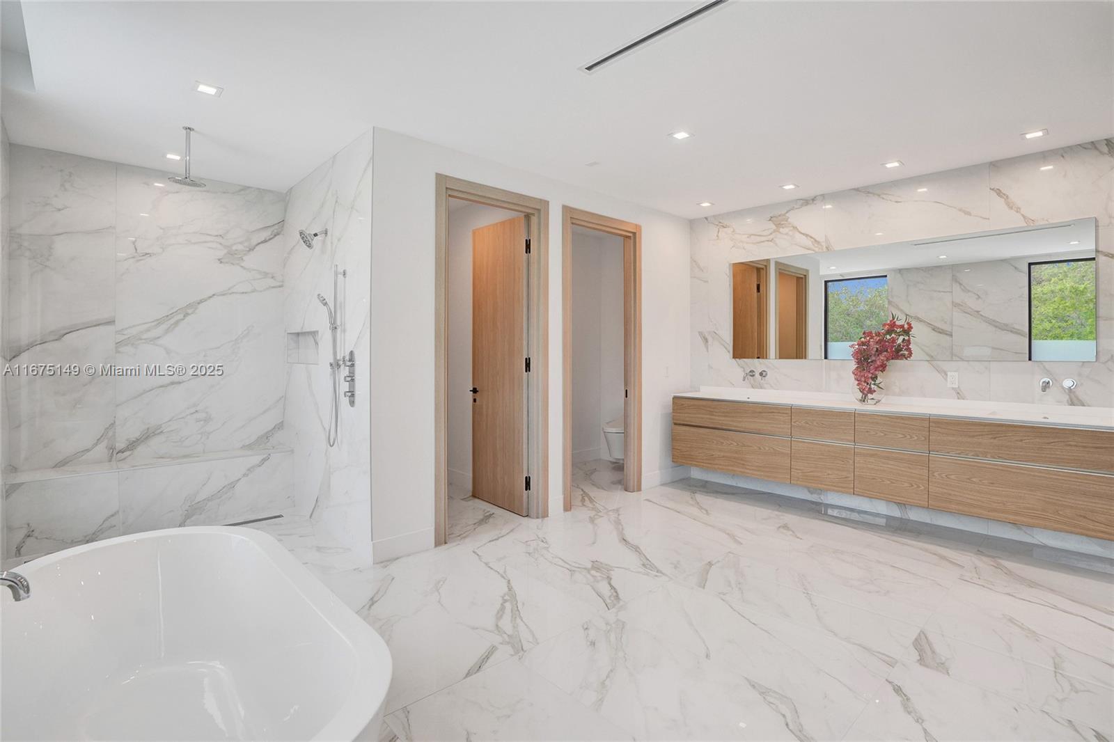 Contruction Just Finished! Stunning modern home in prestigious Pinecrest, on a lushly landscaped 35,370 sq ft lot. This architectural gem features floor-to-ceiling windows, seamlessly integrating interior and exterior spaces. With a total 10,356 sq ft of luxurious living, it includes 7 bedrooms, 8.5 baths, 3-car garage, gym, den. A breathtaking entry with a floating staircase over a sleek interior garden. The double-height great room with luxurious wine cellar and bar overlooks a tranquil water feature, leading to an outdoor entertaining area. The open gourmet kitchen, equipped with top-of-the-line appliances, flows into an expansive family room. A spacious covered terrace with a fully equipped outdoor kitchen overlooking the pool, spa, and lush backyard make it perfect for entertaining.