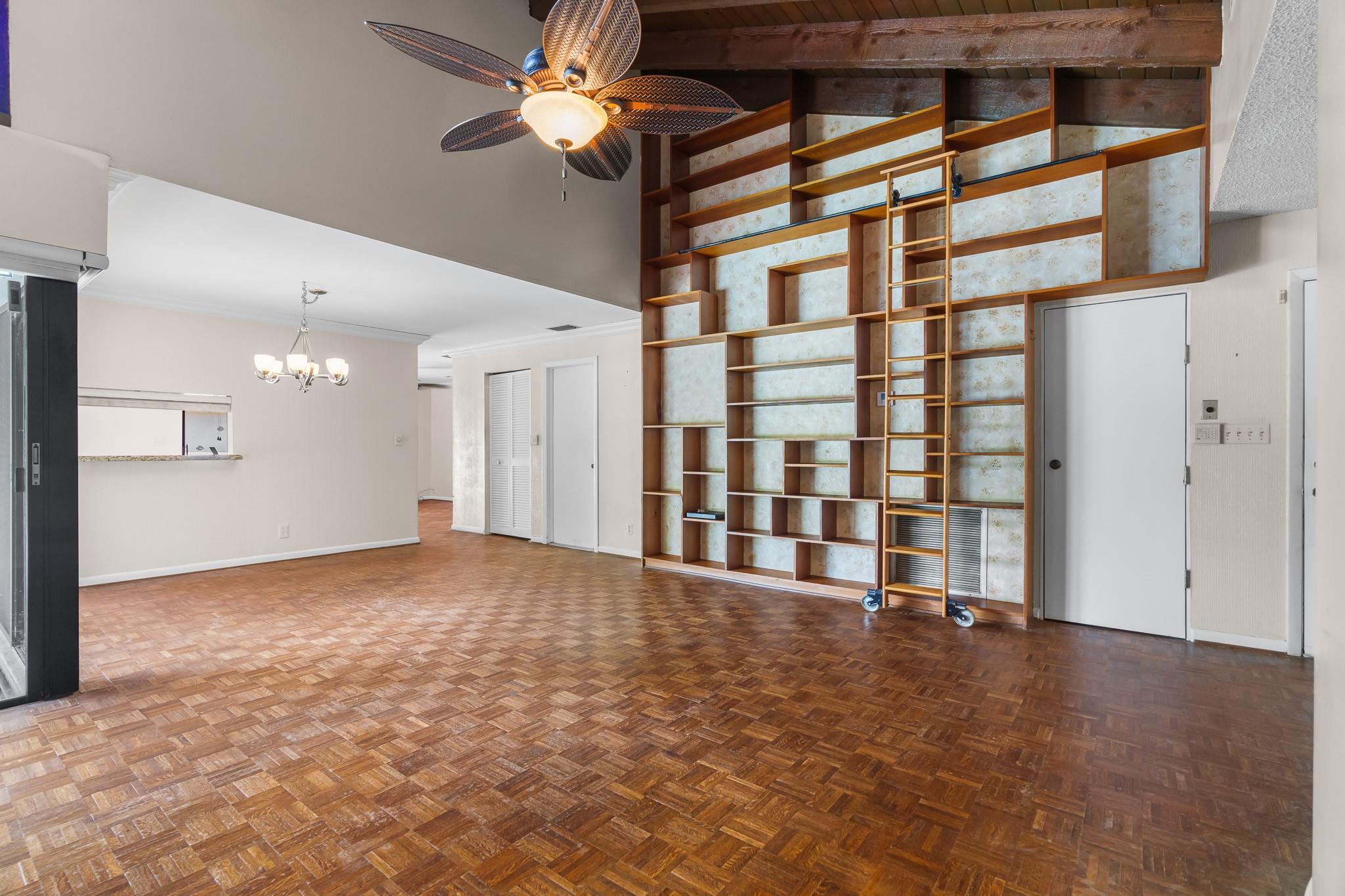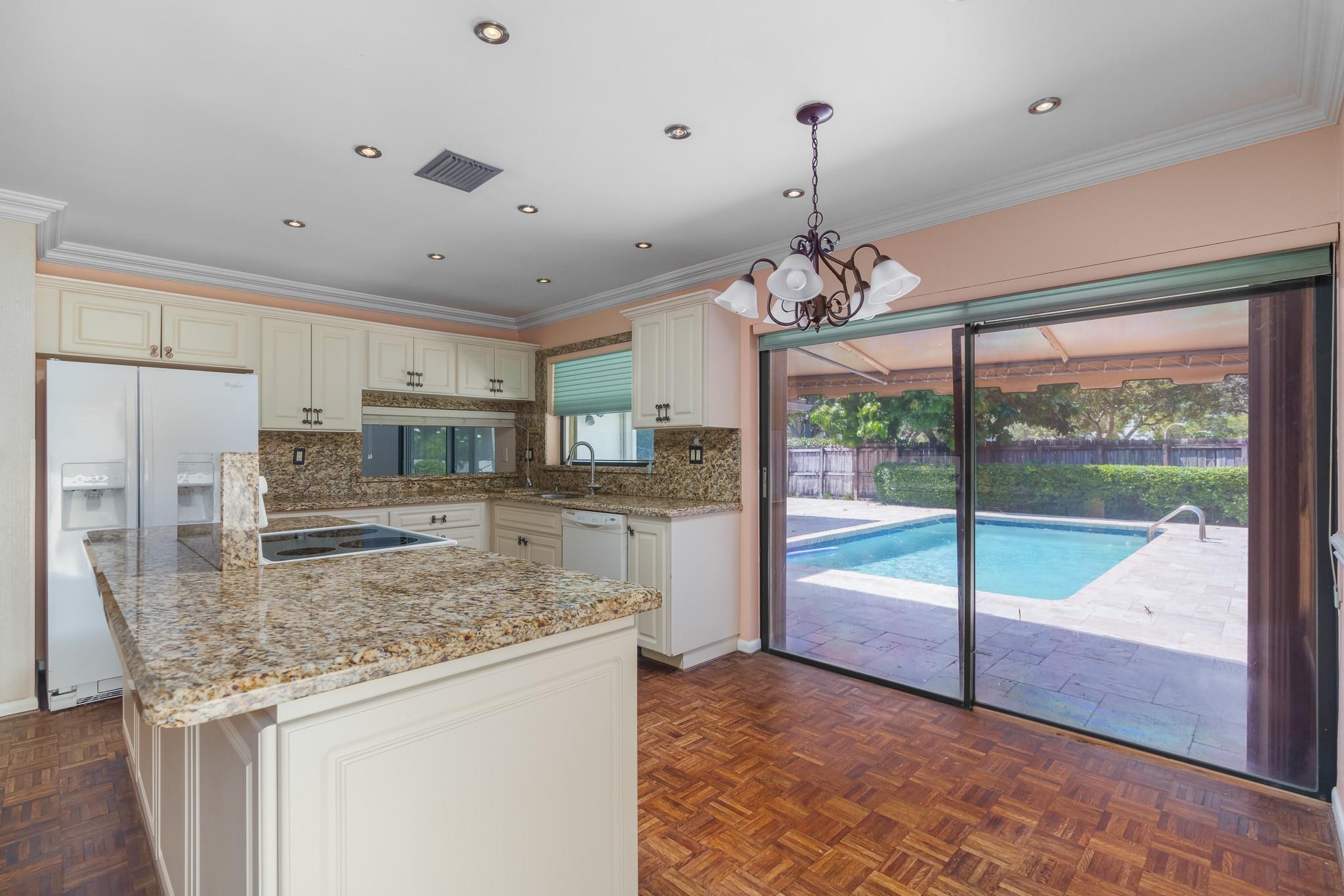 Rarely available 3 bed/2.5 bath home located in sought after Woods of Emerald Hills. This home features an oversized 2 car garage w/ potential to convert part of it into an additional bedroom while maintaining storage space. The fenced backyard offers privacy w/ a pool on an oversized lot, complete with storage shed. Tons of natural light from windows & 5 sets of sliding doors all protected by accordion storm shutters. Kitchen features white cabinets & granite countertops. The living room showcases custom built-in shelves w/ a sliding ladder & vaulted exposed wood beam ceilings. Ample storage including linens, pantry, numerous closets w/ built-ins & a primary suite w/ reach-in & walk-in closets. A/C (2021). Conveniently located near houses of worship, restaurants, highways and shopping.