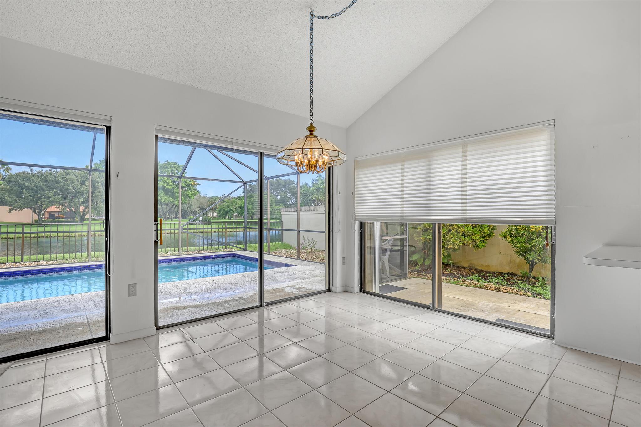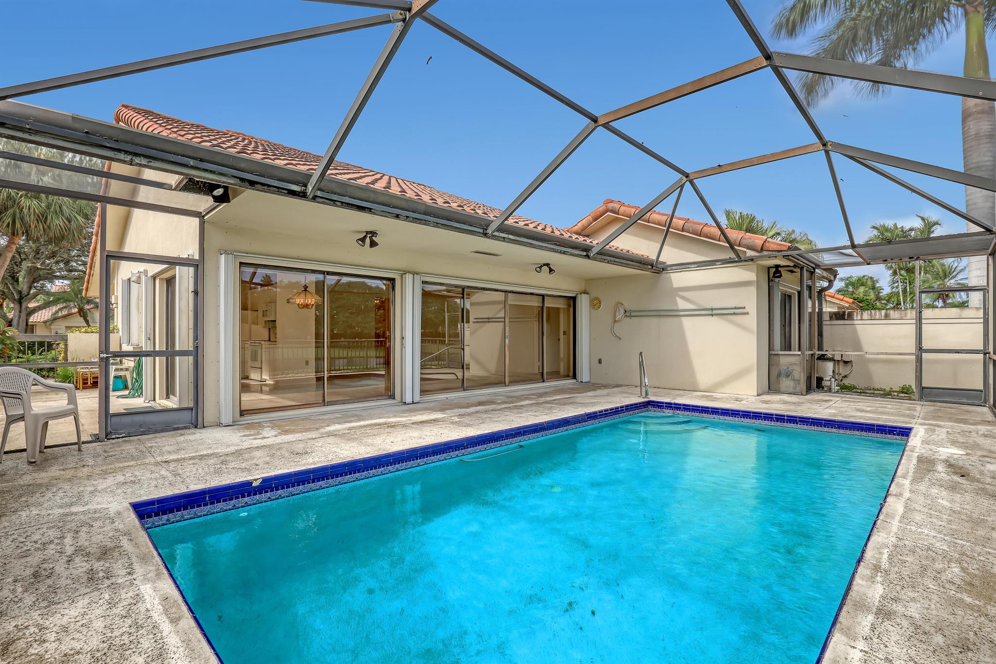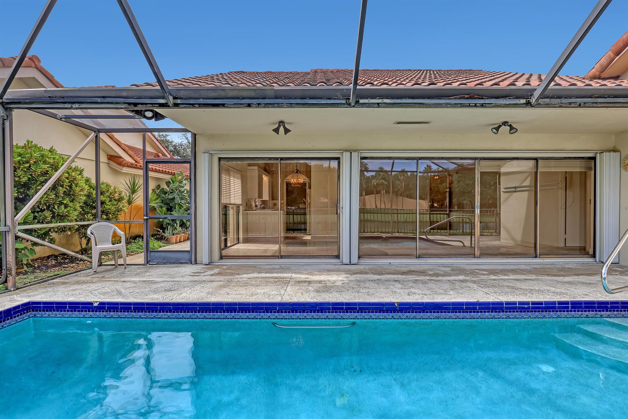 WELL SOUGHT AFTER Burg & DiVosta built ''POOL HOME WITH WATERVIEW'' located within the SARATOGA POINTE Community. Features include; 3 bedroom / 2 bath / 2 car garage, SCREENED POOL ENCLOSURE with STUNNING VIEW OF WATER, PRIVATE POOL and PARK, vaulted ceilings, split floor plan, primary ensuite offers spacious bath, large walk-in shower, roman tub, ample closets, walk-in closet, guest bedroom has a loft, laundry room, accordion hurricane shutters. COMMUNITY AMMENITIES INCLUDE; Community Pools, Tennis & Pickleball Courts, Playgrounds, Fitness Trail, and more. HOA requires one year of ownership prior to leasing. Original owner, great potential, can close quickly upon HOA approval.