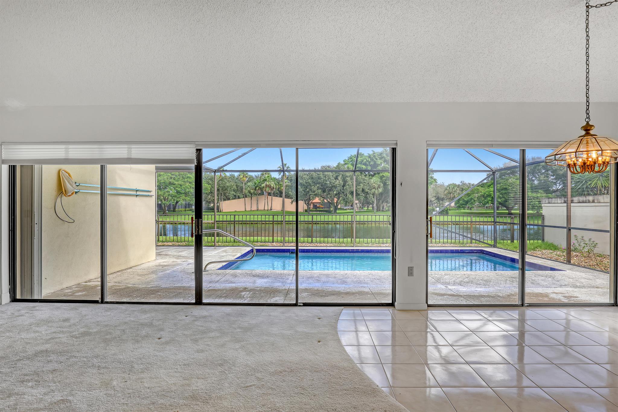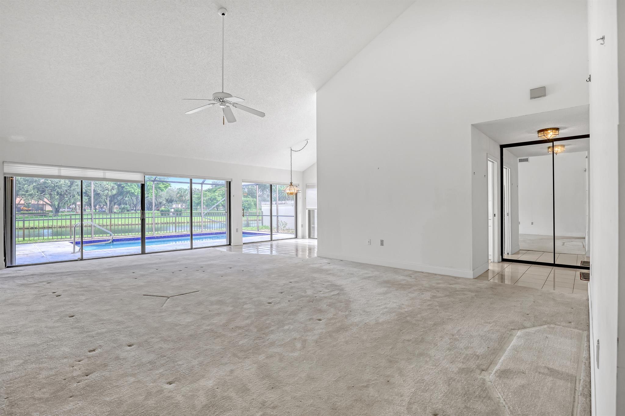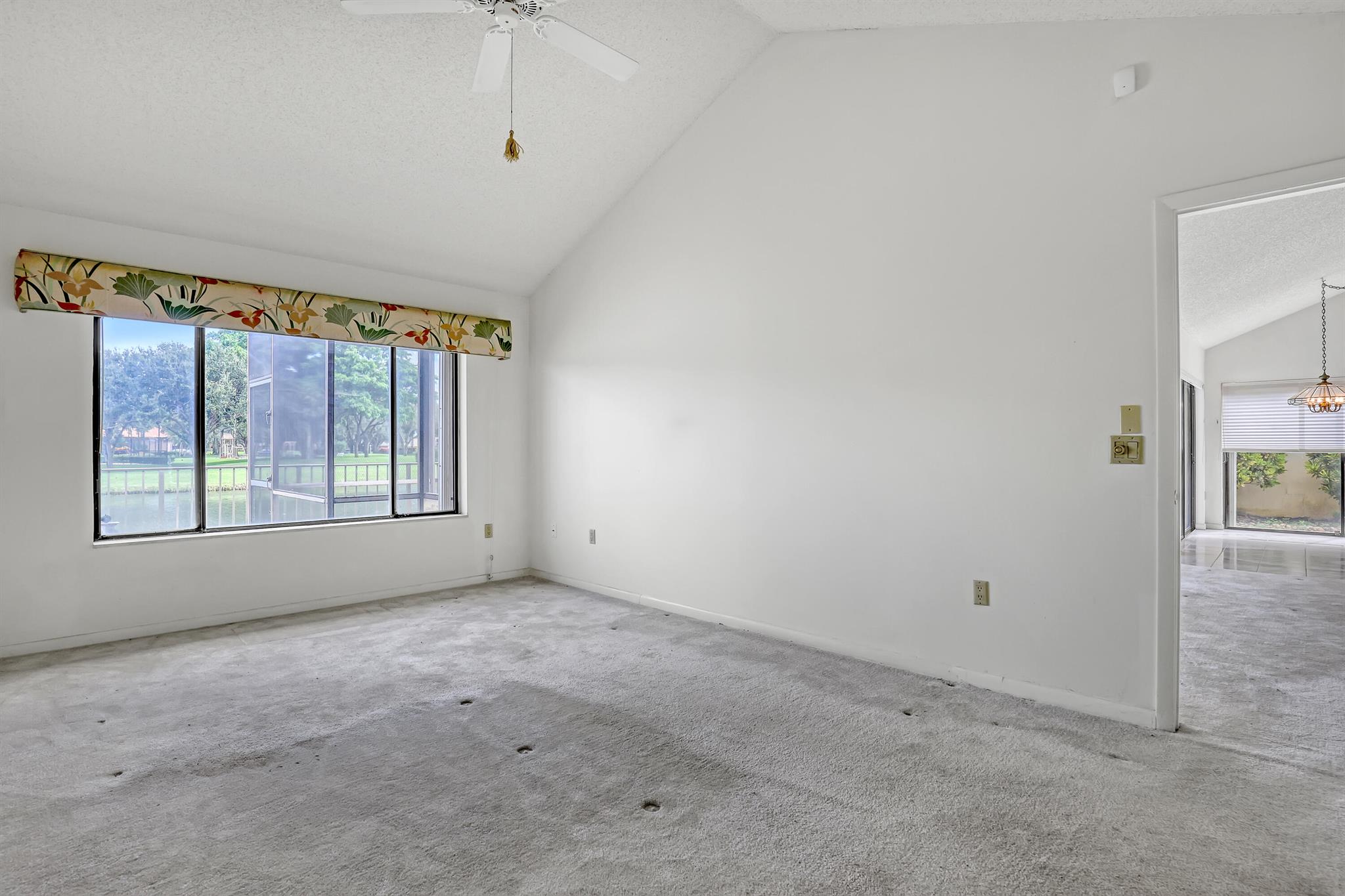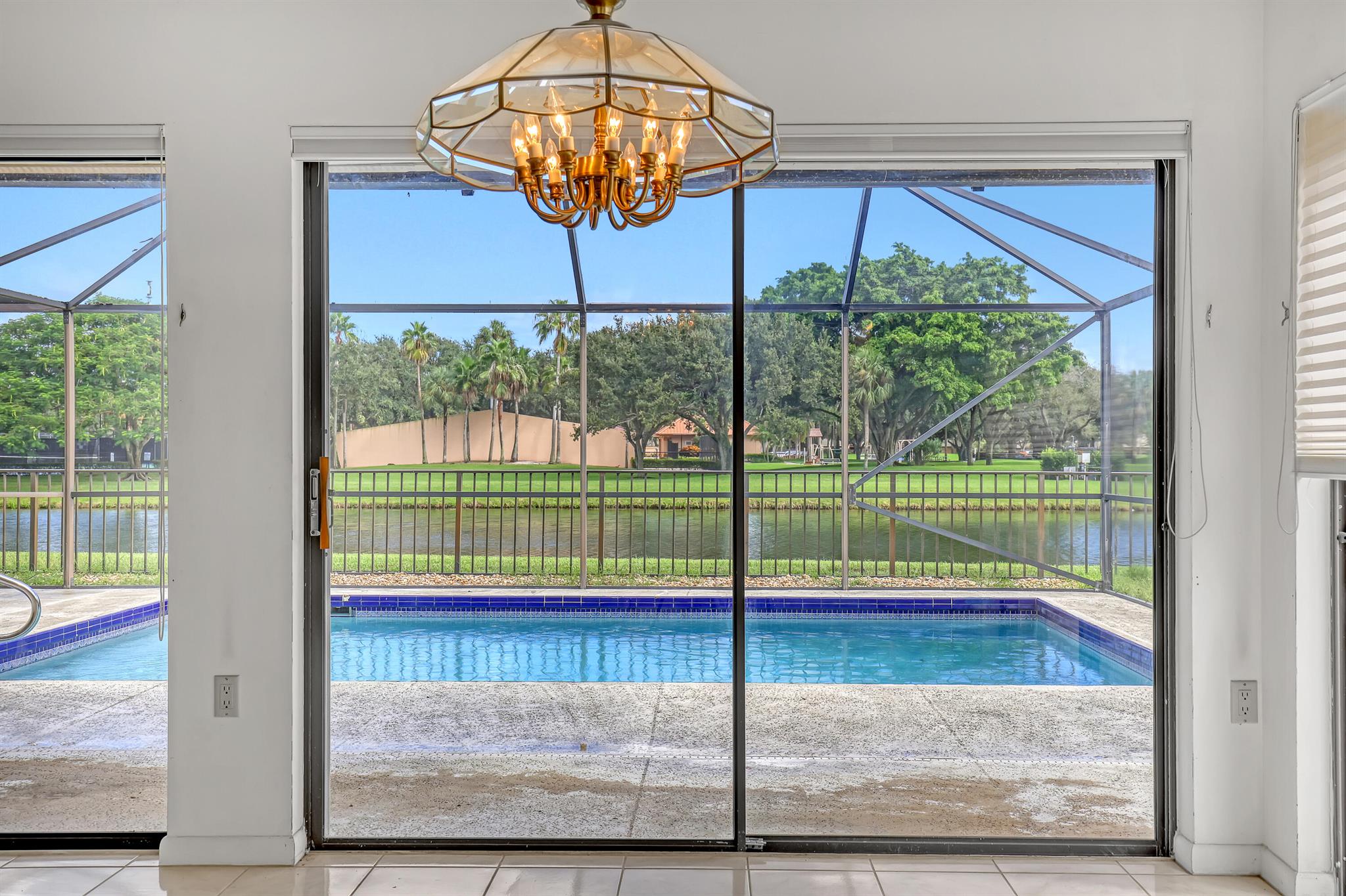 WELL SOUGHT AFTER Burg & DiVosta built ''POOL HOME WITH WATERVIEW'' located within the SARATOGA POINTE Community. Features include; 3 bedroom / 2 bath / 2 car garage, SCREENED POOL ENCLOSURE with STUNNING VIEW OF WATER, PRIVATE POOL and PARK, vaulted ceilings, split floor plan, primary ensuite offers spacious bath, large walk-in shower, roman tub, ample closets, walk-in closet, guest bedroom has a loft, laundry room, accordion hurricane shutters. COMMUNITY AMMENITIES INCLUDE; Community Pools, Tennis & Pickleball Courts, Playgrounds, Fitness Trail, and more. HOA requires one year of ownership prior to leasing. Original owner, great potential, can close quickly upon HOA approval.