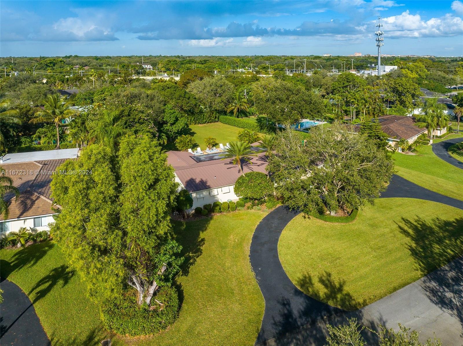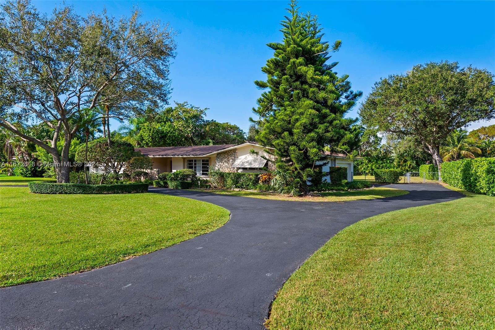 Builder's acre! Luscious foliage, mango trees, etc. Updated electrical, plumbing, and aluminum roof (another 50 years). Interior of home is not updated, but in immacualte condition. 5BD/3BA ranch house, with functional split floor plan. Interior 2,755 sf, with total area reaching 3,272 square feet. French doors open to a truly gorgeous spanish tiled patio, with oversized sparkling pool. The backyard is vast, and can easily accomodate a guest/pool home, tennis courts, or expansion of current living quarters and is ideal for entertaining. 2 car garage, separate laundry room, huge circular driveway, plus replaced aluminum roof. Walk to the top rated Palmetto and private schools. Not in a flood zone. Prime Land!!!
