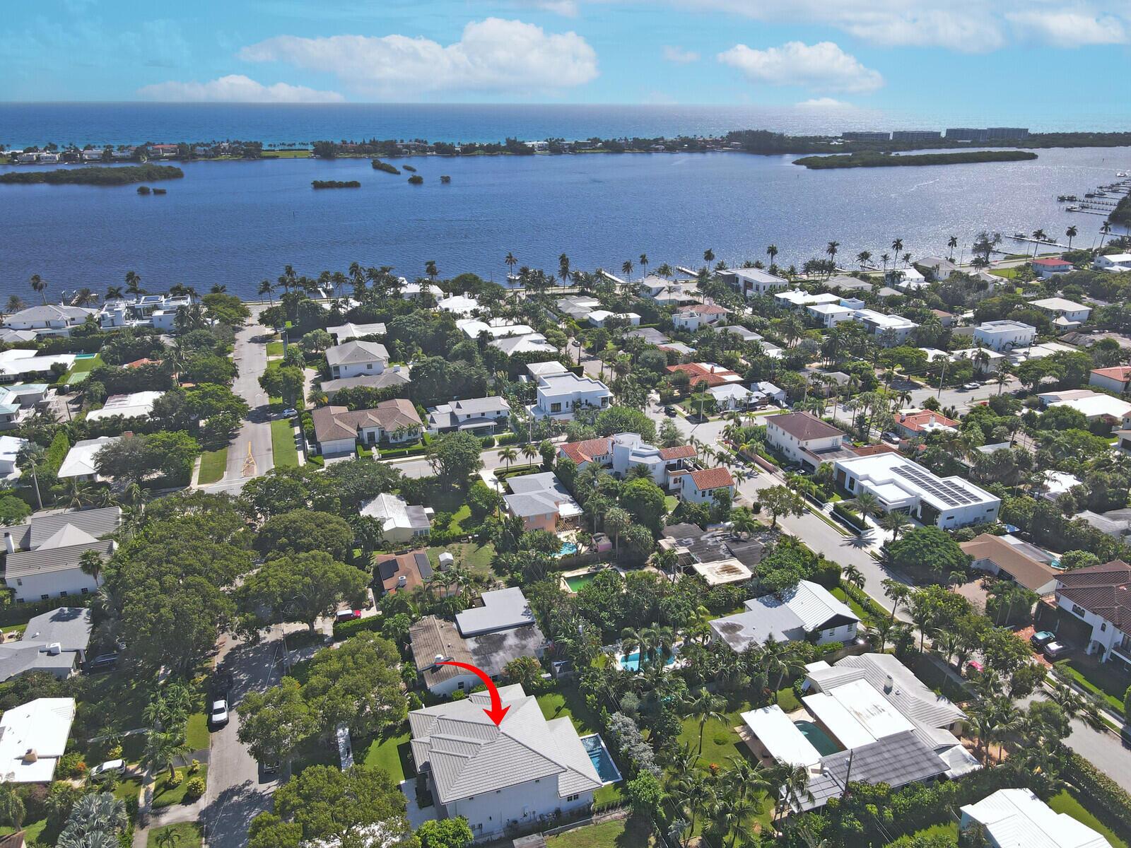 Introducing your dream residence: custom built 4 bedroom, 4.5 bath home nestled on a tree lined street East of Olive and only 8 home sites from the Intracoastal Waterway in the highly desirable Soso district. Crafted with meticulous attention to detail, this dream oasis boasts high end finishes and luxurious touches throughout. Step into the heart of the home, where you will be enamored with the custom kitchen cabinetry, state of the art Monogram appliances, and ample space for entertaining. Ensure your favorite vintages are perfectly chilled in the temperature controlled wine fridge. The spacious living areas are adorned with wood floors and custom millwork bringing warmth and elegance to the space.
