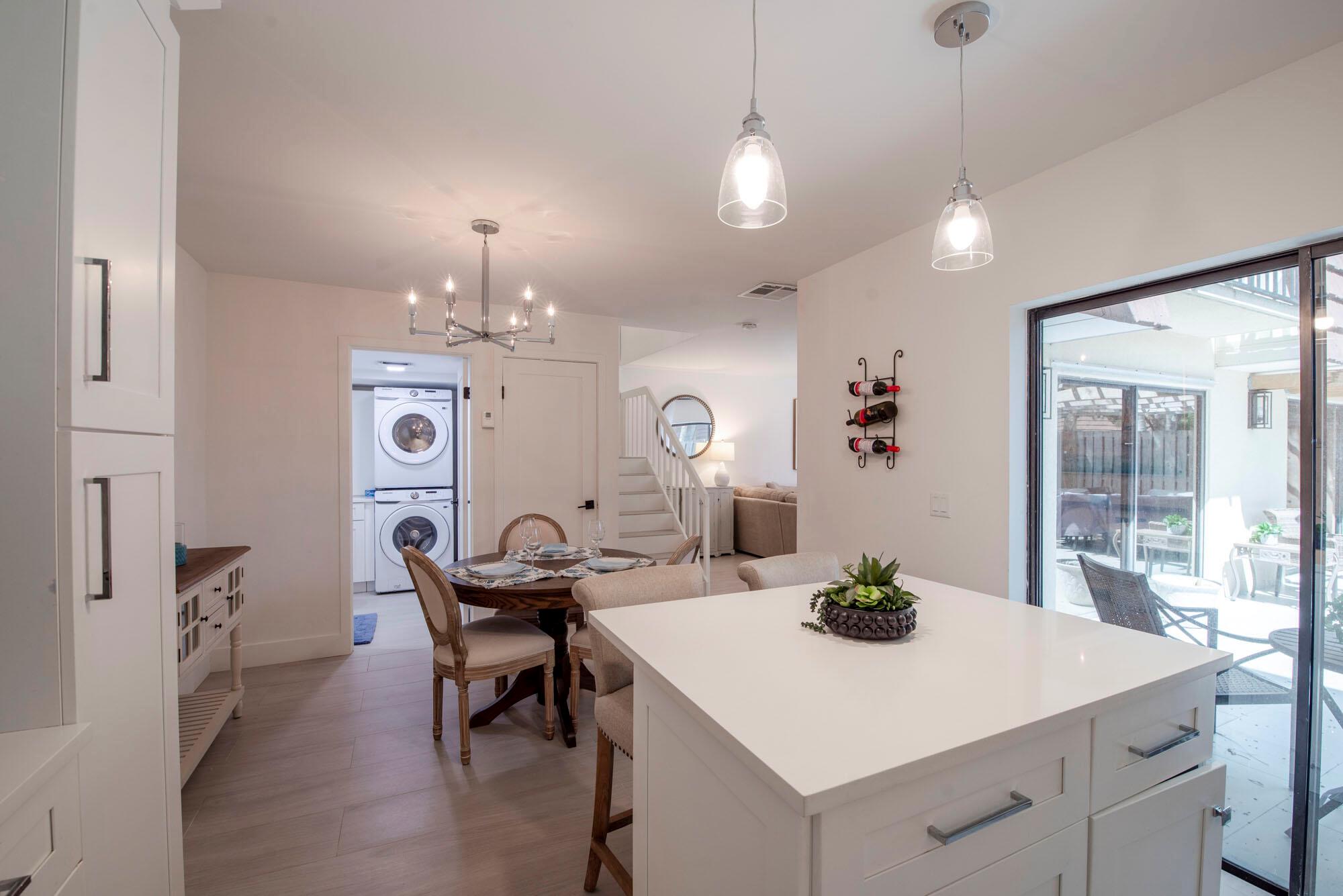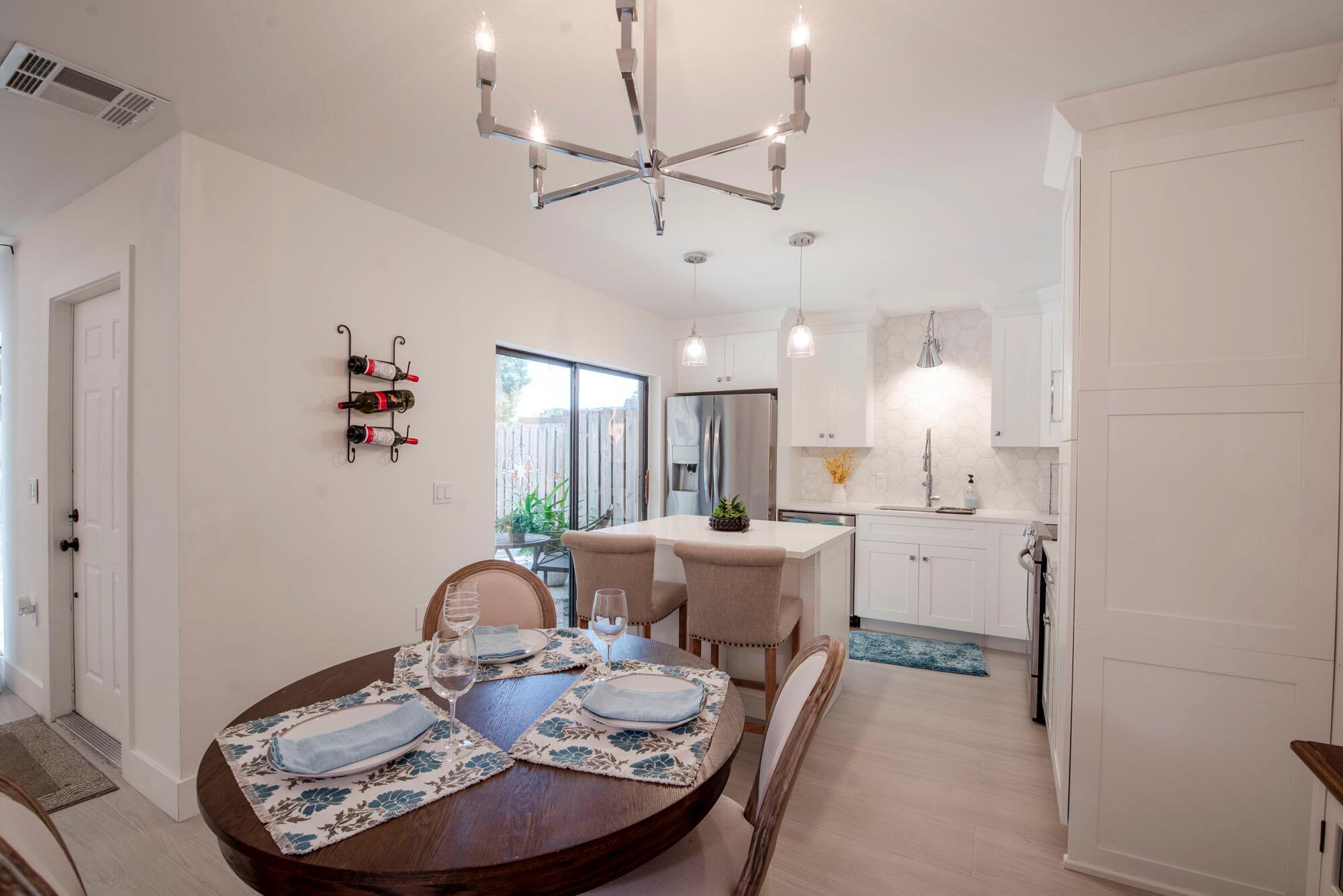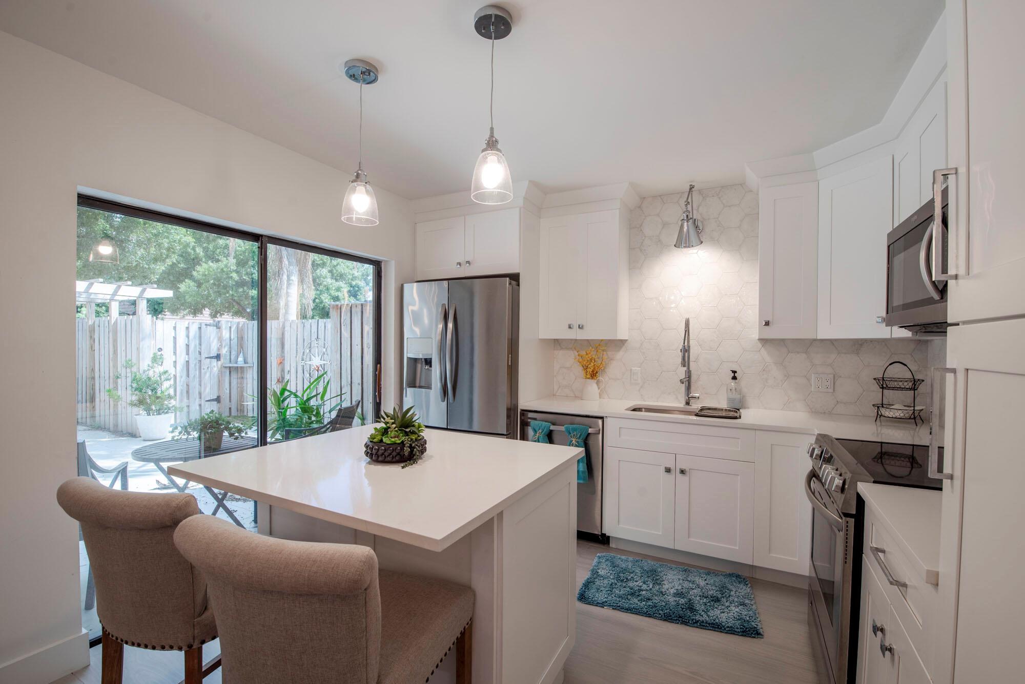 New Roof Coming April 2025! Welcome to the most elegant unit in Garden Lakes. No expense has been spared in updating this stunning 3 bed, 2.5 bath unit into a truly luxurious townhome, featuring imported Spanish tile floors, 3cm quartz countertops, completely remodeled custom kitchen, solid wood doors, high end light fixtures, brand new stainless steel appliances, and custom millwork detailing throughout. The primary suite and upstairs guest bedroom each have their own private balconies, while both remarkably renovated full baths feature expansive double sink vanities. Large floor to ceiling windows offer tons of natural light throughout and views of the private patio, complete with new tile and pet turf. Tucked away in the quiet community of Garden Lakes,