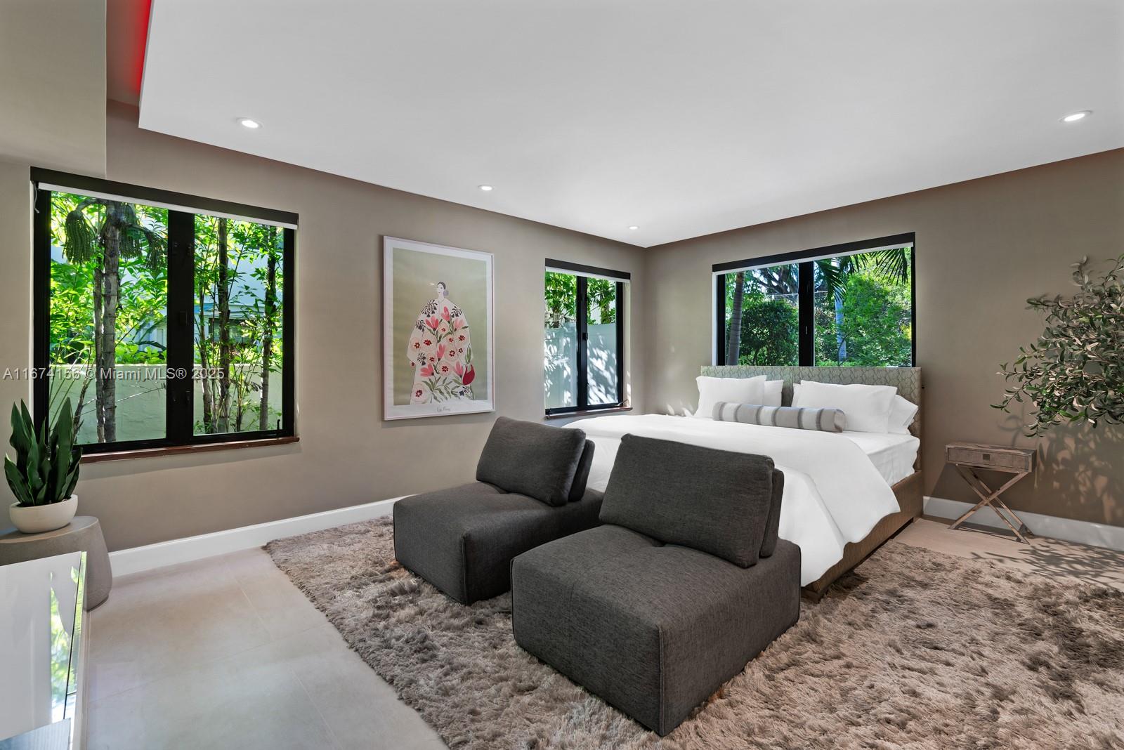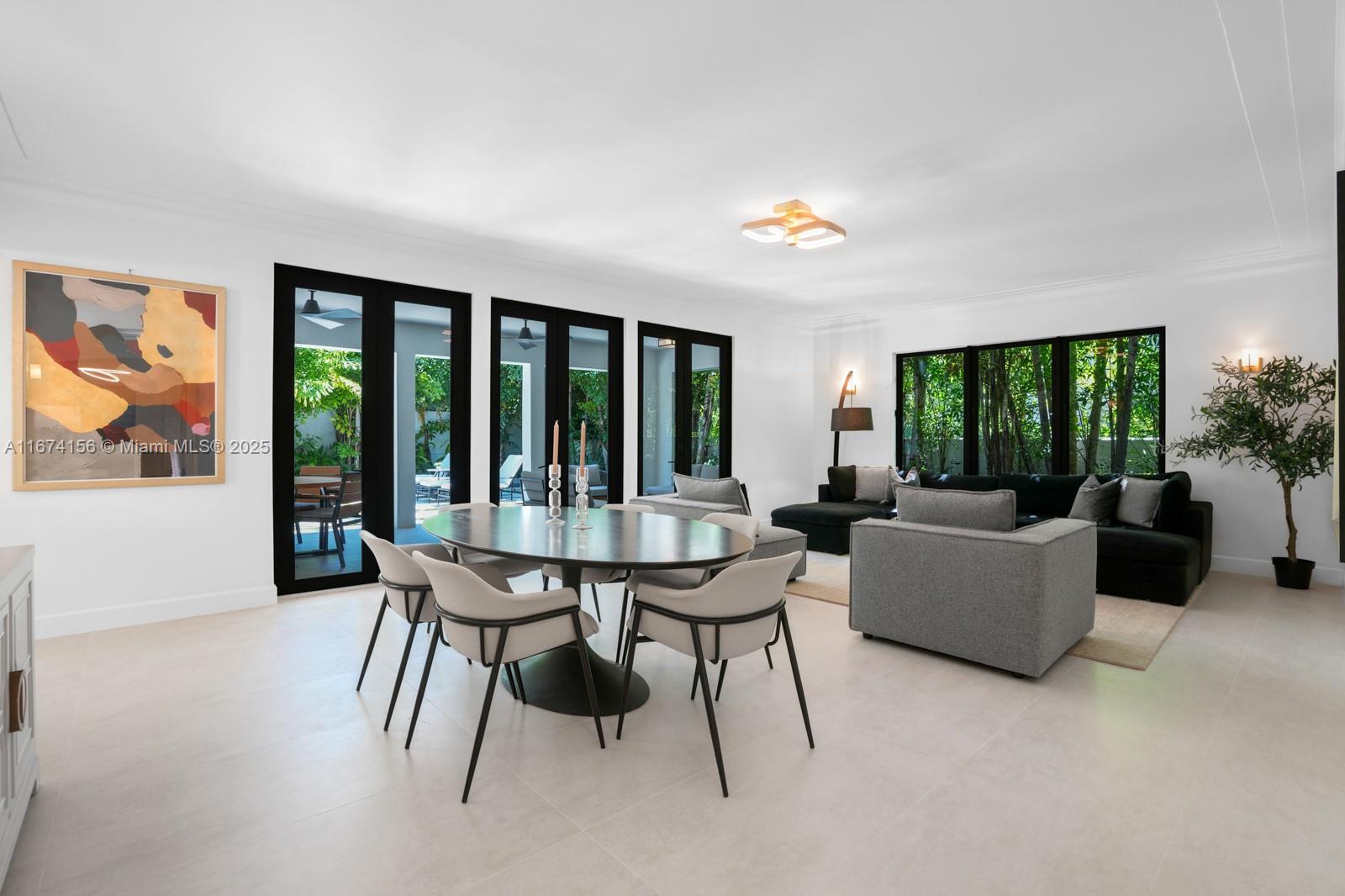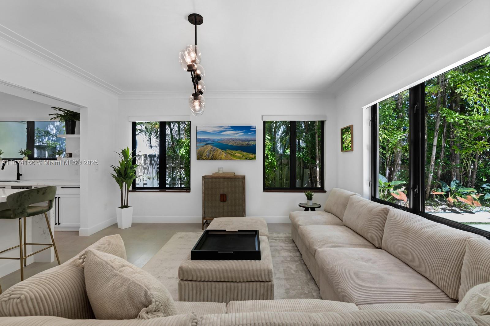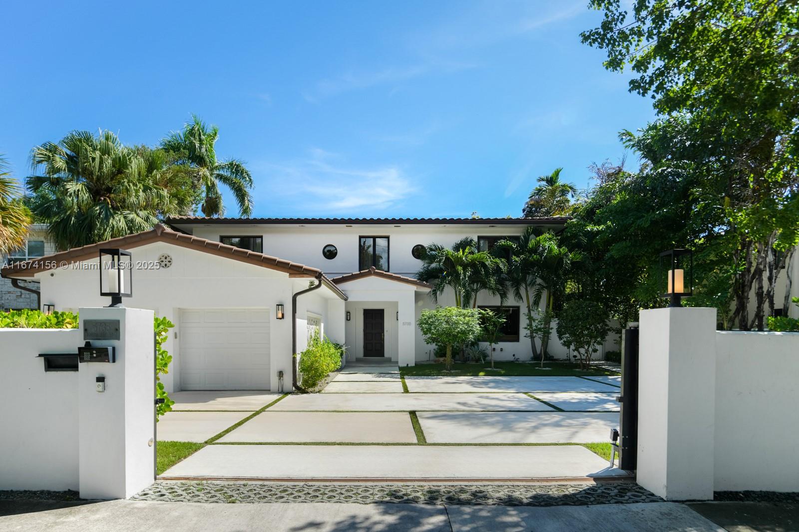Step Inside With Me! This exquisite Mediterranean restoration is nestled on prestigious Upper North Bay Road, offering privacy and modern luxury. Behind the walled gate, you’ll find a spacious, family-friendly home featuring 5-bed/5-baths. The gourmet kitchen boasts Corian countertops, a large island with a Viking 6-burner gas stovetop, and opens to a sunlit TV room. The primary suite offers a walk-in closet, dual vanities, an oversized tub, and a cozy sitting/office nook. Outside, the lush, tropical backyard invites you to entertain on the expansive covered patio or relax in the heated saltwater pool. With hurricane impact windows, doors, and a 2-car AC garage plus ample parking, this home truly stands out.