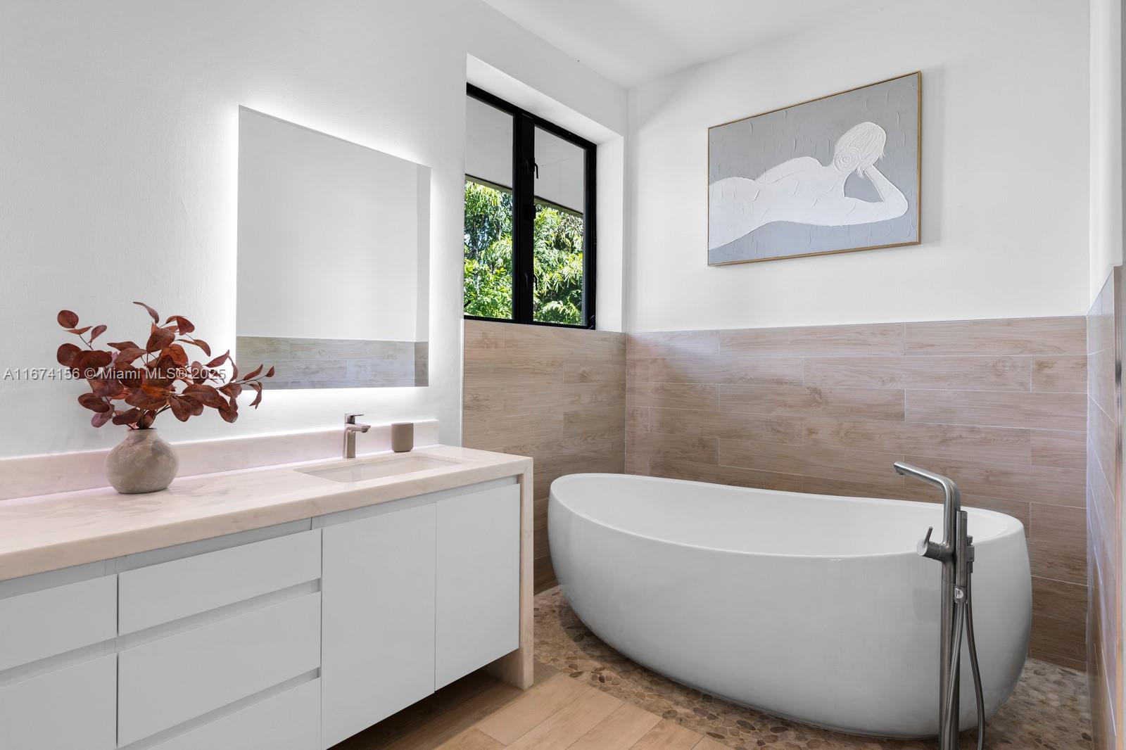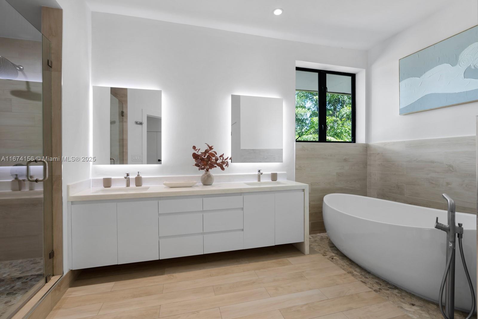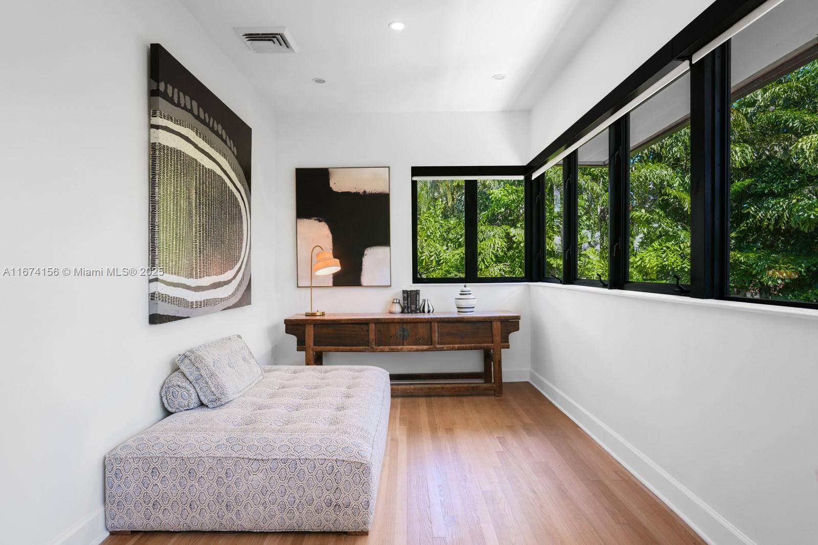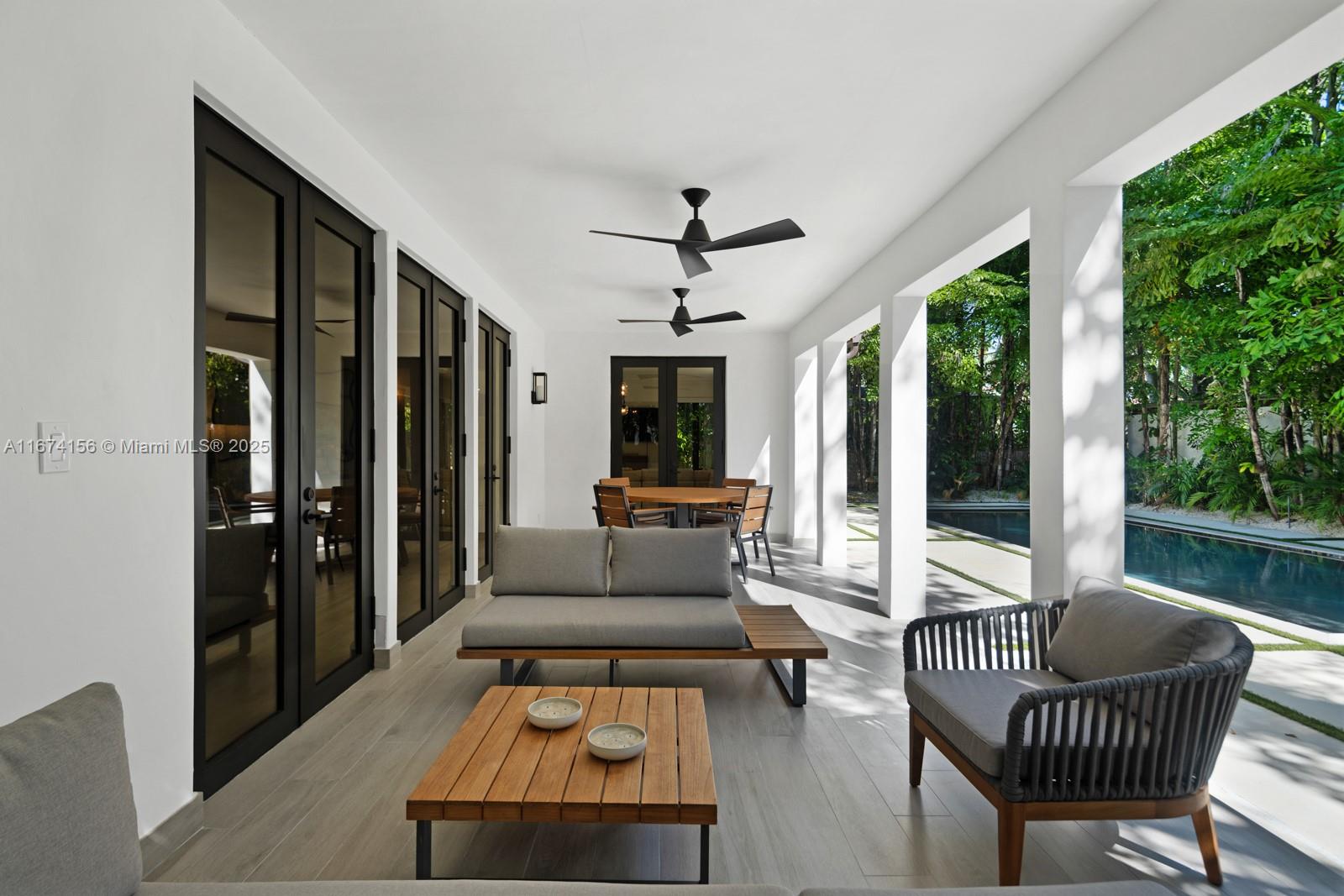 Step Inside With Me! This exquisite Mediterranean restoration is nestled on prestigious Upper North Bay Road, offering privacy and modern luxury. Behind the walled gate, you’ll find a spacious, family-friendly home featuring 5-bed/5-baths. The gourmet kitchen boasts Corian countertops, a large island with a Viking 6-burner gas stovetop, and opens to a sunlit TV room. The primary suite offers a walk-in closet, dual vanities, an oversized tub, and a cozy sitting/office nook. Outside, the lush, tropical backyard invites you to entertain on the expansive covered patio or relax in the heated saltwater pool. With hurricane impact windows, doors, and a 2-car AC garage plus ample parking, this home truly stands out.