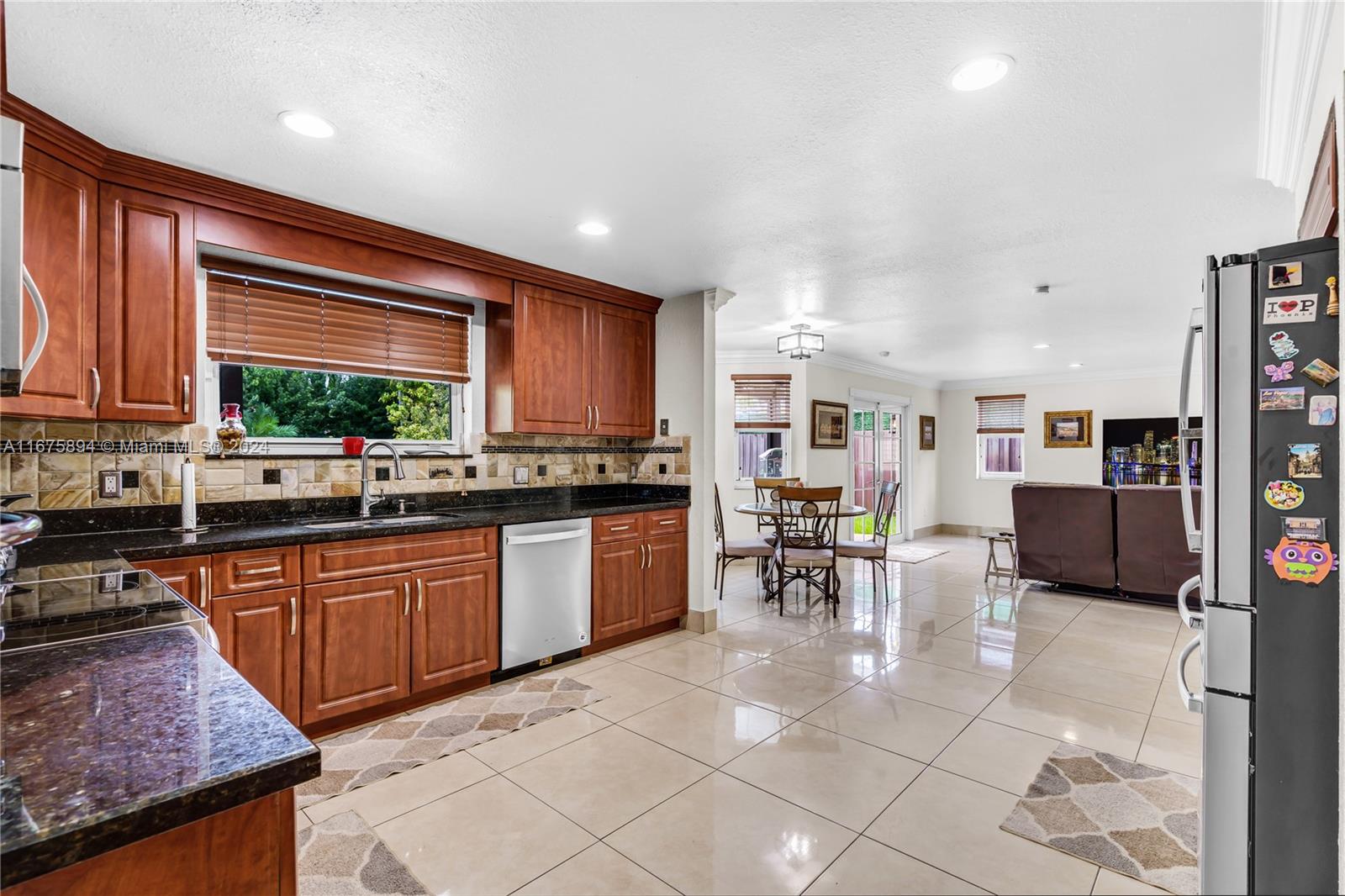 Located in a quiet cul-de-sac, this spectacular 4-bedroom, 3.5-bathroom home in Miami offers an open layout filled with natural light. The spacious and bright master bedroom features a spa-like en suite bathroom. The family room is perfect for entertaining, and the kitchen seamlessly connects to the social areas for added convenience. Additionally, the home includes offices on the first floor. Outside, you'll enjoy a large pool surrounded by a garden with fruit trees, ideal for relaxing or hosting guests. A luxury residence that combines elegance and comfort in an exclusive setting.