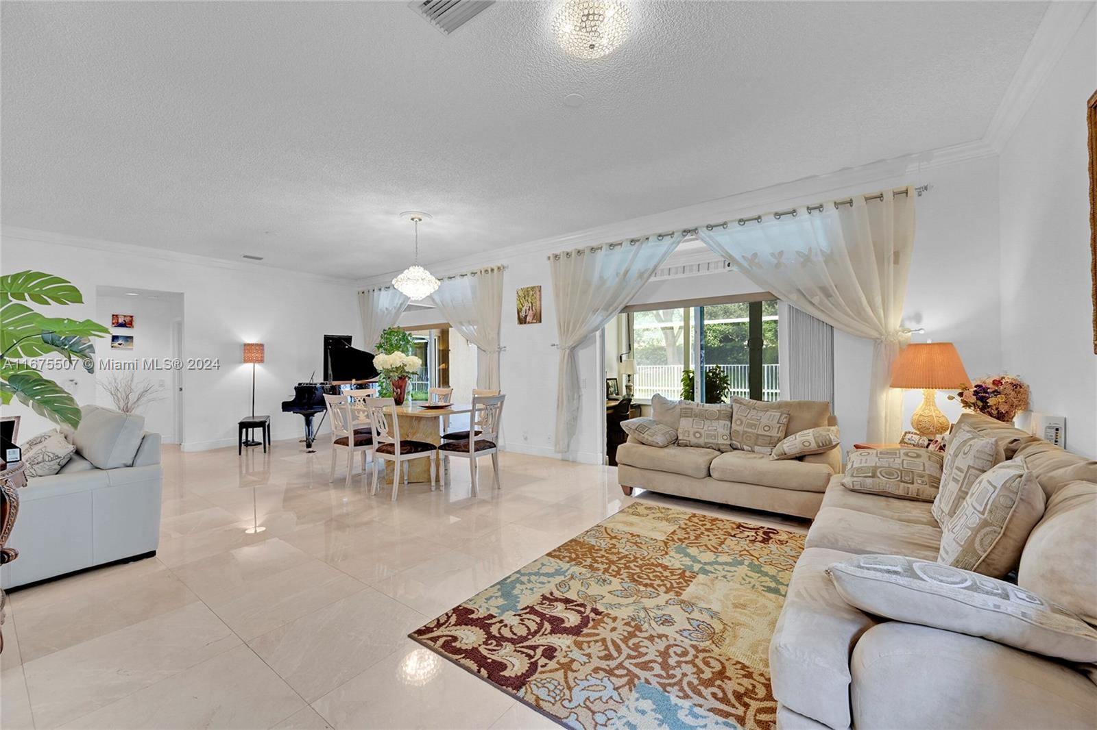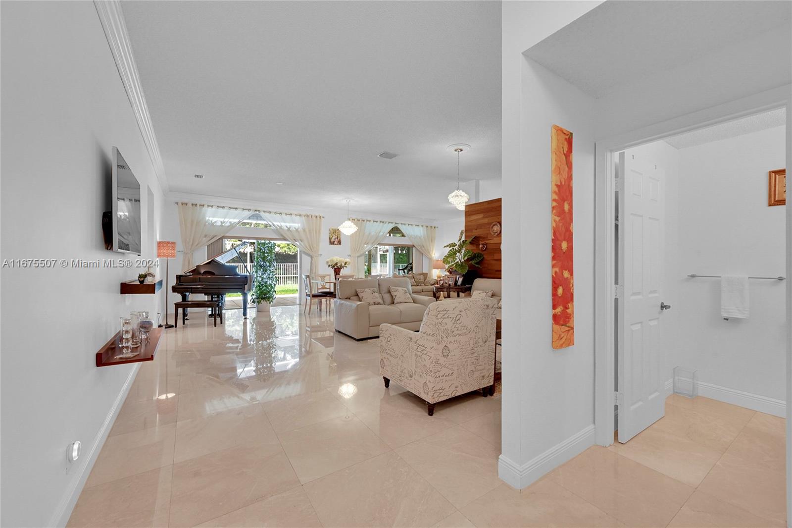 Beautifully renovated(2013) immaculate home in the prestigious gated community of The Ridges. Enjoy this spacious 3/2.5 one-story home on private berm with lush landscaping and a bonus Florida Room for office(with impact window). Rarely available modified "Arlington" with open floor plan. High impact front door. Marble floor throughout all living areas, and granite countertops. Relax in the 30x10 tiled & screened patio with room for pool. The Ridges is rated the safest area in Weston and best schools. It has a renovated clubhouse with playground, pool, pickleball, basketball, tennis court, and valley ball. Low HOA fees. A+ schools. Near Sawgrass Mills Mall, Cleveland Clinic, and more. DON'T MISS OUT!! Asking price includes a brand new tiled roof to be installed.