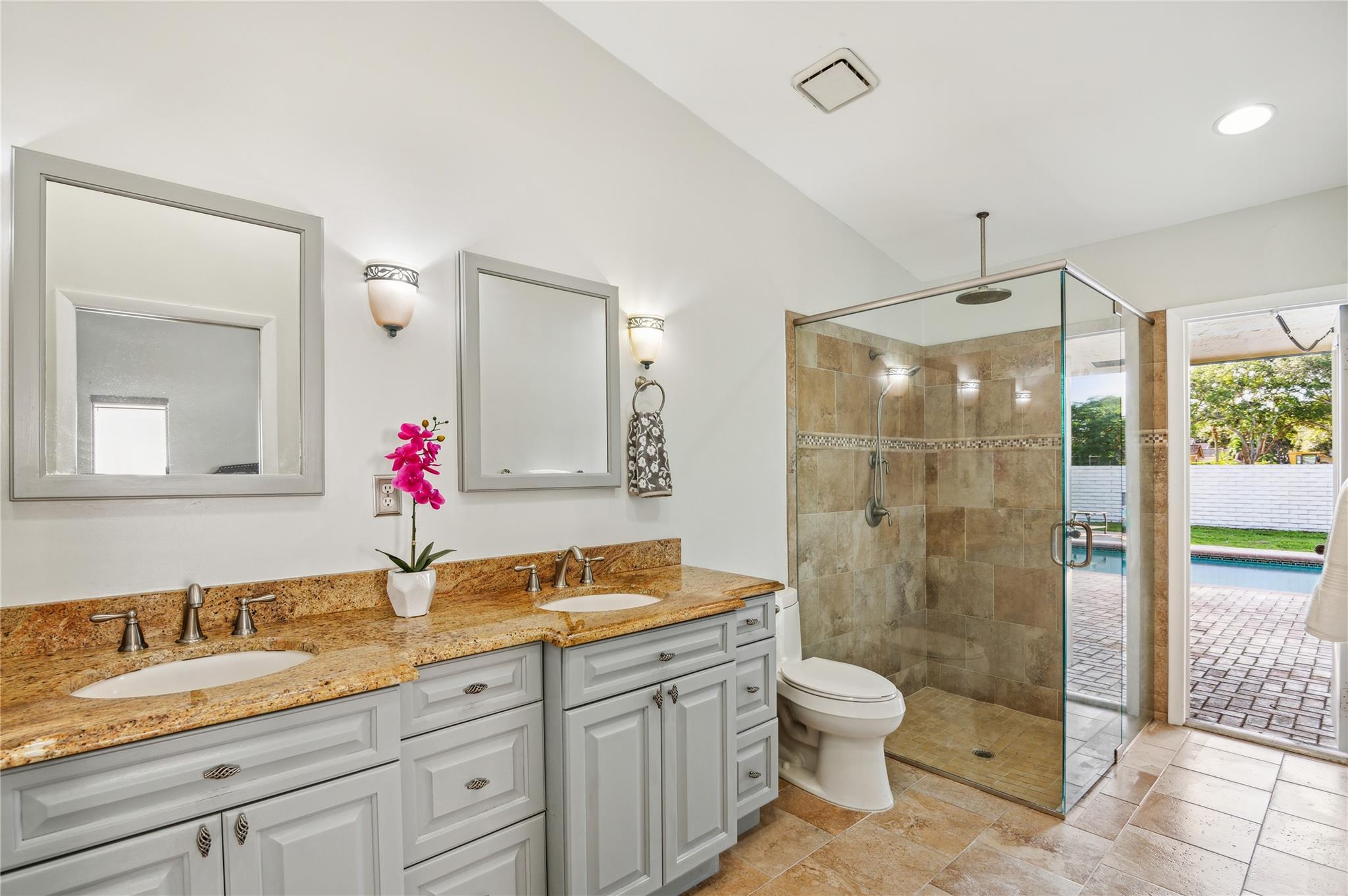 Discover this pristine 4-bedroom pool home in Pine Ridge, boasting a new roof (2020) and accordion hurricane shutters. The upgraded landscaping enhances the large, private backyard featuring a pool and covered patio—perfect for relaxation and entertaining. Enjoy an open floor plan with high ceilings and abundant natural light flooding the oversized living room that overlooks the pool area. Additional highlights include a formal dining room, family room, and beautifully updated bathrooms. The chef’s kitchen is equipped with a snack bar, granite countertops, and ample storage. The spacious primary suite offers walk-in closets, serene views, and direct access to the pool. The stunning primary bathroom features a gorgeous vanity, dual sinks, and a seamless glass-enclosed shower.