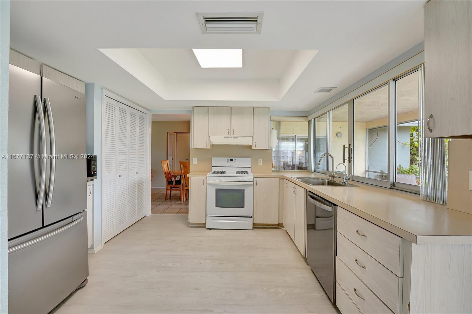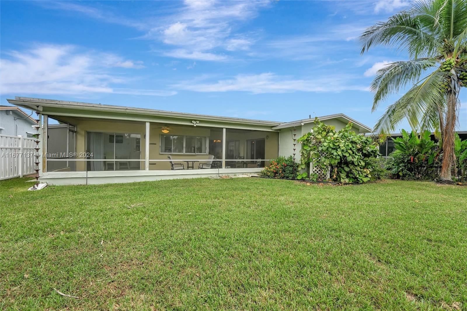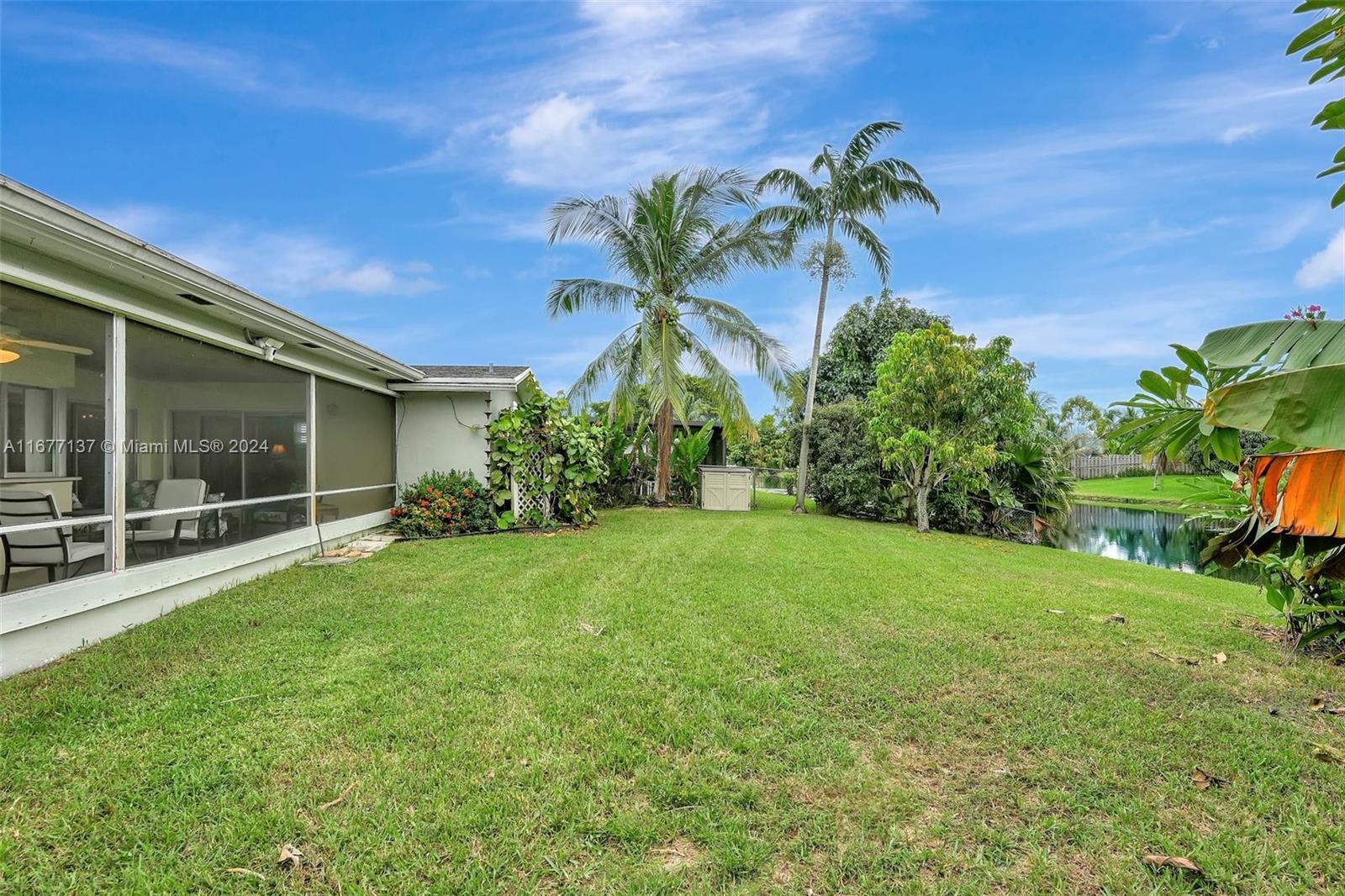 This well-maintained home features natural gas cooking, & numerous upgrades including an impact garage door, hurricane panels for all openings, and an upgraded electrical panel with a generator hook-up. updated windows, 2015 roof, 2020 AC. The light & bright eat-in kitchen is great for family gatherings with easy access for outdoor entertaining. The primary bedroom has brand new carpet & upgraded bath complete with Carrera marble finishes. Enjoy a spacious covered screened patio (which can be enclosed) overlooking a large yard with serene water views. The tropical yard, certified by Broward NatureScape, features native Florida plants, & fruit trees & PVC privacy fencing. This home blends comfort, modern upgrades, & a beautiful natural setting, in a great convenient location with no HOA.