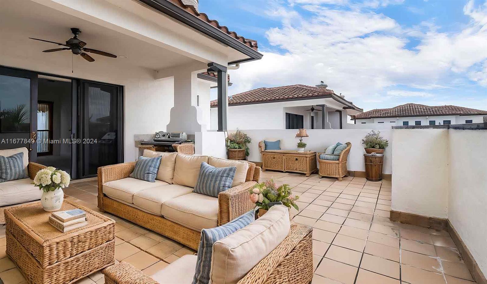 3 Bedrooms/3.5 bathrooms TH with 2,438 Sqft of living space. Considering one of the largest. Include a high end kitchen with stainless steel appliances, granite countertops and tile flooring. Laundry room. 2 car garage. All bedrooms have walking in closets with full bathroom. Top floor consider as extra room with bar, bathroom, huge terrace with outdoor kitchen. Must see! Community also has a pool. Prime location, close to school, shopping malls, grocery store, golf course.