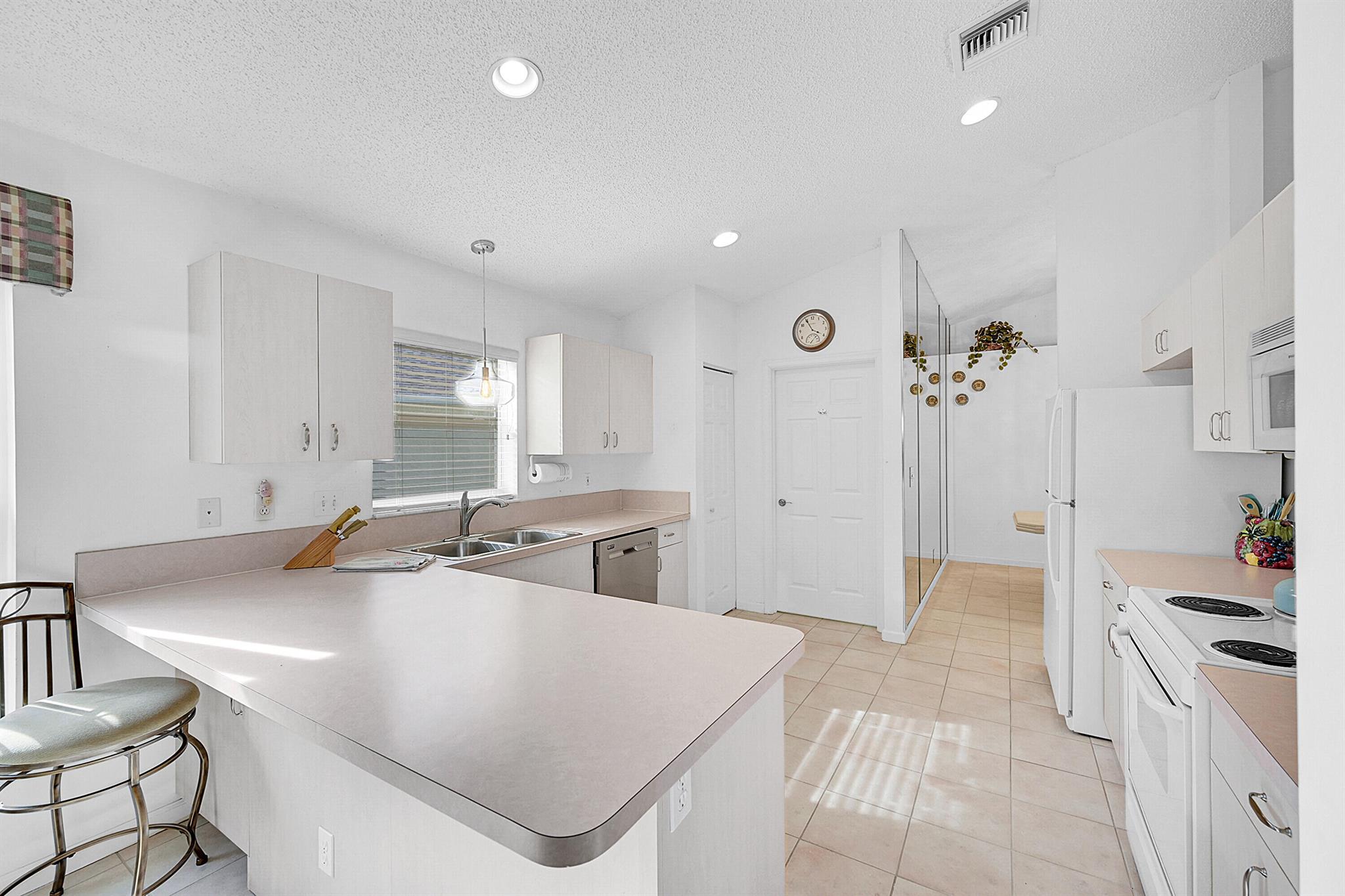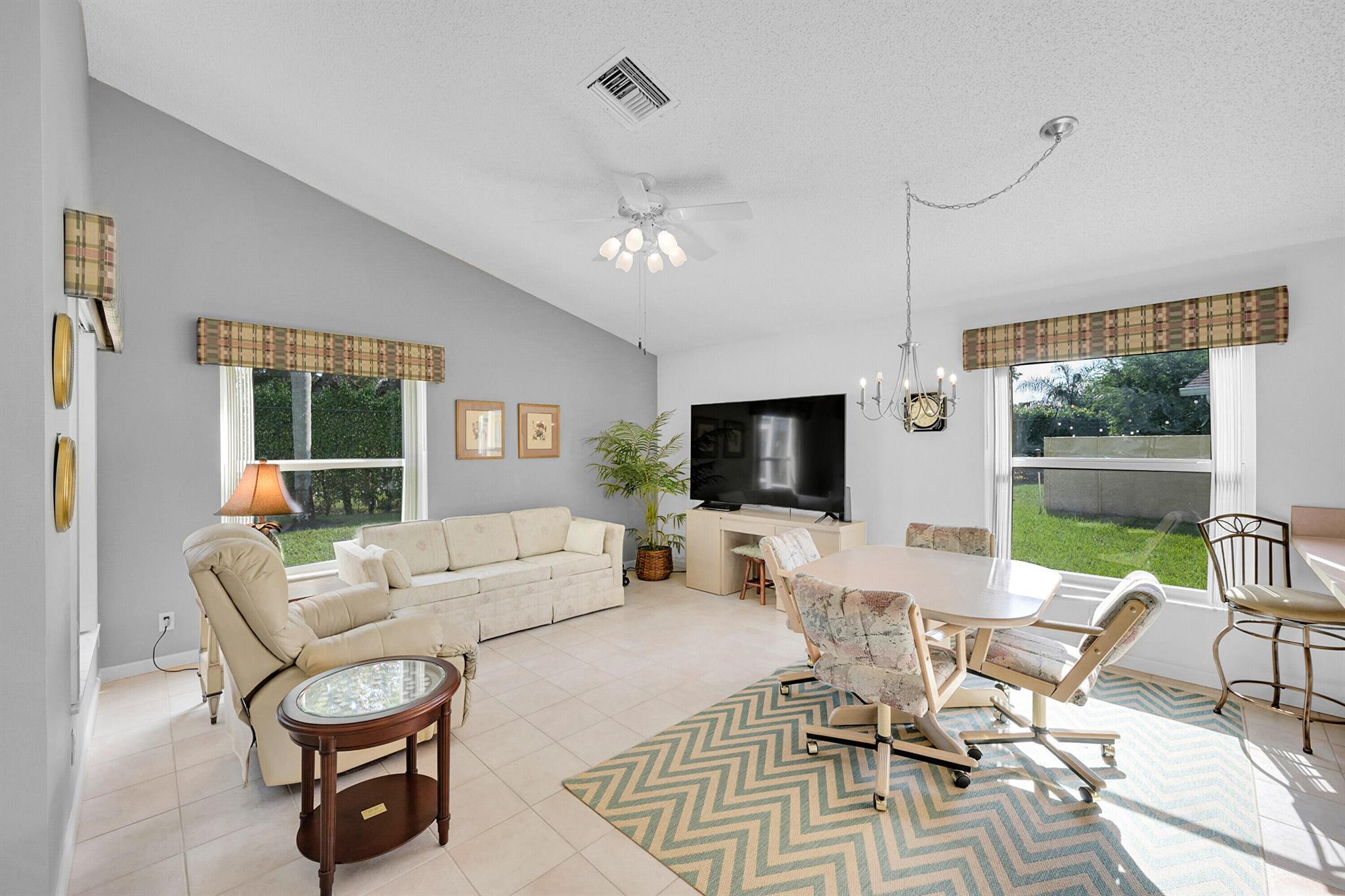 Renovated Rancher in the Resort Community of Cypress Lakes. CBS built featuring 2 bedrooms and 2 full bathrooms. This One-Story Open Floor plan features Bright spaces, Soaring ceilings, and generous living square footage. Lots of recent updates. New Roof (2019), Impact Windows (2024), New AC (2023), New Hot Water Heater (2024), Fresh Interior and exterior painting. Tile throughout living areas and new carpet in bedrooms. Smart Thermostat. Screened-in Patio with new flooring. Cypress Lakes is a Gated 55+ Resort style Active Lifestyle Community with a 18-hole Golf course, 4 Pickleball courts, Clubhouse, Billiards, Pool/Jacuzzi, Card room, Library, His & Her gyms, Sauna, Bocce ball, Tennis, Shuffleboard & Mini golf. Golf carts & walking paths. Centrally located in WPB, close I-95,