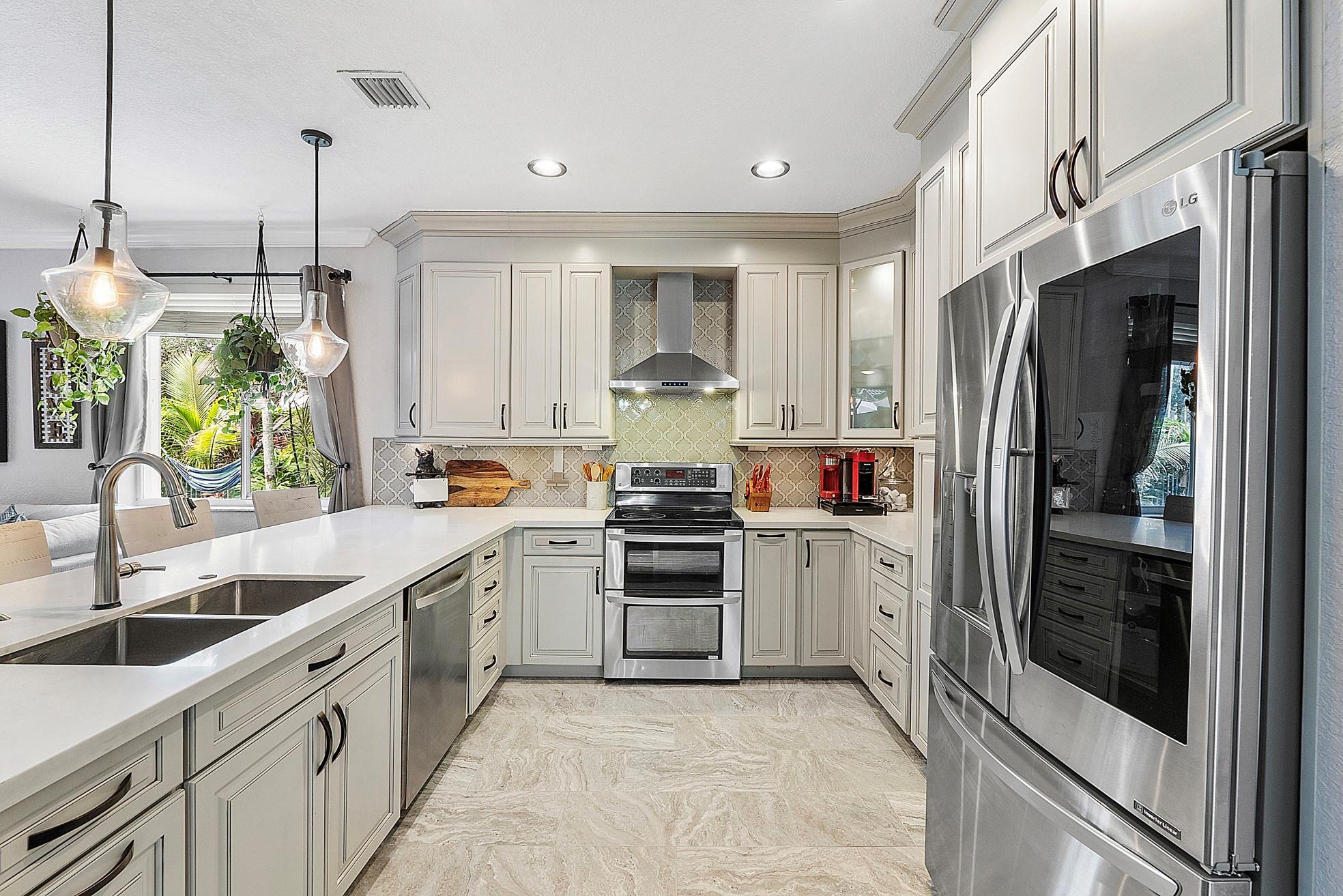 THIS HOME HAS IT ALL!!! Beautifully remodeled w/designer finishes throughout. Enjoy Florida resort living in this private tropical oasis corner lot w/solar heated/cooling system saltwater pool & spa, gorgeous summer kitchen w/marble top BBQ, island & fully fenced. Brand new 2023 roof w/solar panels saves $ on bills & Brand New 2024 A/C! Gorgeous Chef kitchen w/vented hood, exquisite backsplash, quartz countertops, LG SS appliances, wrought iron staircase, crown molding, custom stone wall w/electric fireplace & more. Two Master suites! One downstairs w/ensuite bath, walk-in closet & stunning powder bath for guests. Upstairs 2nd Master bed w/ensuite bath plus 3 more lovely beds & bath. Guard gated Savanna is a great value low HOA w/community pool & A+ rated Weston schools. Must see!!!