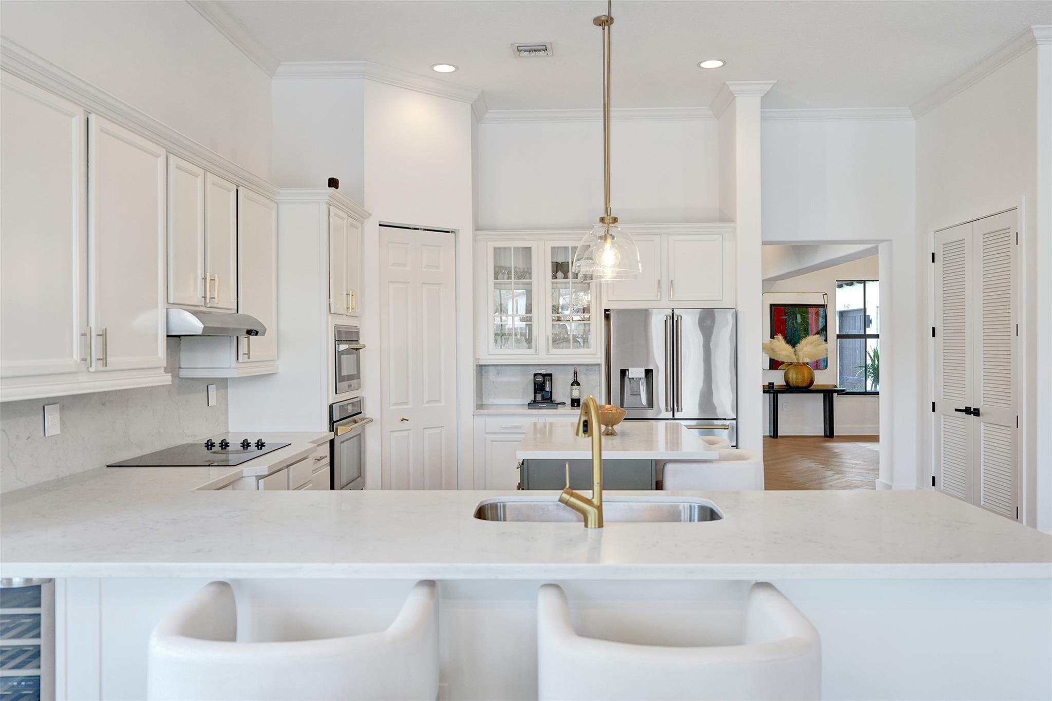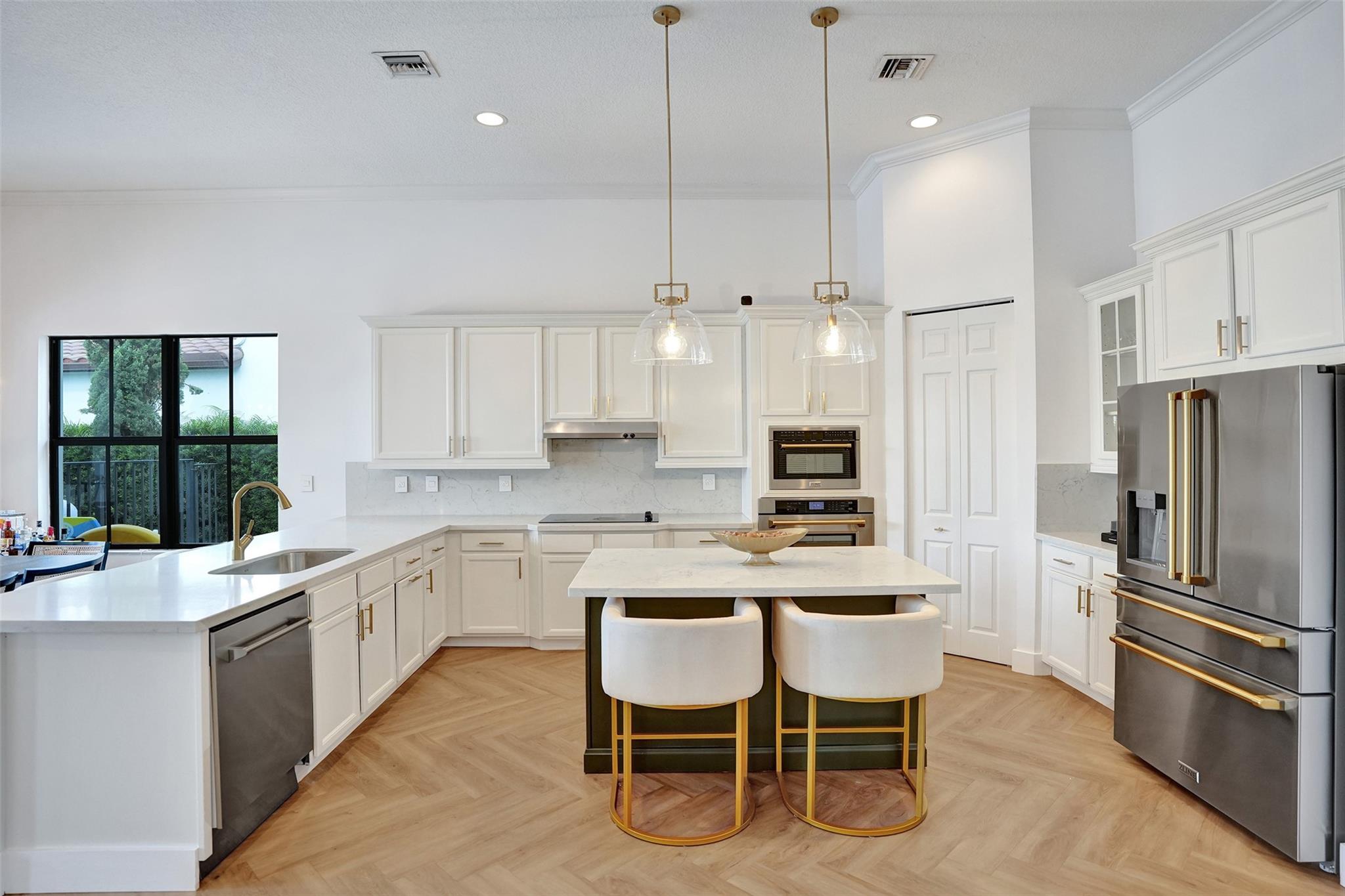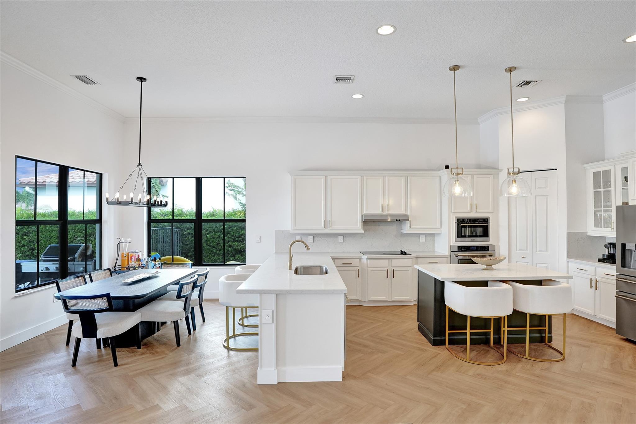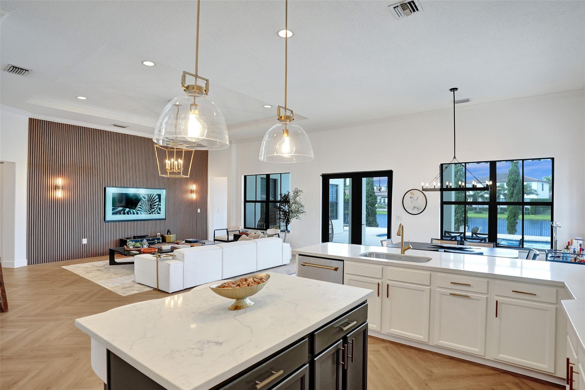Paradise found! This stunning open floor plan features 4 Beds 3 Baths and is beautifully renovated as if strait out of a Restoration Hardware magazine. Located on the center of a lake with a private salt water pool. This home has newly installed herringbone floors throughout, updated kitchen with brand new appliances and custom built in office. The landscaping is beautifully designed to give the feeling of the coast of Italy. All light fixtures are from RH and will stay with the home for the new owner to enjoy. Just bring your tooth brush. Community of Monterra has a 24hr maned gate security and a top of the line clubhouse equipped with 2 gyms, large pool, splash pad, tennis courts & basketball court. Zoned for Embassy Creek and all A+ schools and walking distance to places of worship.