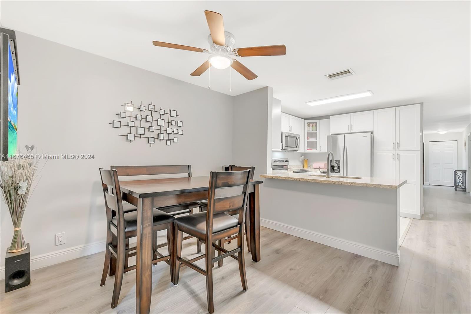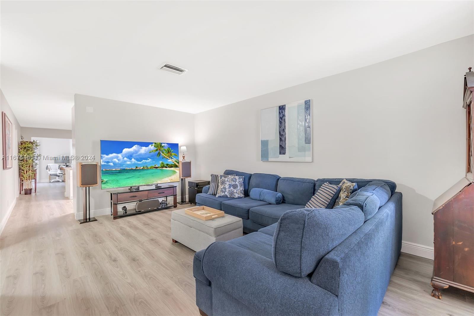 This renovated half-duplex in Coral Springs features 3 bedrooms, 2 bathrooms, and a spacious driveway for up to 4 cars, plus a lovely garden patio. Situated in a quiet cul-de-sac, the home boasts a modern kitchen with granite countertops, white cabinets with glass fronts, and stainless steel appliances. Both bathrooms are updated with granite and ceramic tile finishes; the master bath includes a walk-in shower, while the guest bath offers a tub/shower combo. A bonus room at the back provides extra space for an office, playroom, or gym. There's also a convenient laundry room. The expansive, pie-shaped backyard offers plenty of room for a pool. Ideally located near shops, restaurants, and all that Coral Springs has to offer—plus, no HOA!