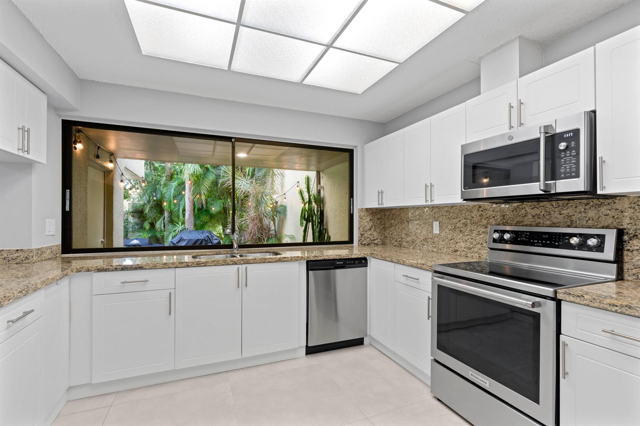 BEAUTIFUL RENOVATED TOWNHOUSE | SOUGHT-AFTER LANDS END | NEWER ROOF | Cul-De-Sac | Spacious Floor Plan | Vaulted Ceilings with Wood Accent | LED Recessed & Accent Lighting | NEW Porcelain Tile Flooring | Natural Gas | Wood Burning Fireplace | Stunning Kitchen | Granite Counters | White Wood Cabinets | Newer S/S Appliances | Barstool Seating | Walk-In Pantry | Bedroom Balconies | Primary Bedroom | Custom Walk-In Closet | Updated En-suite Bath | Dual Sink Vanity | Soaking Tub | Frameless Shower | Guest Bath | Shower/Tub Combo | Extended Patio | Privacy Wall | Lush Tropical Landscaping | 2 Car Garage | Community Pool/Spa | Sauna | Min to FAU | Beach | Downtown Mizner Park | Fine Dining & Shopping | A+ Rated Schools | Pet Friendly Community | ROOF 2020 | AC 2018 | WH 2019 | PRESENT ALL OFFERS