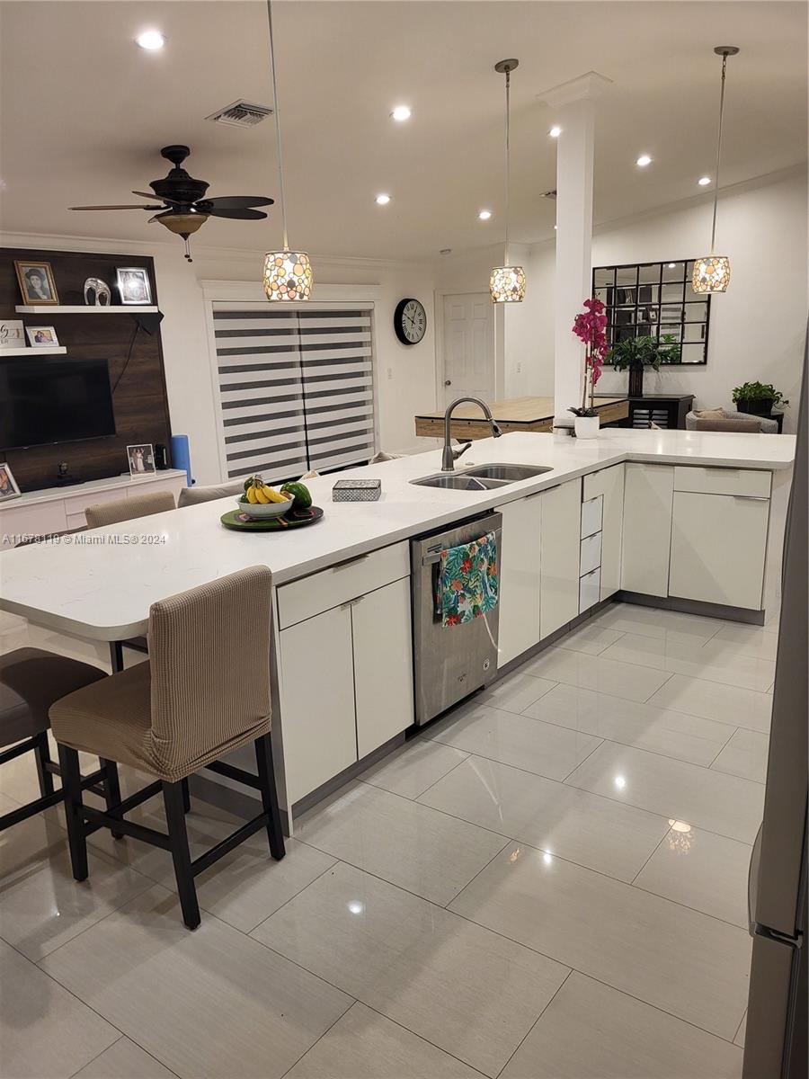 This beautiful home consists of 3 bedrooms, 2 baths and a 2 car garage. Located in Parkwood Isle in Davie. It offers a modern living with a cozy feel. Large kitchen with stainless steel appliances, quartz countertop, perfect for entertainment. Both bathrooms have been updated. Tile throughout. It also comes with full impact windows and doors. Good size backyard with room for a pool. Relax on the front porch or enjoy the privacy of the back screened porch. Perfectly located, close to 595, A rated schools and shops.