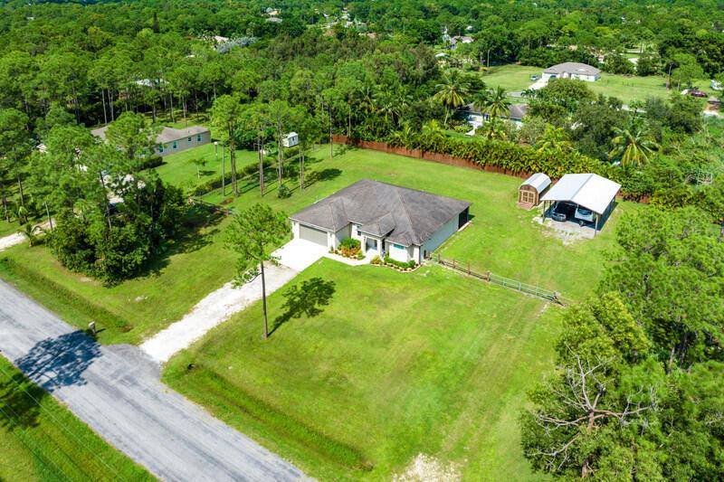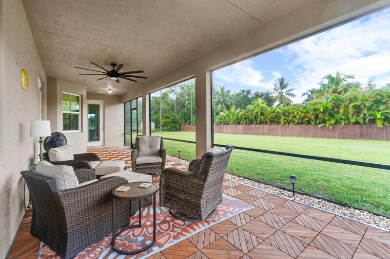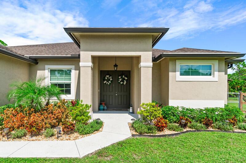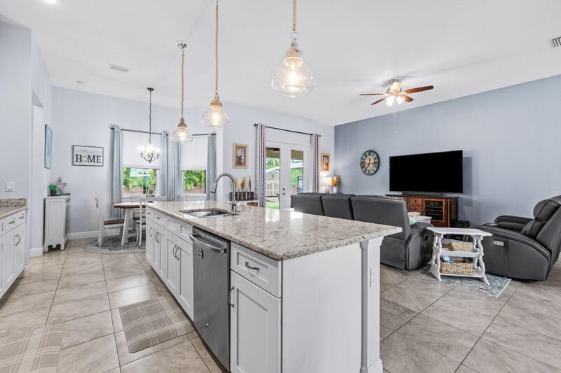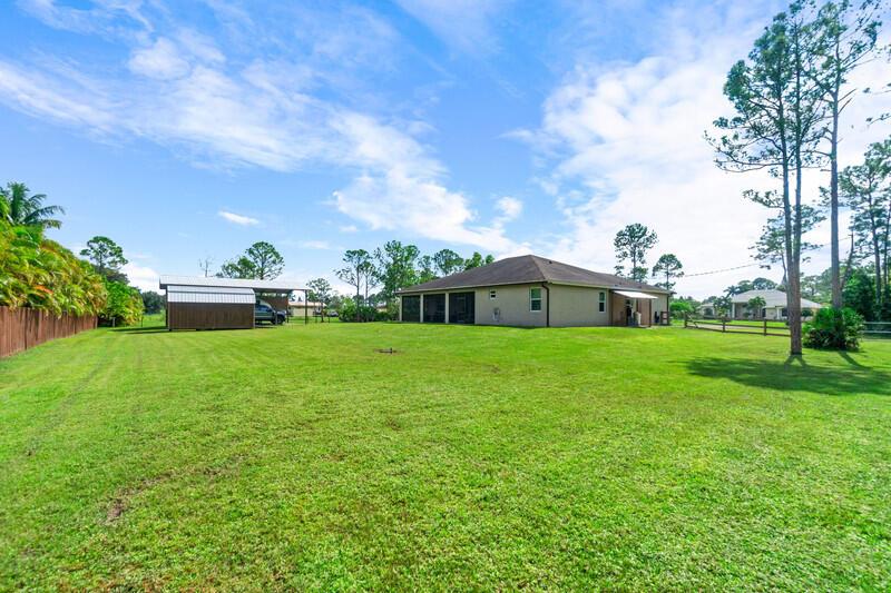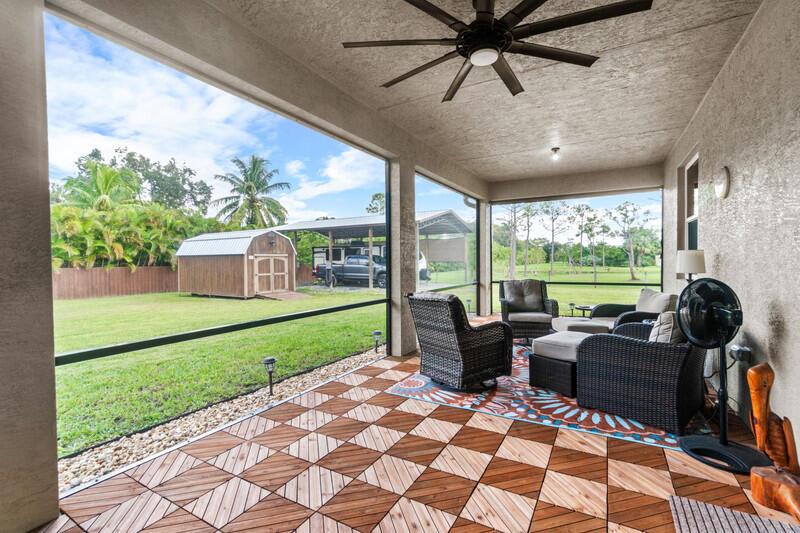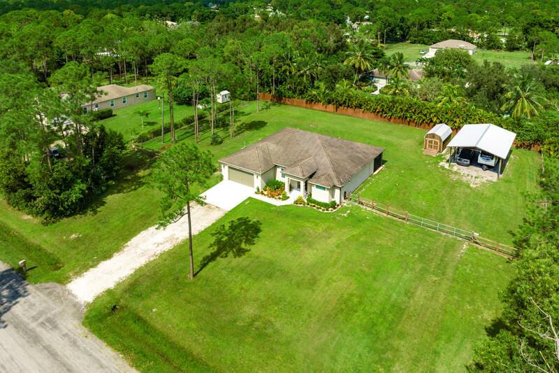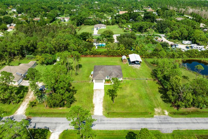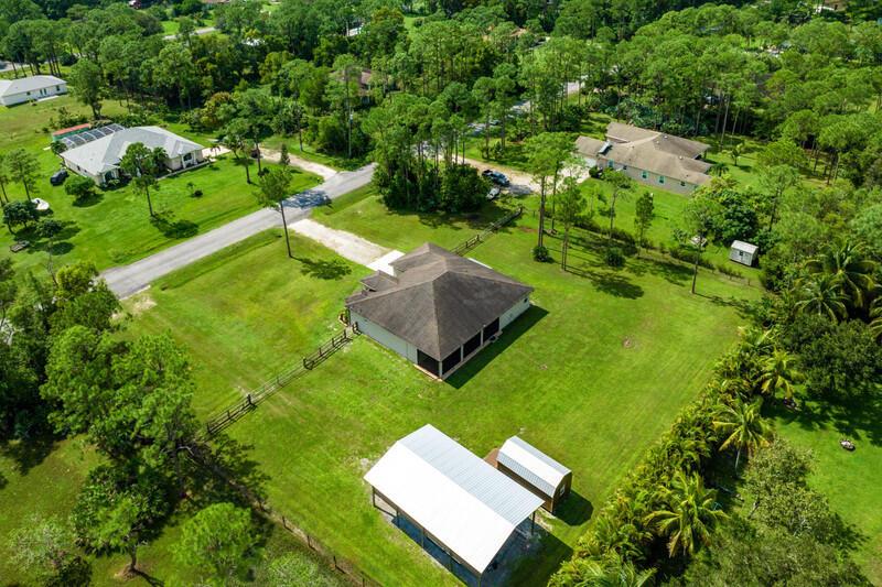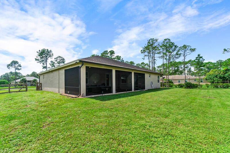 Beautiful move in ready home on 1.15 private acres on a paved road. Energy efficient and very well maintained. Built in 2017, has 3 bedrooms, 2 Baths, 2204 Sq Ft. under air, total 3161 sq ft. Open floor plan with large kitchen island, stainless steel appliances, All wood cabinets, granite counter tops in the kitchen and baths, 18'' tile in the great room, kitchen and bath areas. All 8' doors, his & her walk in closets, master bath walk in shower, large soaker tub, dual sinks, Large screened lanai, impact glass windows and doors, 2 car garage and an additional 10 x 20 shed with loft, 24 x 40 ft pole barn for all your toys!