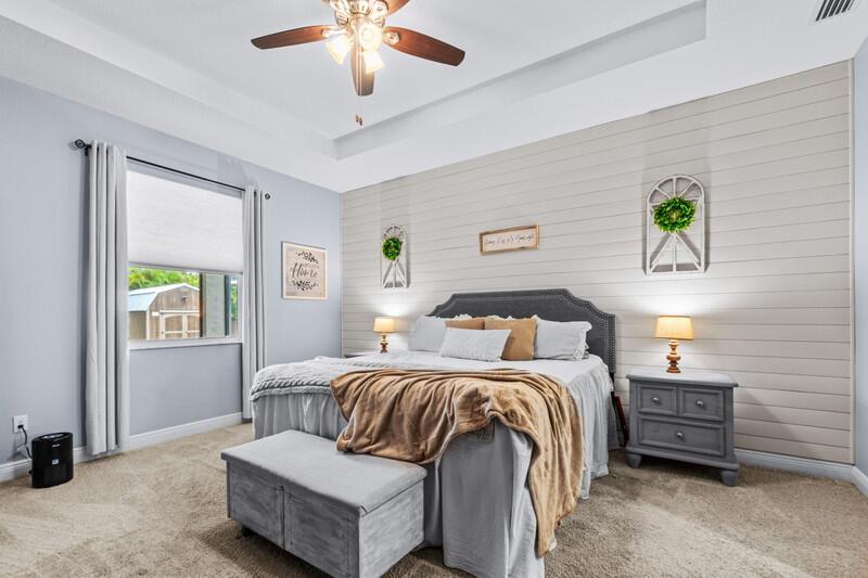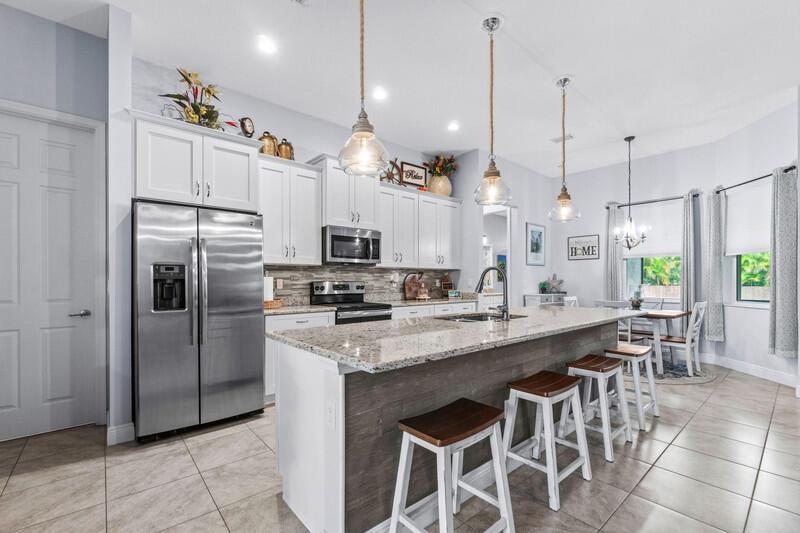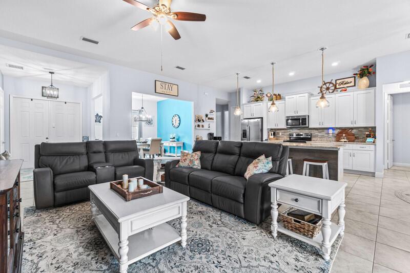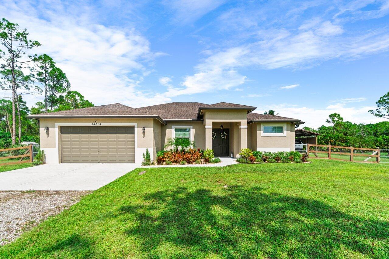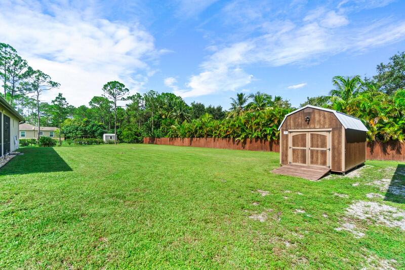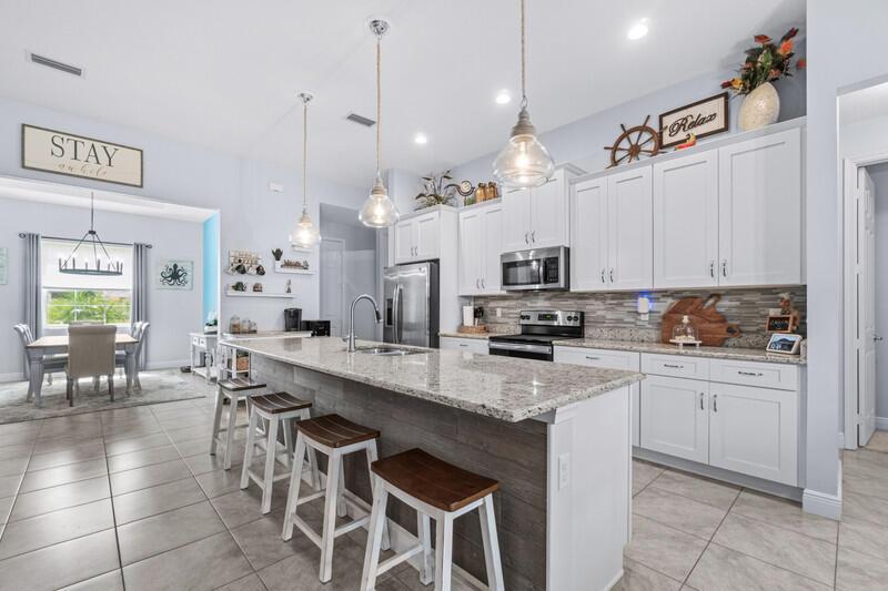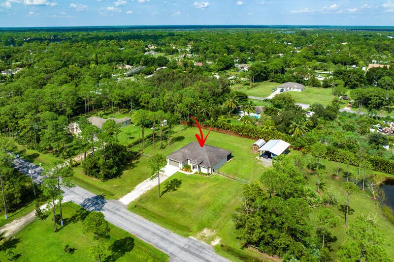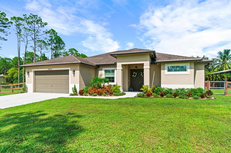 Beautiful move in ready home on 1.15 private acres on a paved road. Energy efficient and very well maintained. Built in 2017, has 3 bedrooms, 2 Baths, 2204 Sq Ft. under air, total 3161 sq ft. Open floor plan with large kitchen island, stainless steel appliances, All wood cabinets, granite counter tops in the kitchen and baths, 18'' tile in the great room, kitchen and bath areas. All 8' doors, his & her walk in closets, master bath walk in shower, large soaker tub, dual sinks, Large screened lanai, impact glass windows and doors, 2 car garage and an additional 10 x 20 shed with loft, 24 x 40 ft pole barn for all your toys!